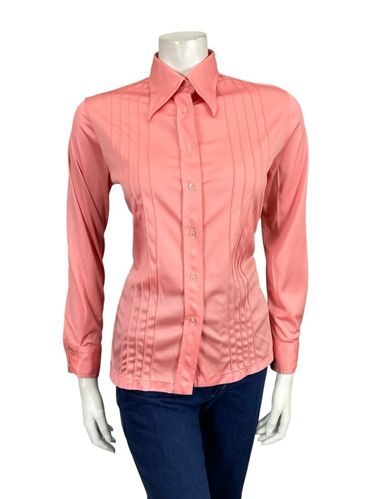 VTG 60S 70S TAIWANESE MOD DAGGER COLLAR PINK MONOCHROME SHIRT 8 10 S