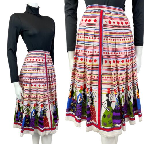VTG 70S RED WHITE BLUE NORDIC SCANDINAVIAN PATTERN MAXI SKIRT SIZE 8