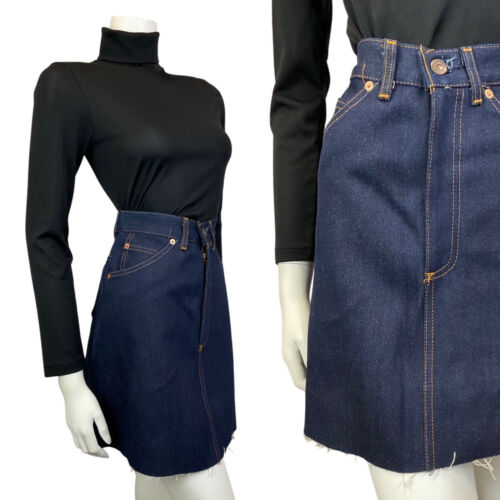 VTG NAVY BLUE DENIM SUPER MINI SKIRT WITH POCKETS SIZE 6 8