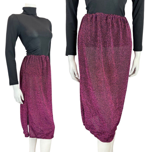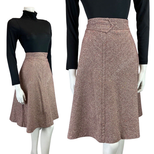 VTG 60S MOD DOGTOOTH IRIDESCENT SPARKLY PURPLE GOLD BLUE PARTY MIDI SKIRT 12 14
