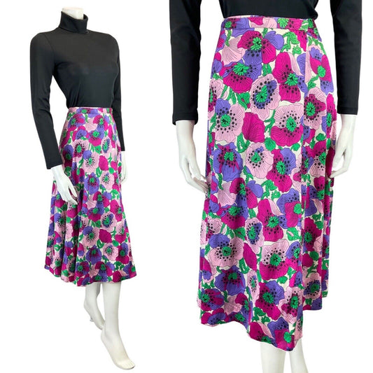 VTG 60S 70S BLUE PINK PURPLE PSYCHDELIC FLORAL MINI SKIRT SIZE 6
