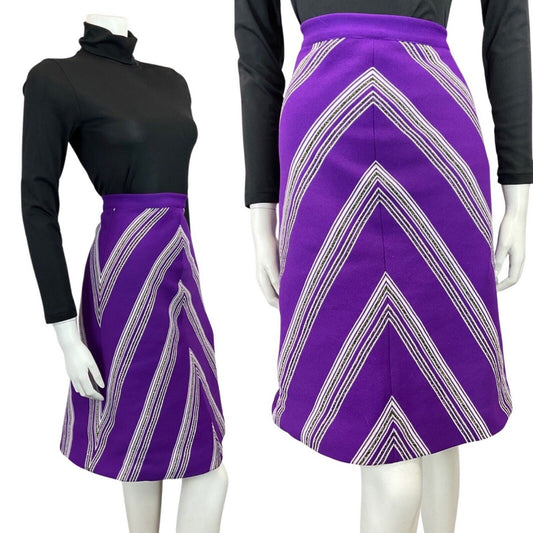 VTG 70S STRIPED PURPLE ORANGE GOLD BLACK GEOMETRIC PARTY MAXI SKIRT SIZE 2/4