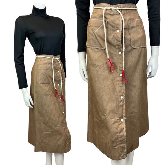 VTG 60S 70S ART DECO GEOMETRIC BROWN GOLD ZIG ZAG MAXI SKIRT 8