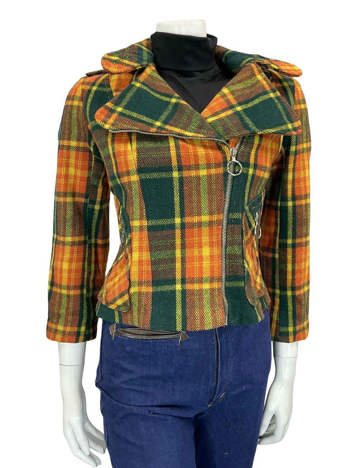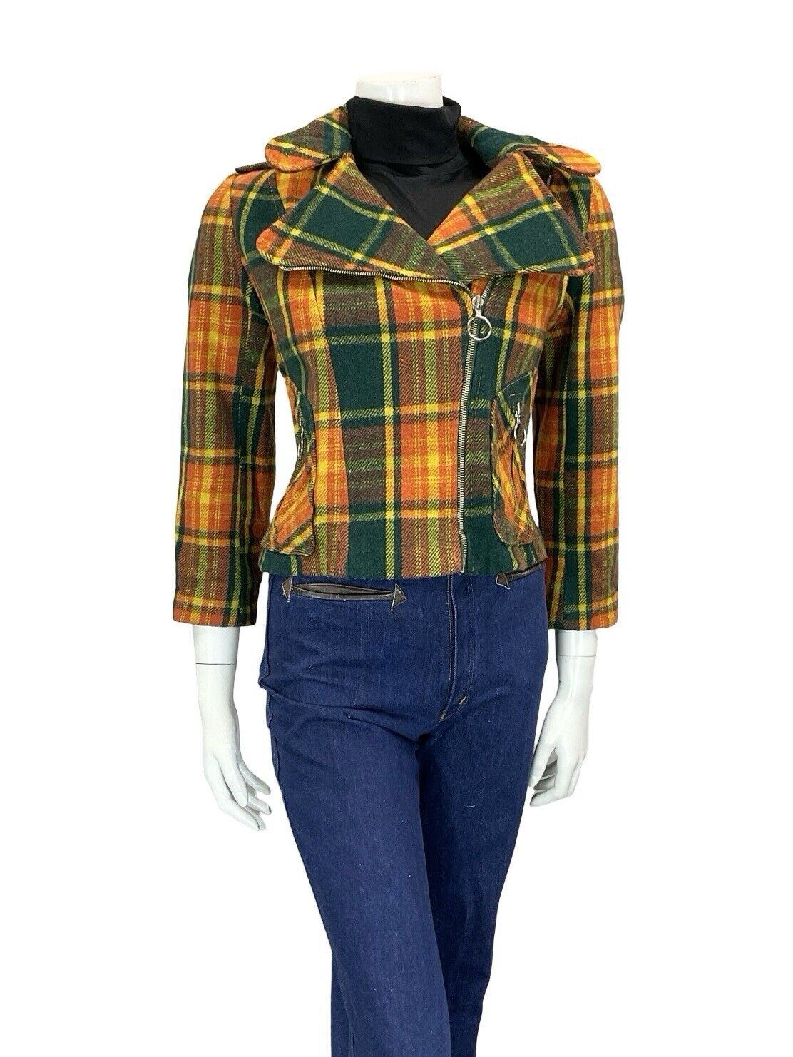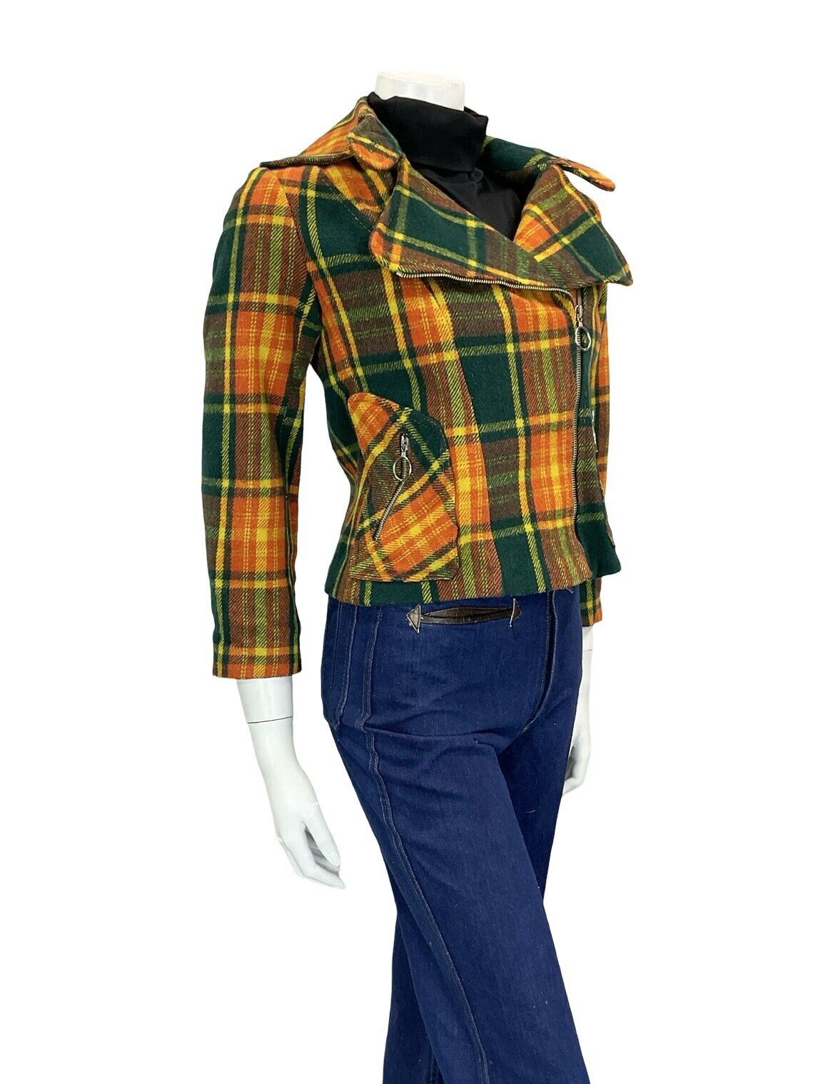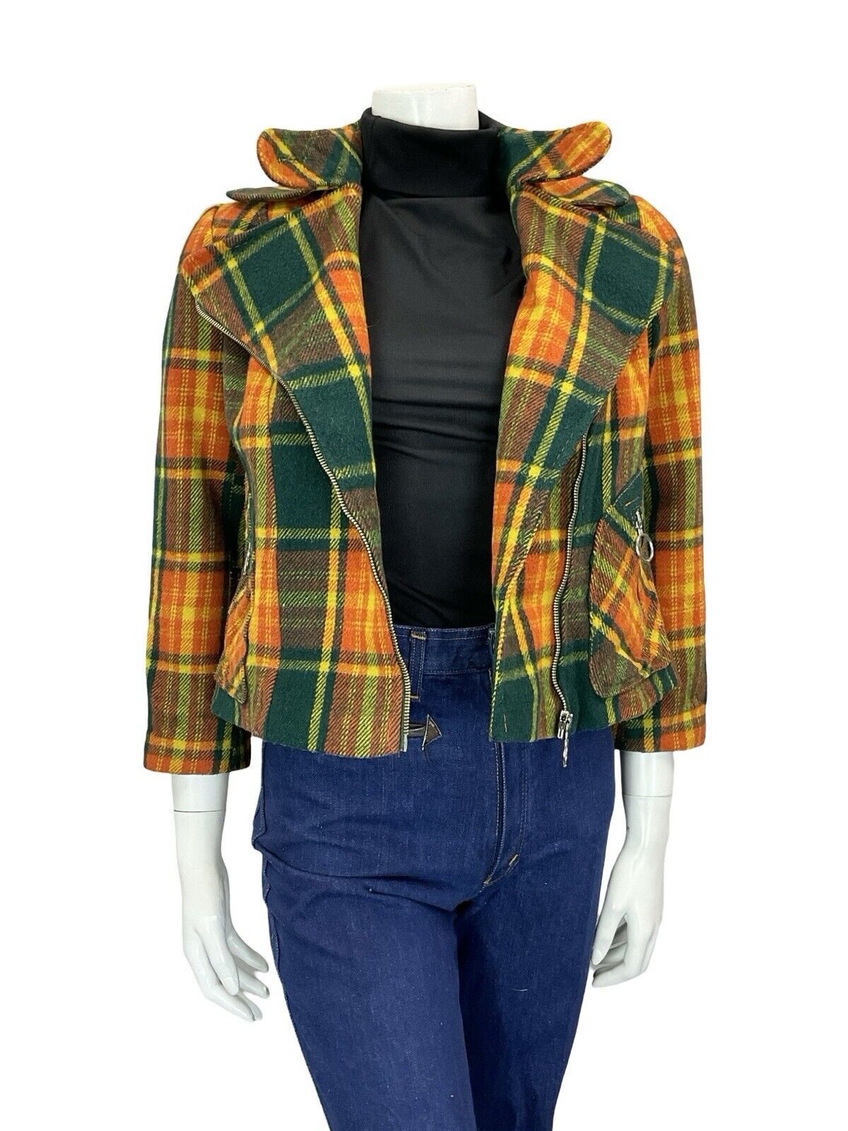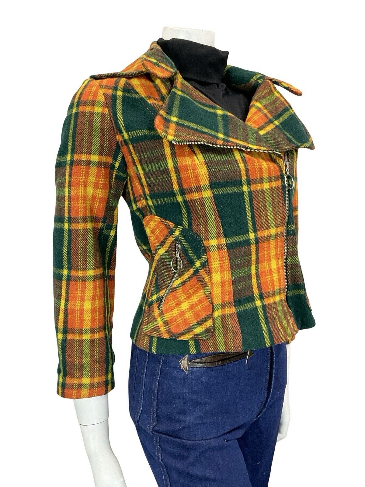 60S 70S GREEN YELLOW ORANGE TARTAN BIKER PUNK MOD O RING ZIP UP WOOL JACKET 8