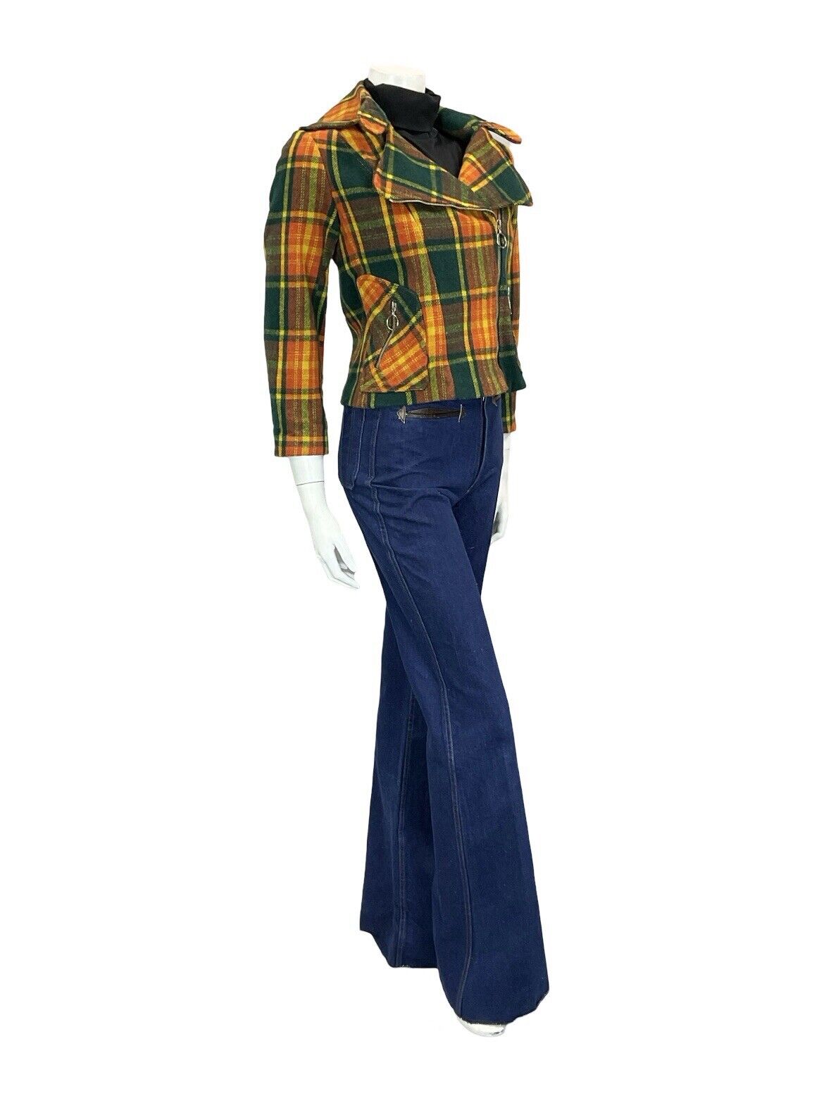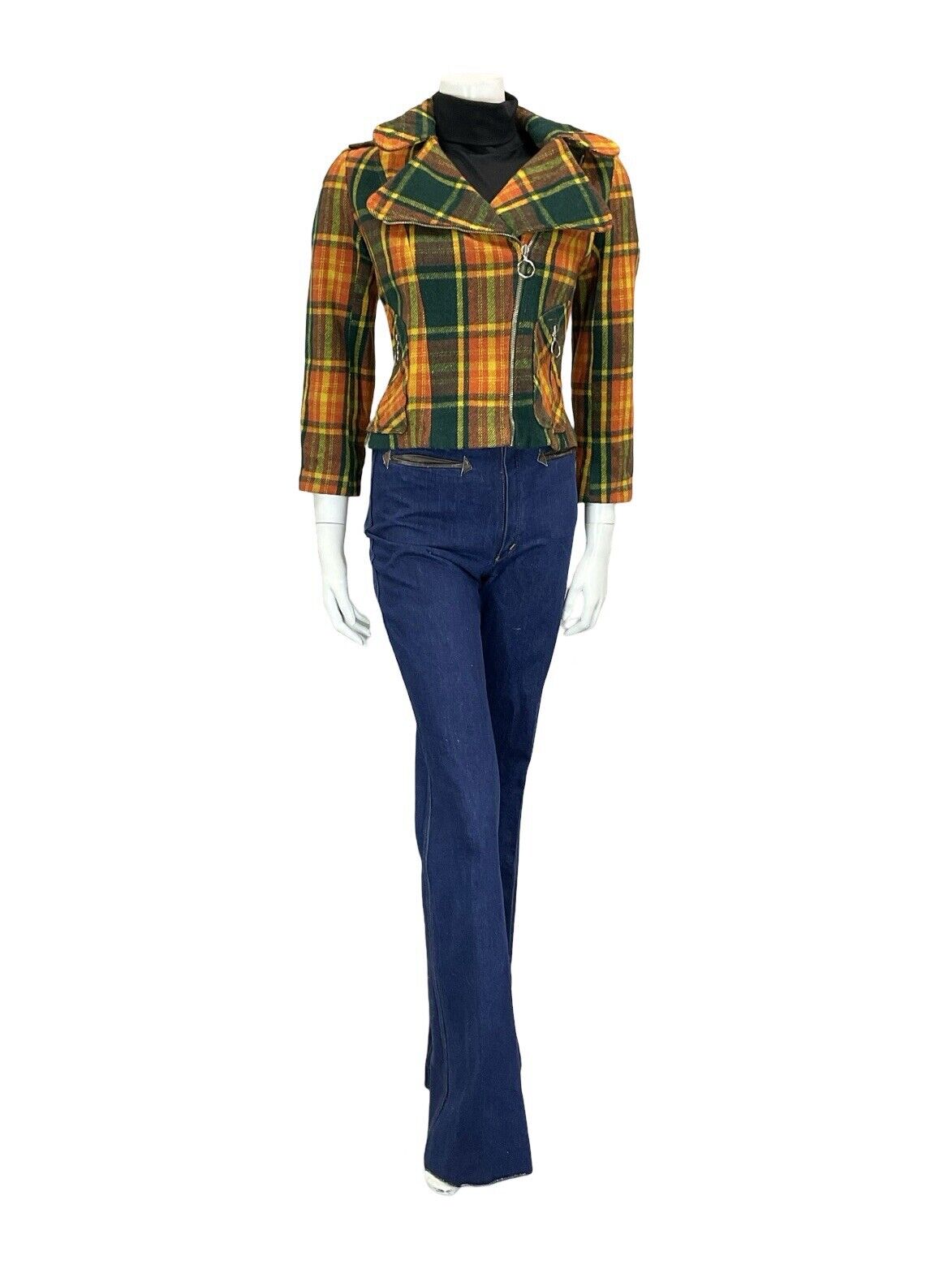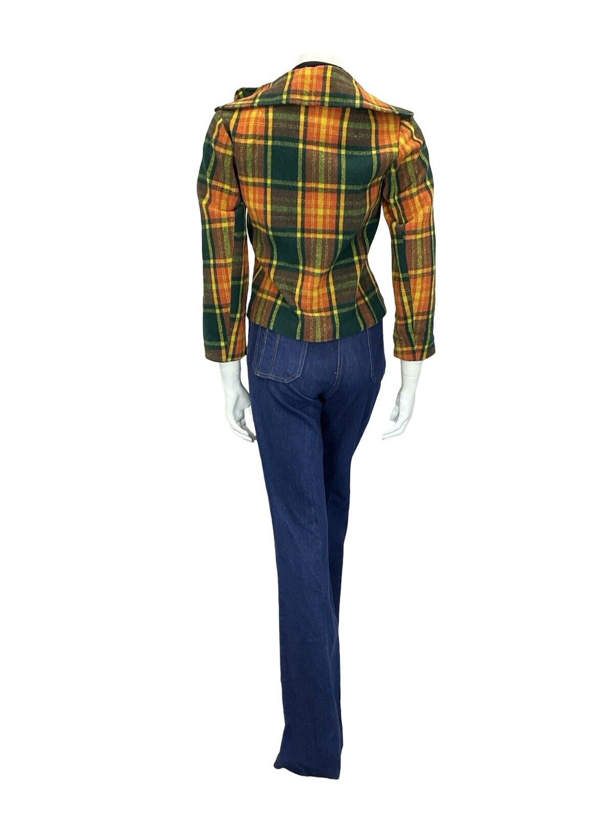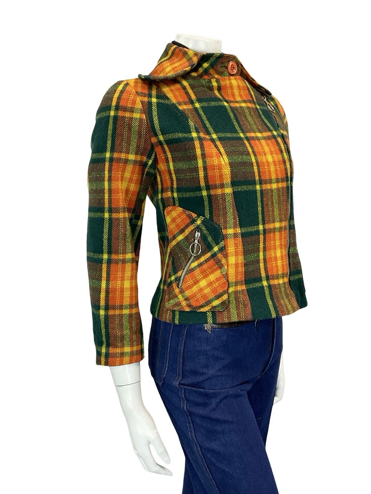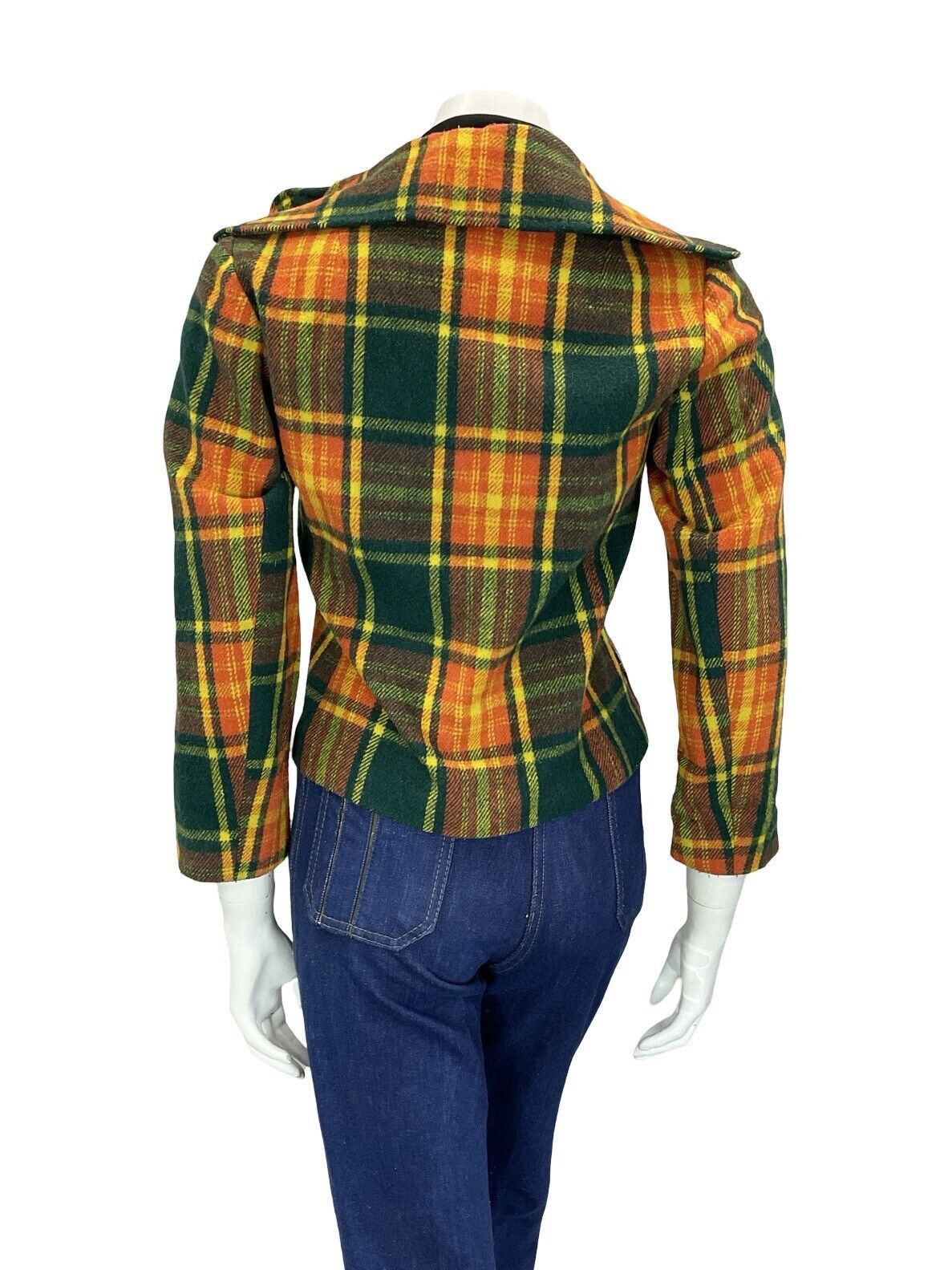 60S 70S GREEN YELLOW ORANGE TARTAN BIKER PUNK MOD O RING ZIP UP WOOL JACKET 8