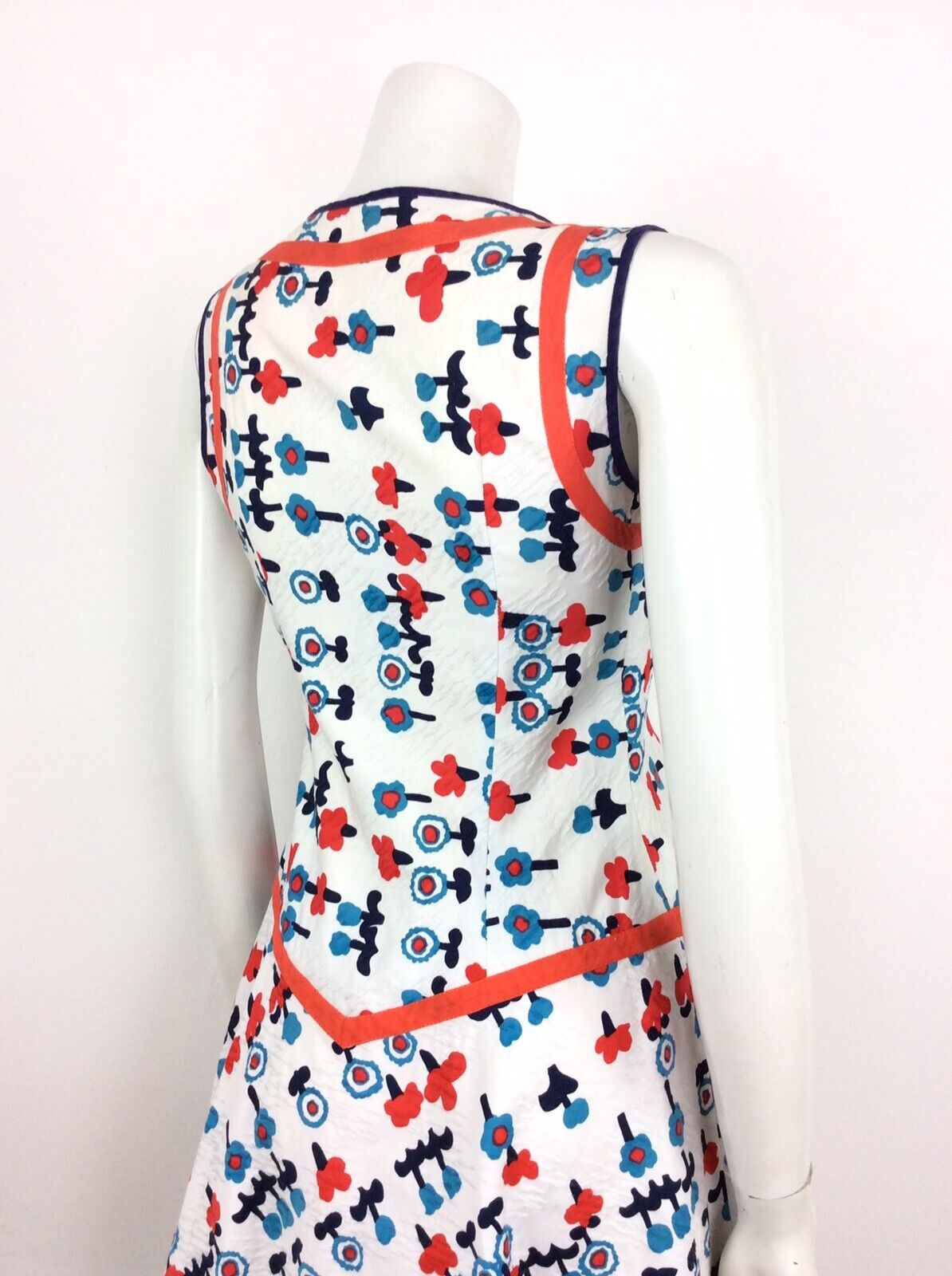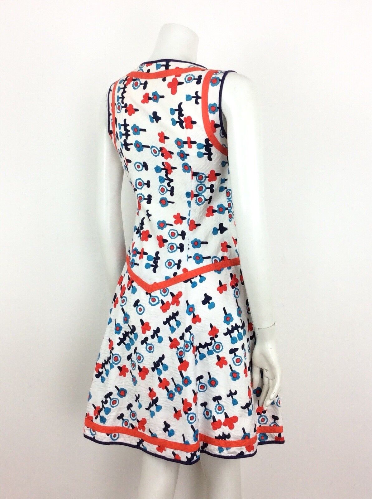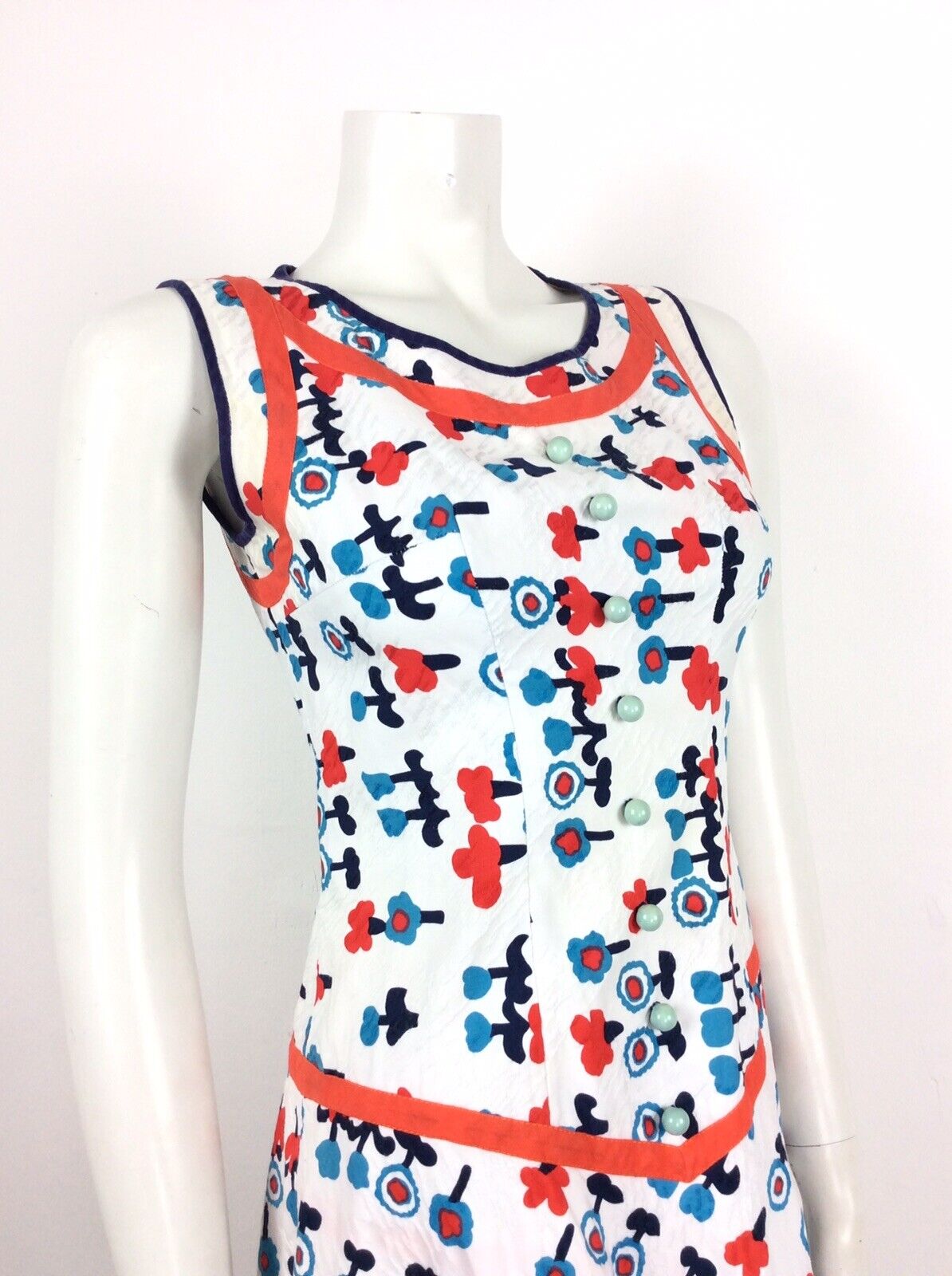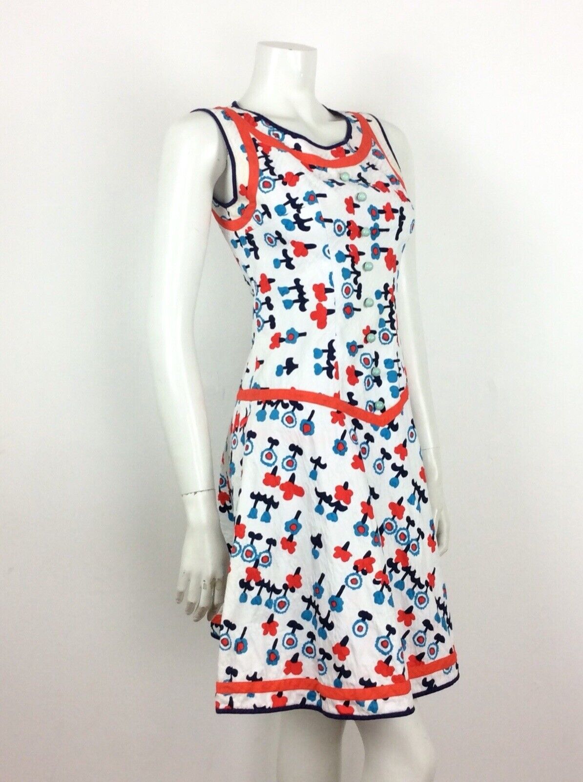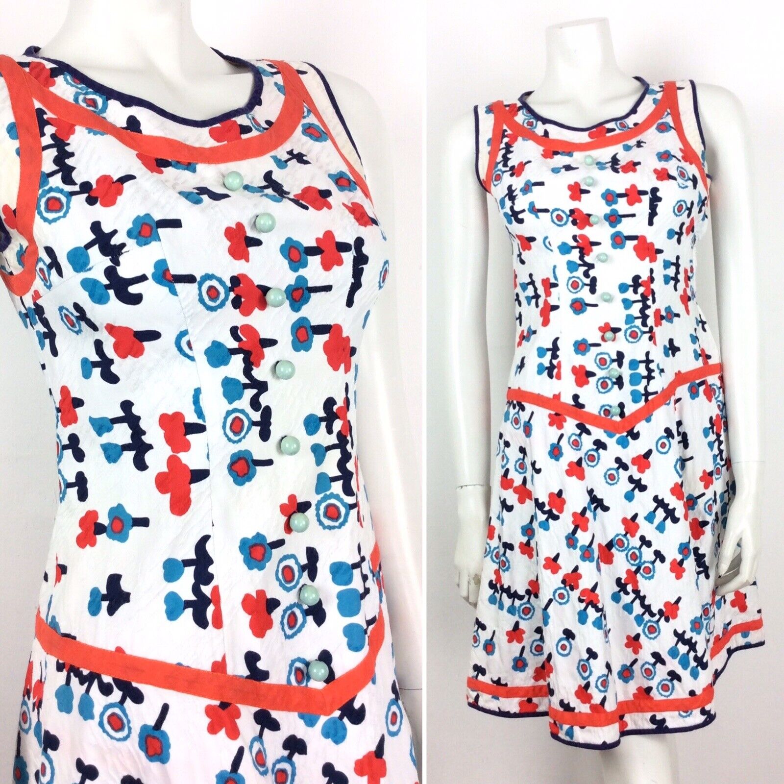 AMAZING VINTAGE 60s 70s FLORAL SUMMER DRESS POPPY RED BLUE WHITE 4 6