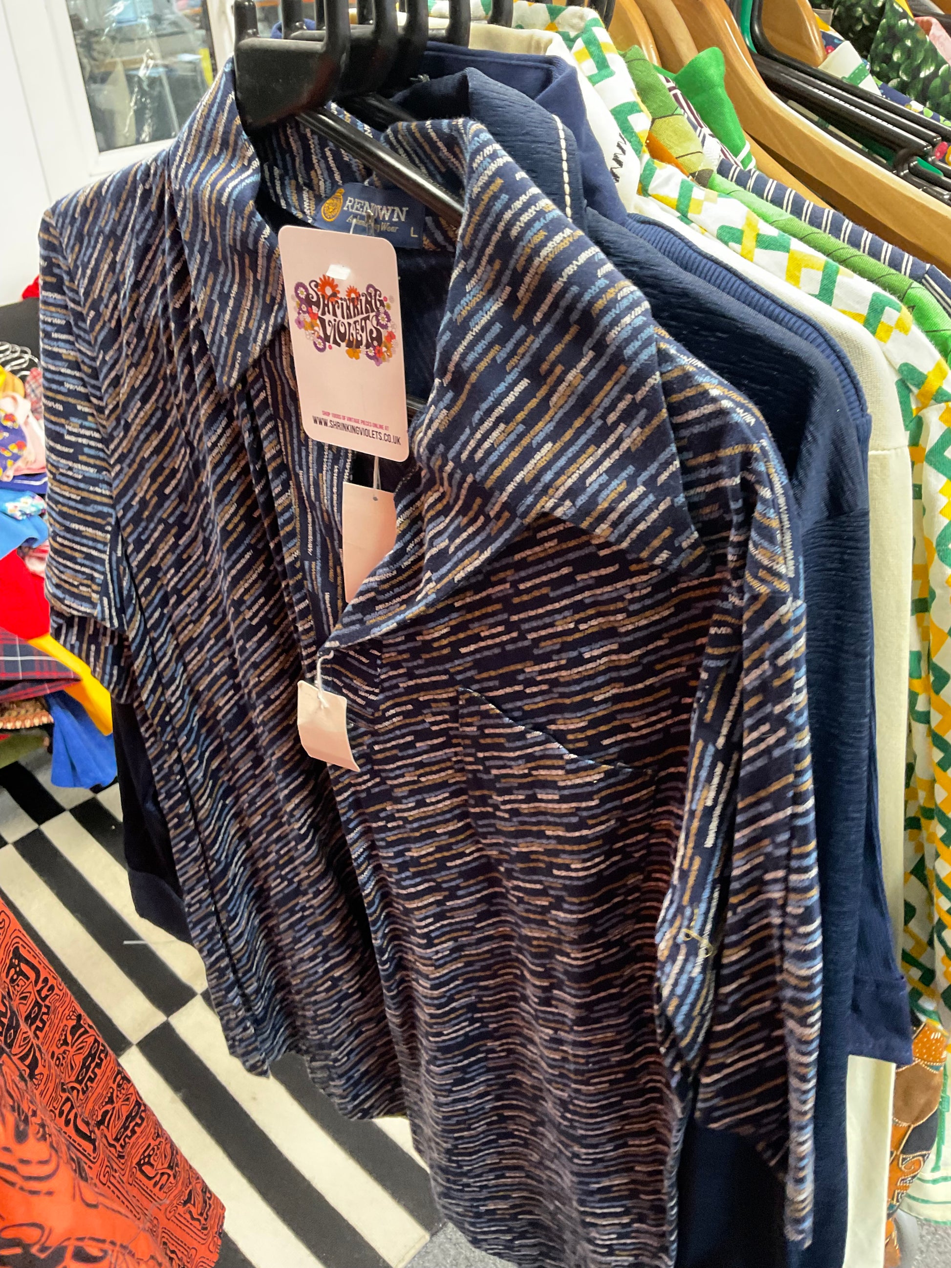 MENS VTG NAVY ABSTRACT PRINT COLLARED POLO SHIRT
