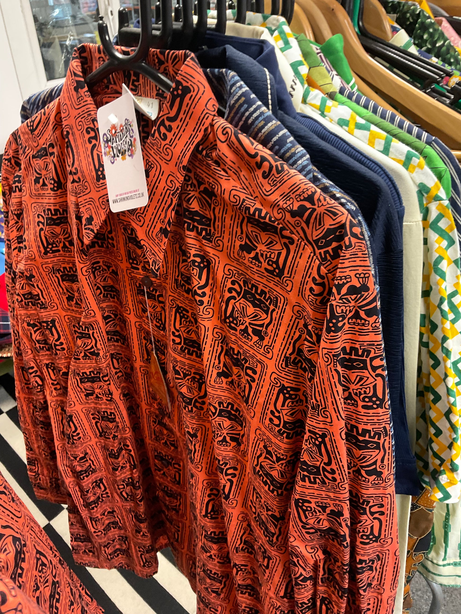 MENS VTG TRIBAL BLACK CORAL LONG SLEEVED SHIRT