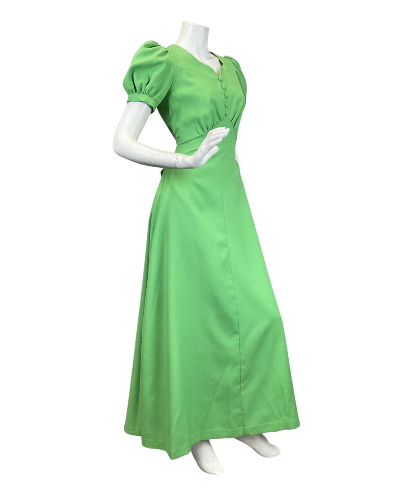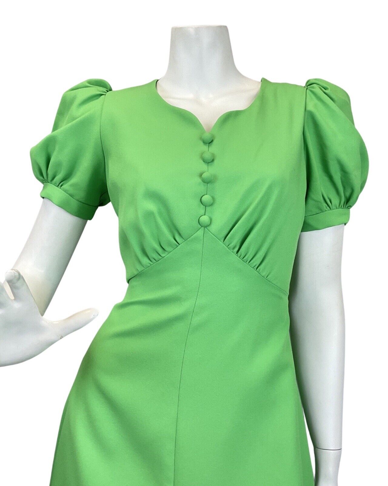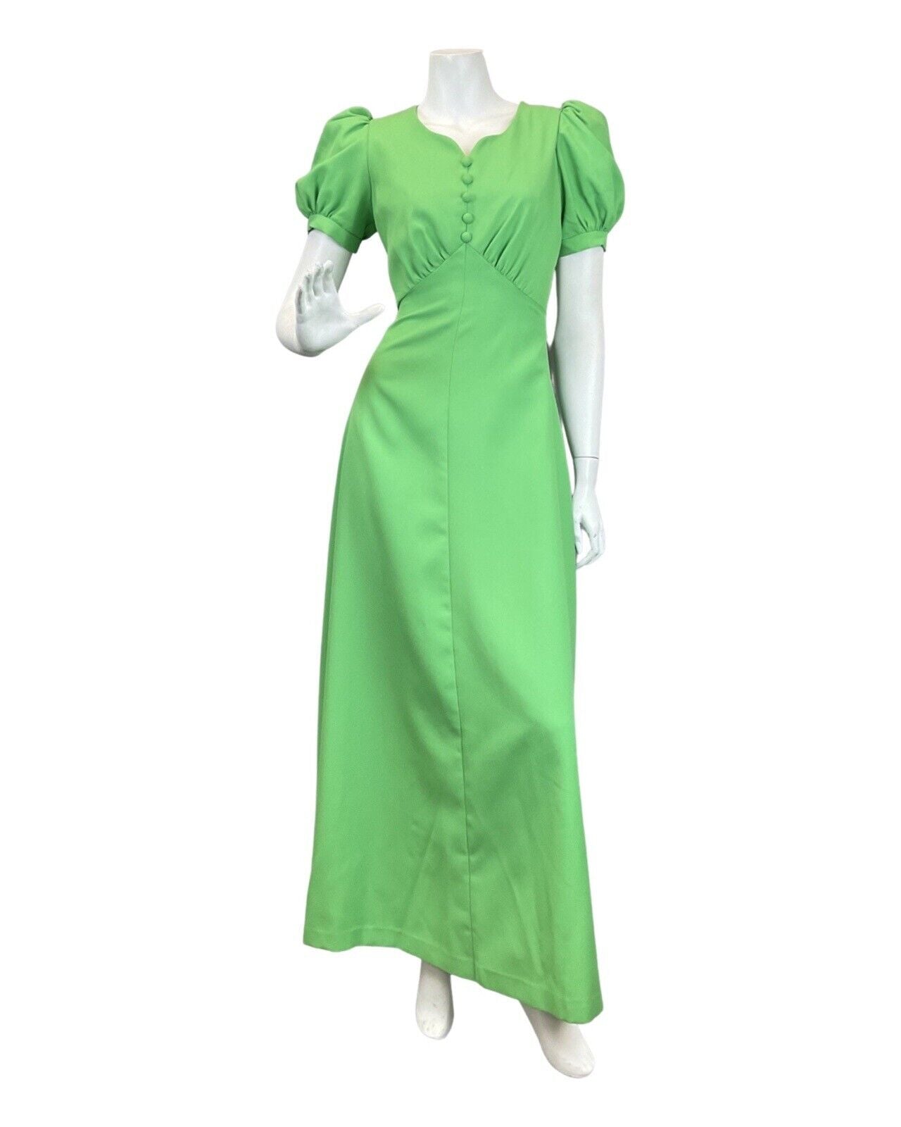 VINTAGE 60s 70s APPLE GREEN PUFF SLEEVE MOD MAXI DRESS 6 8