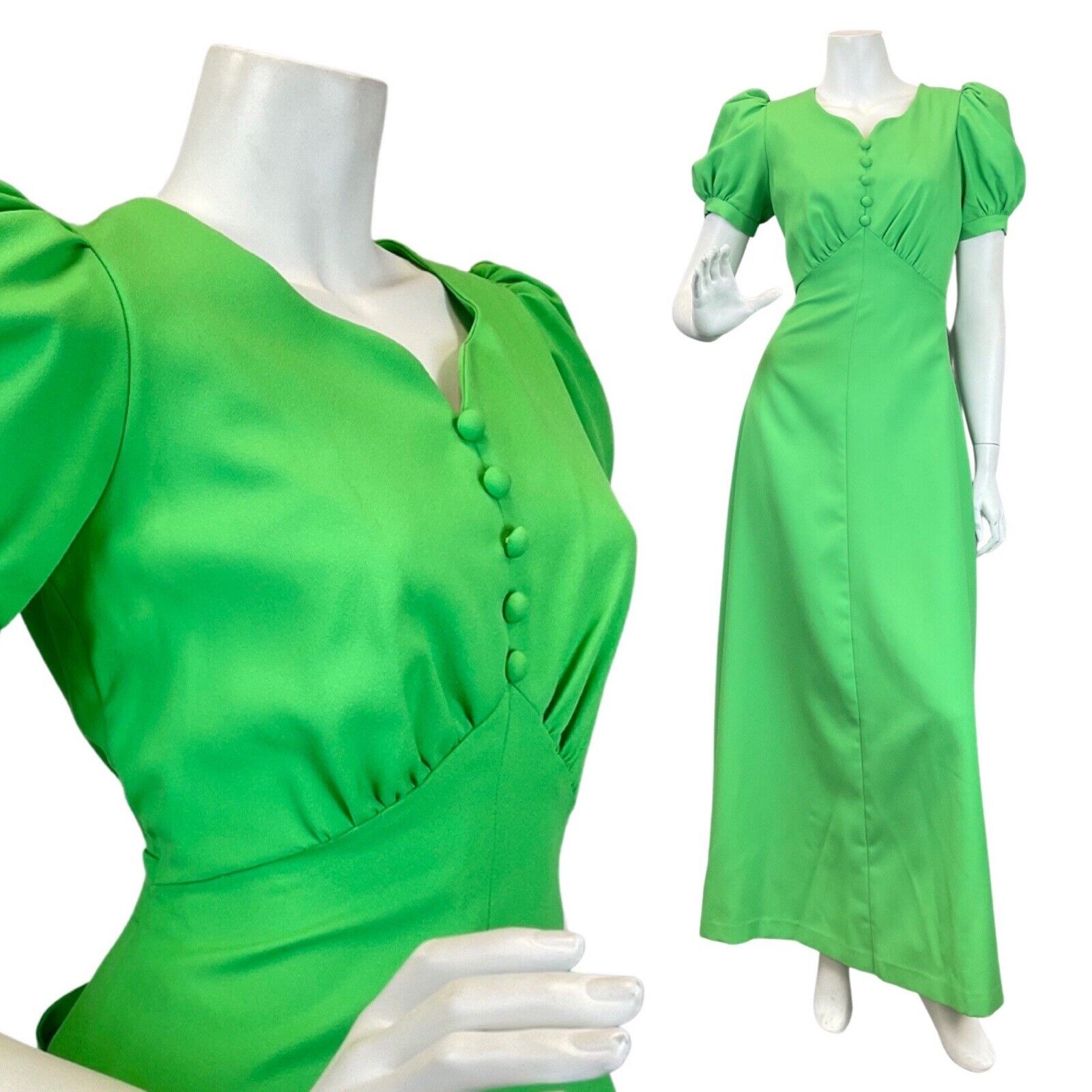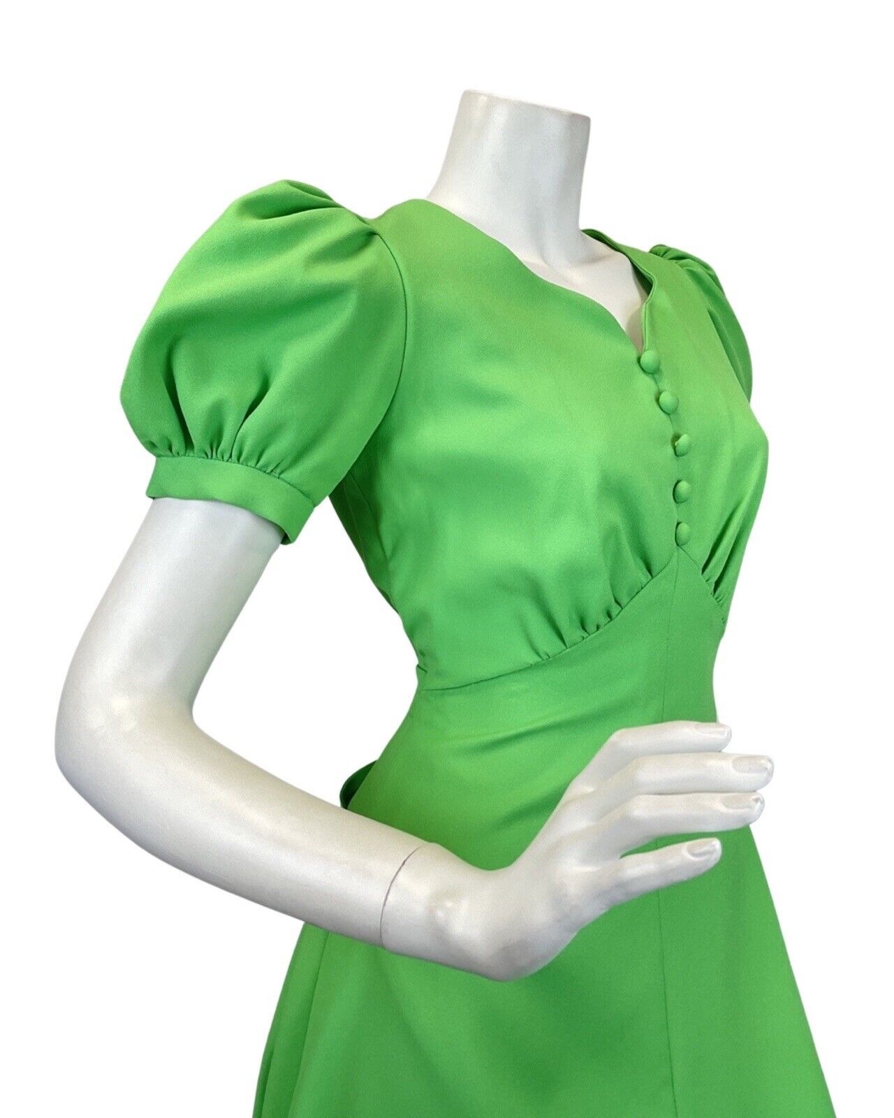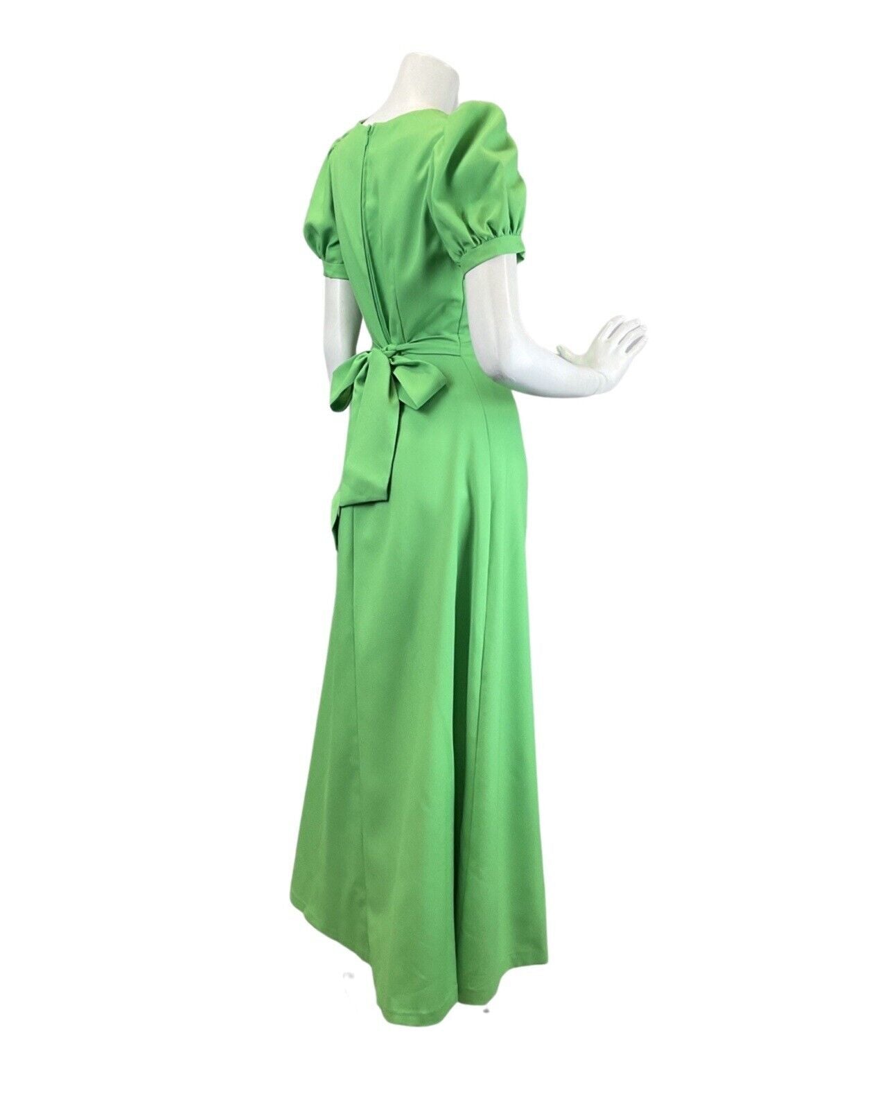 VINTAGE 60s 70s APPLE GREEN PUFF SLEEVE MOD MAXI DRESS 6 8