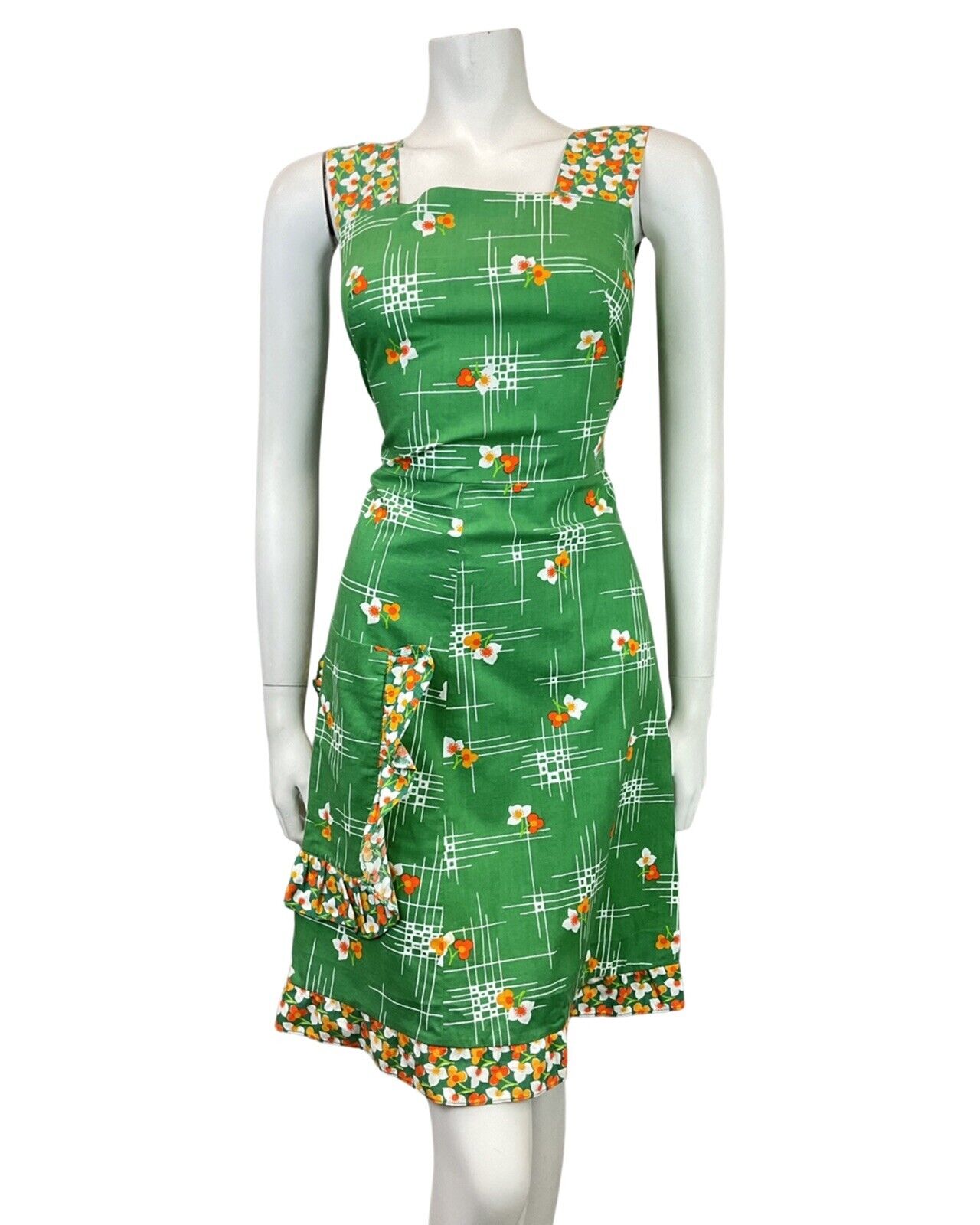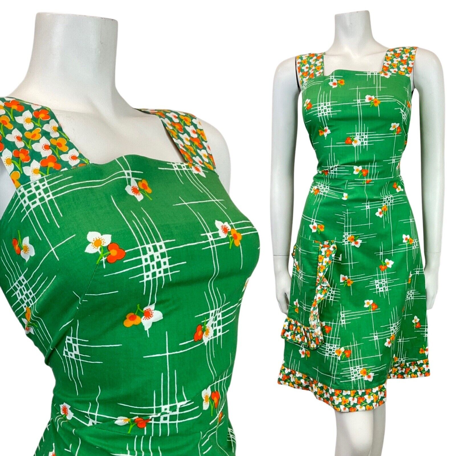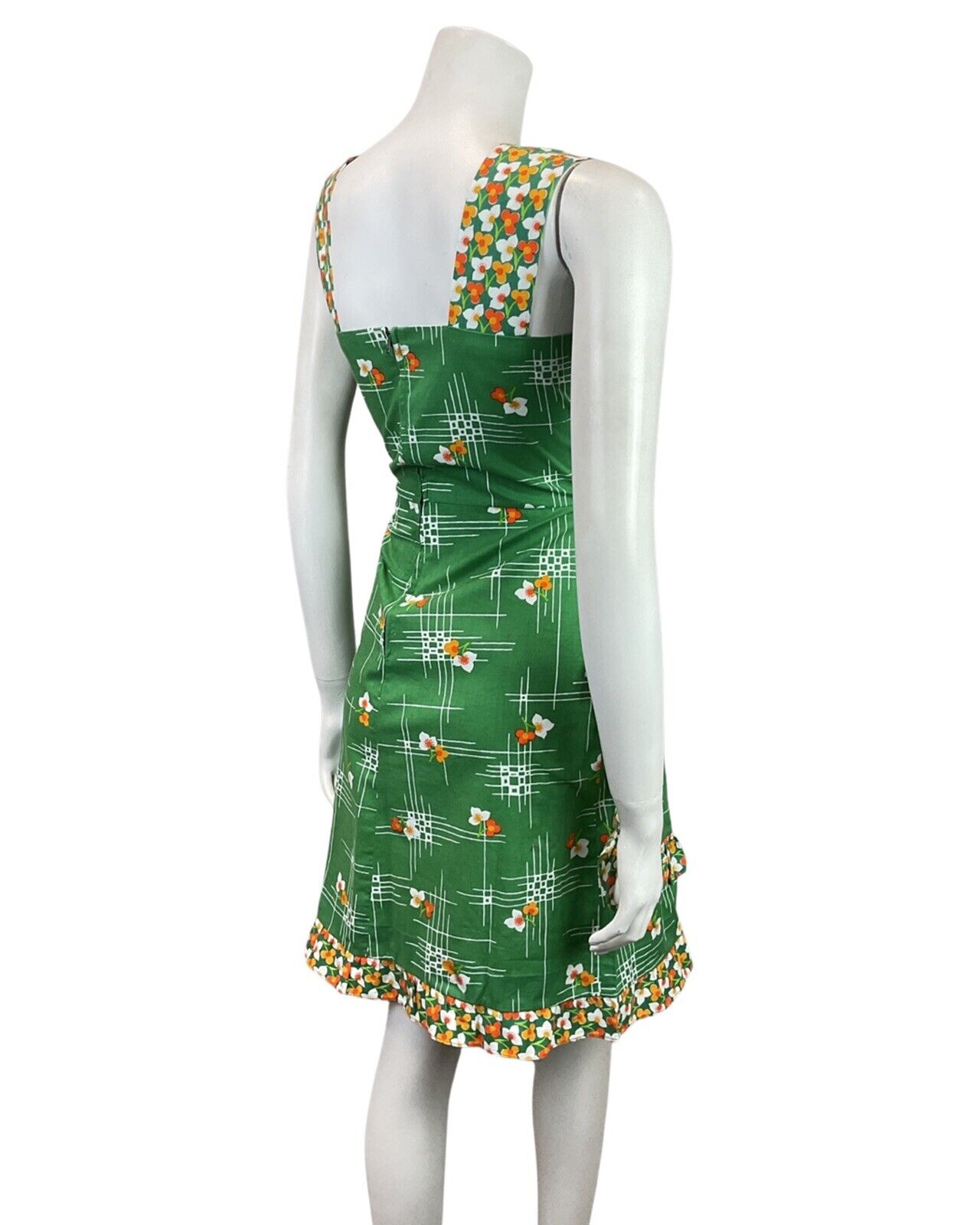 VINTAGE 60s 70s APPLE GREEN WHITE YELLOW FLOWER MOD SUMMER SUN DRESS 8