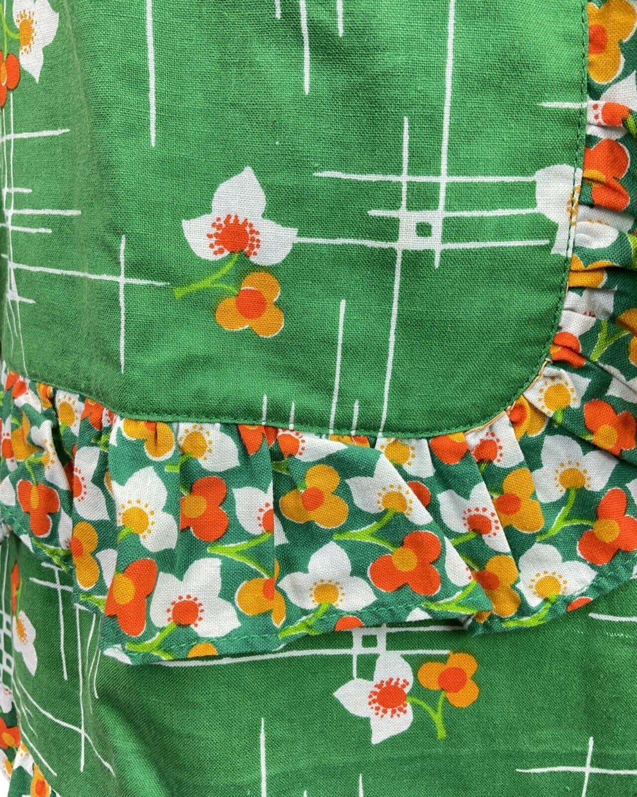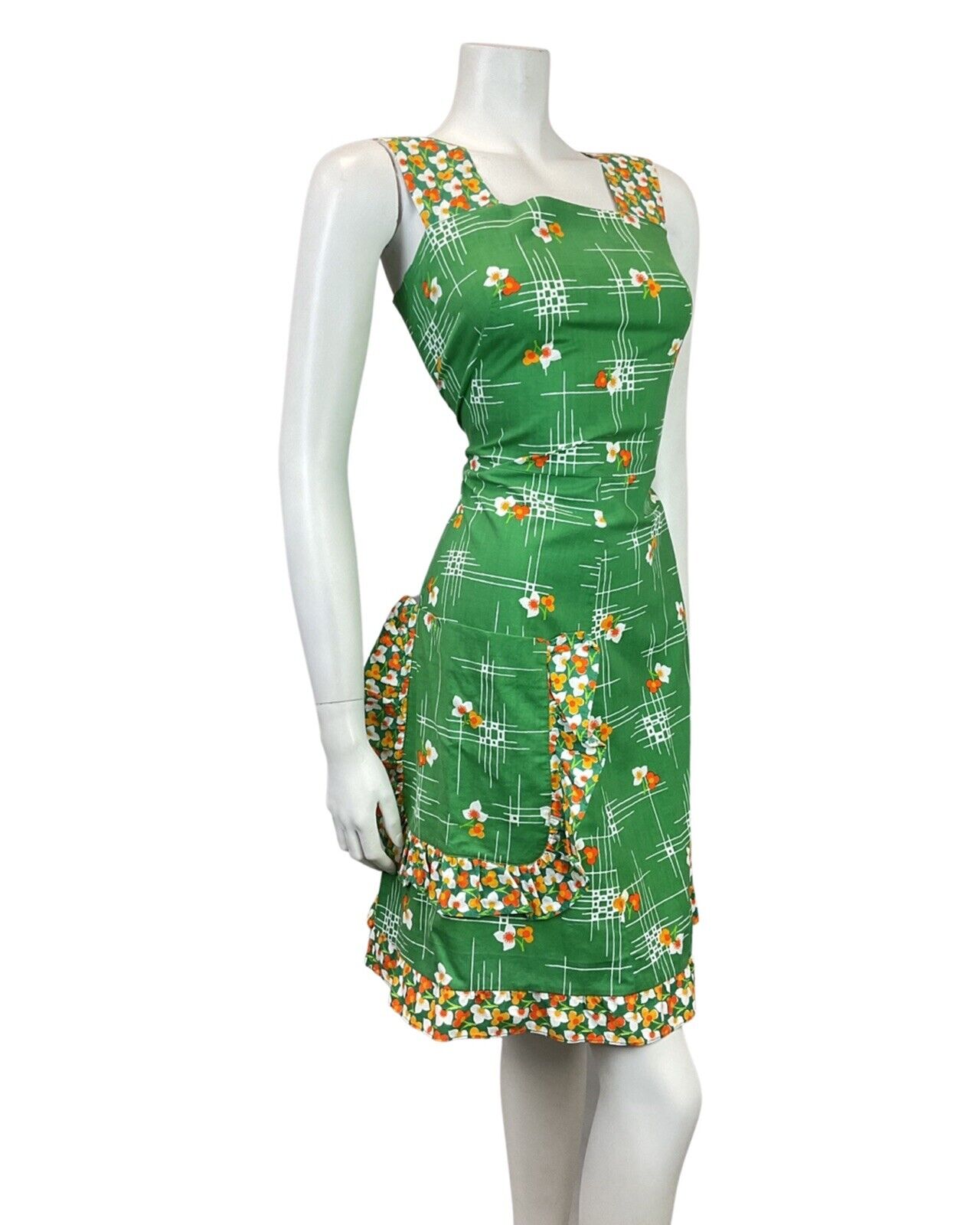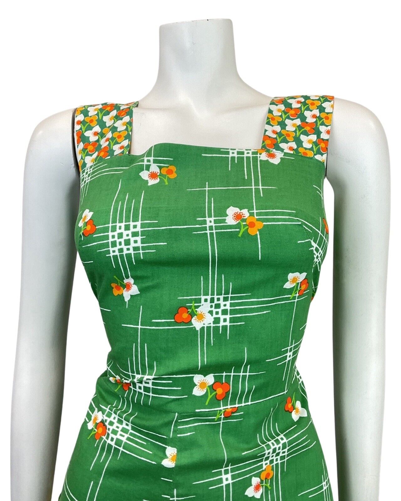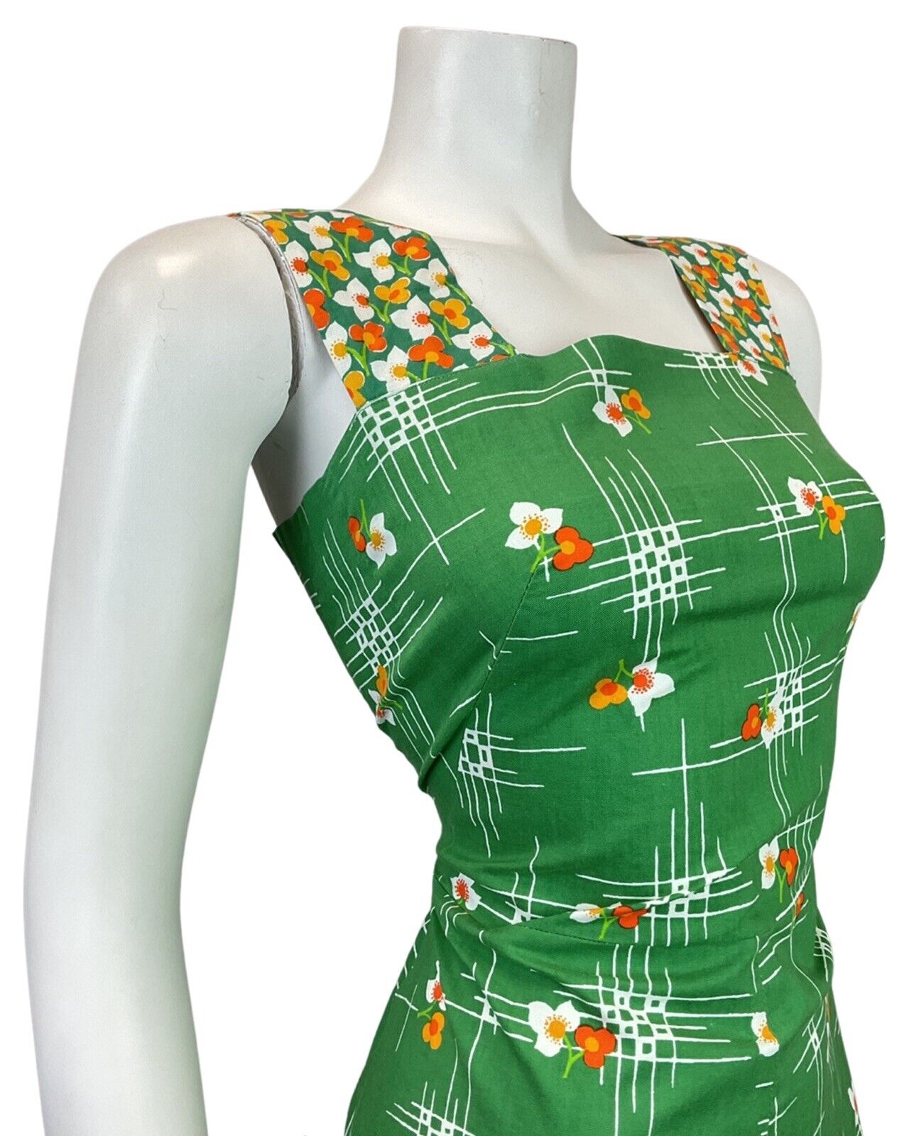 VINTAGE 60s 70s APPLE GREEN WHITE YELLOW FLOWER MOD SUMMER SUN DRESS 8