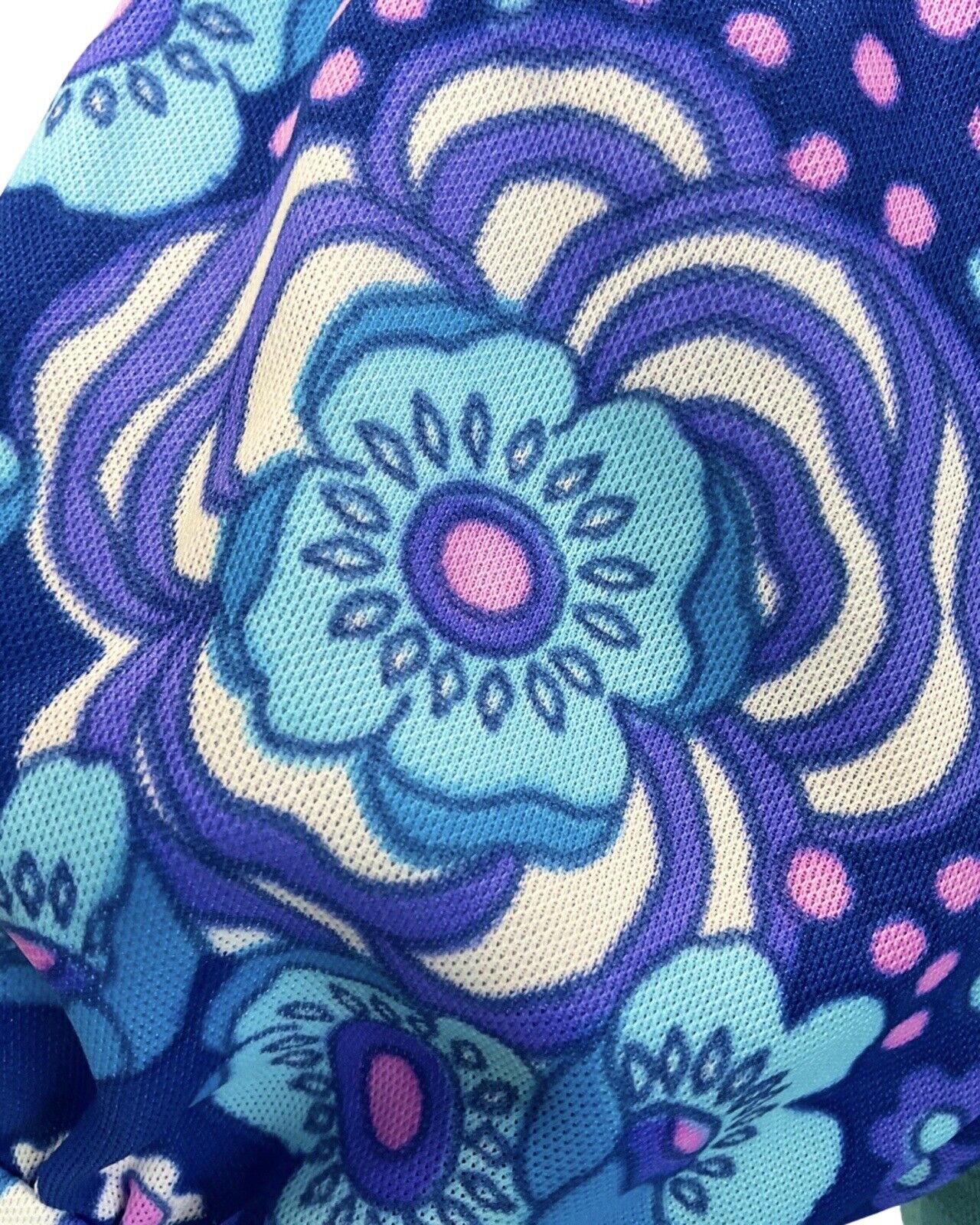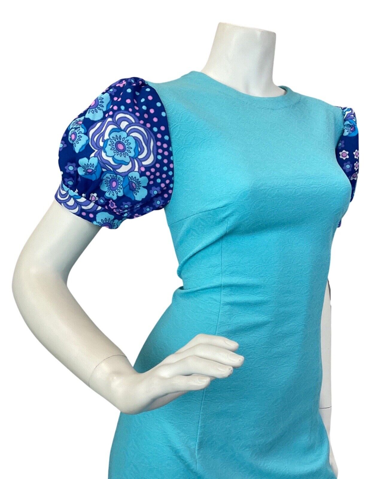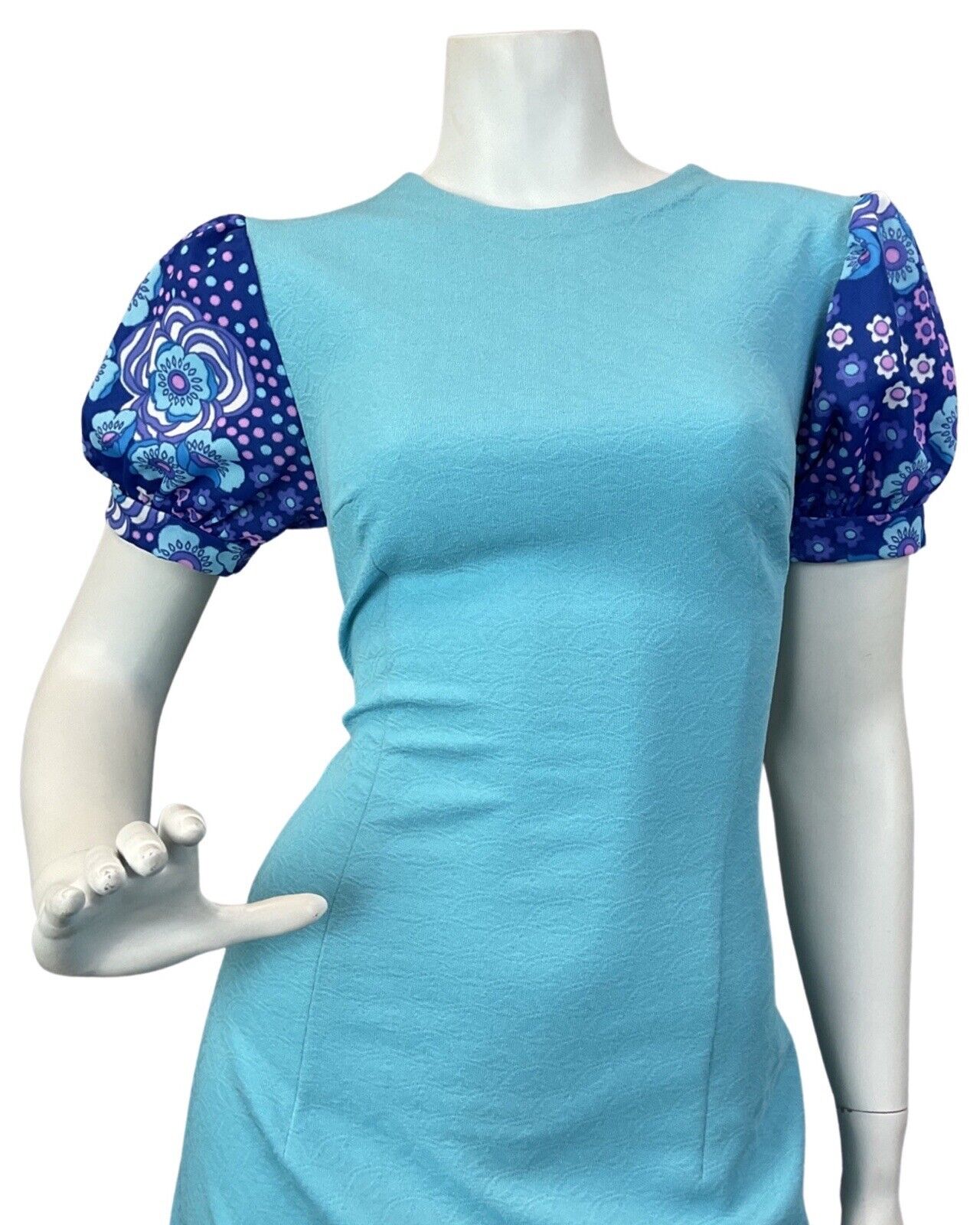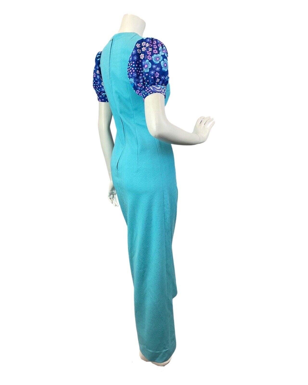 VINTAGE 60s 70s BABY BLUE NAVY PURPLE DAISY FLOWER PUFF SLEEVE MAXI DRESS 6 8