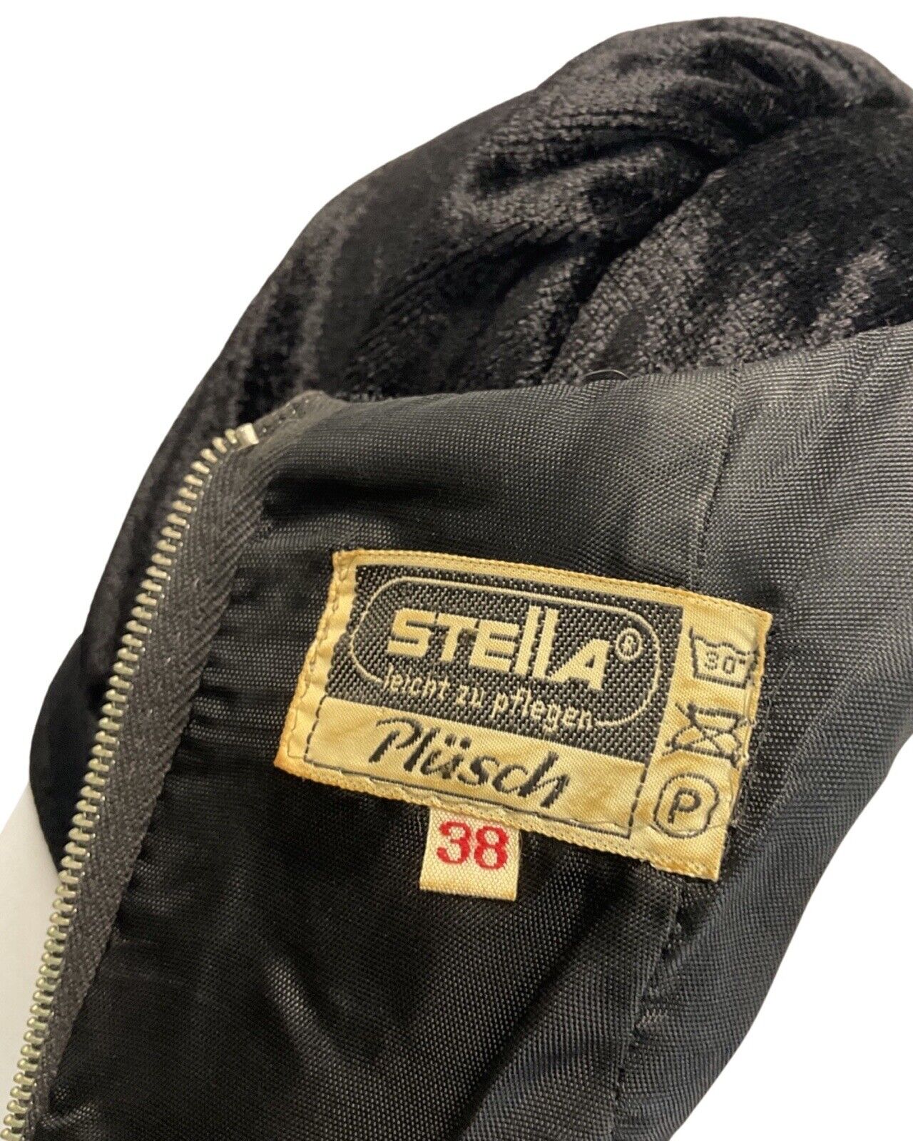 This is an amazing vintage maxi dress made from a shiny black polyester velvet fabric with a small amount of stretch and a fitted lining throughout. This dress would best fit: 12 please check your measurements against the ones provided below, Bust: 37" Waist: 30" Hips: 41" Length: 55" PLEASE NOTE: This garment has been measured flat and doubled for bust (armpit to armpit), waist and hip measurements, we measure the length down the back of the dress, measurements may differ slightly due to dress styles and fabrics. We ignore any existing size labels as vintage brands differed so much. Items shown on our mannequin may be clipped to fit. This garment is true vintage so please be aware there may be some signs of wear as expected from a garment of this age. We do not list stains to area likes linings that are hidden or things that can barely be seen without close inspection. These can include pin holes, small marks, light piling. We hand pick our items to make sure they are in great condition and fully wearable and we reject anything of poor condition. The majority of our items are 40-70 years old. If you think we've missed something significant please get in touch, we are only human and we lose transaction fees on returns so we don't skip things on purpose. The price of this dress includes free tracked or signed shipping service on all uk addresses CHECK OUT OUR OTHER ITEMS, WE LIST EVERY WEEK! |