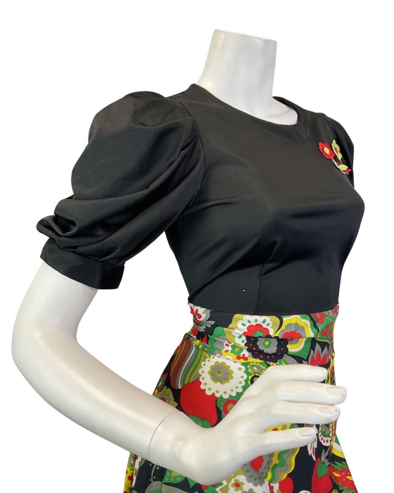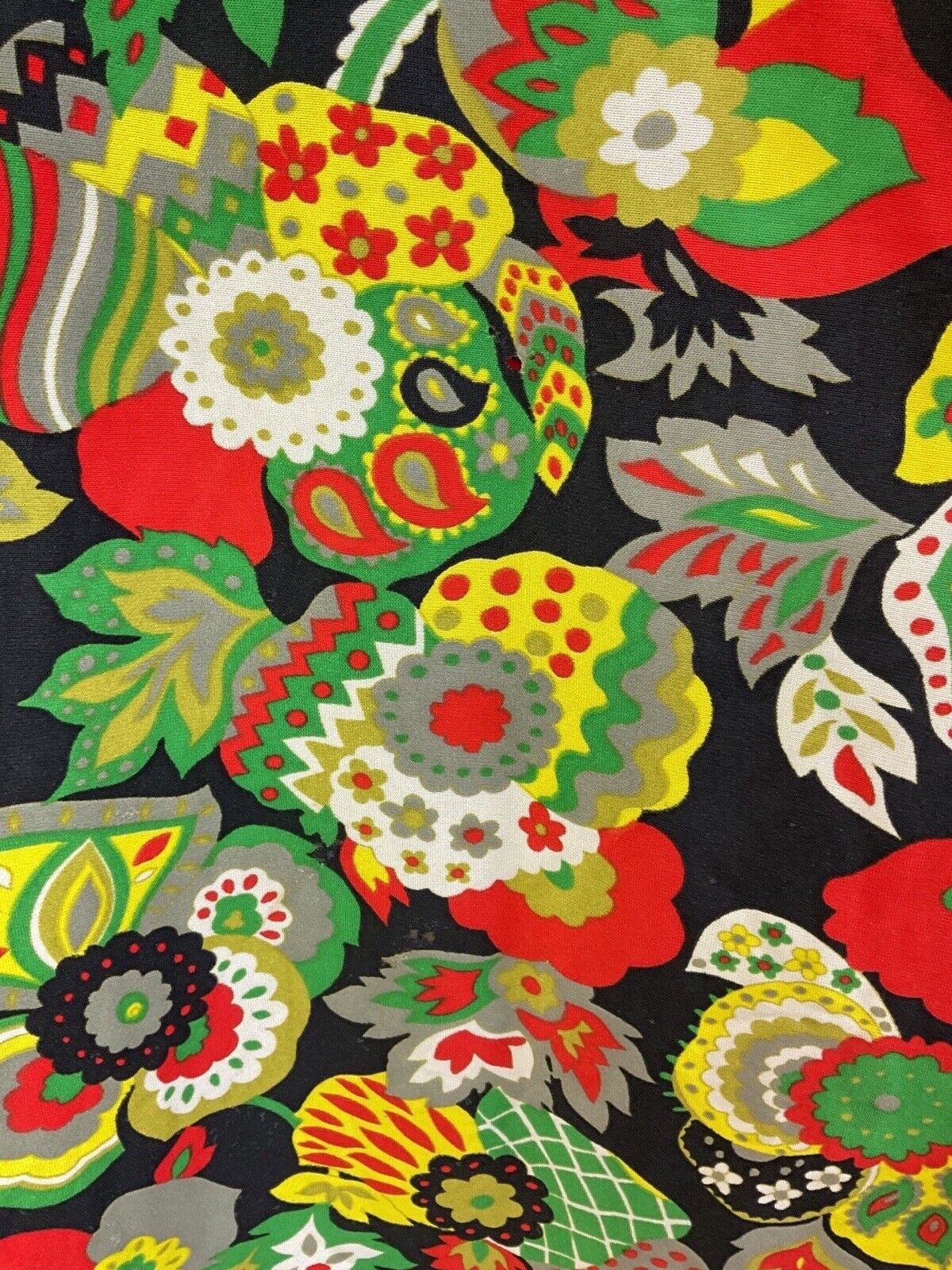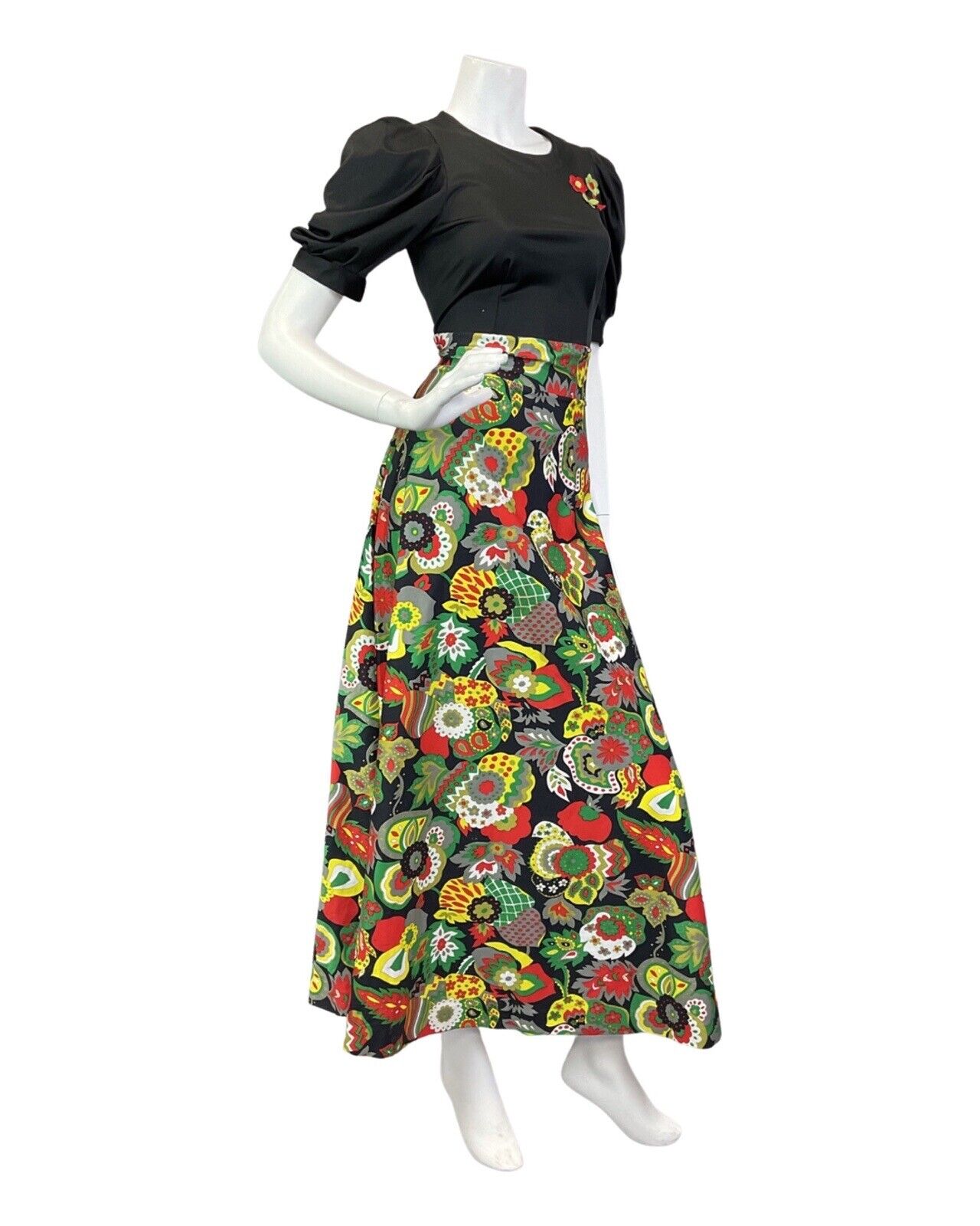 VINTAGE 60s 70s BLACK GREEN YELLOW PSYCHEDELIC FLORAL MANDALA MOD MAXI DRESS 8