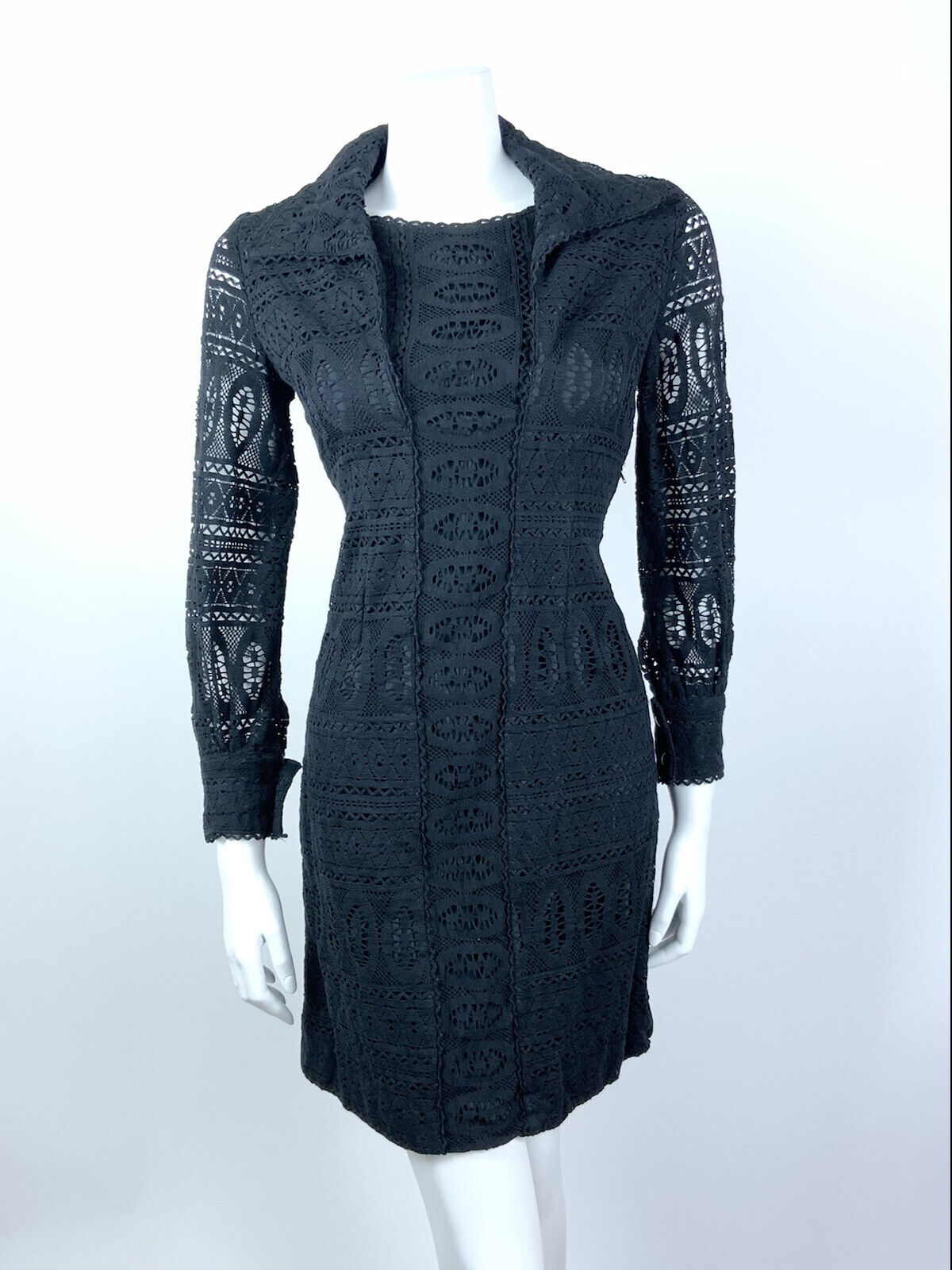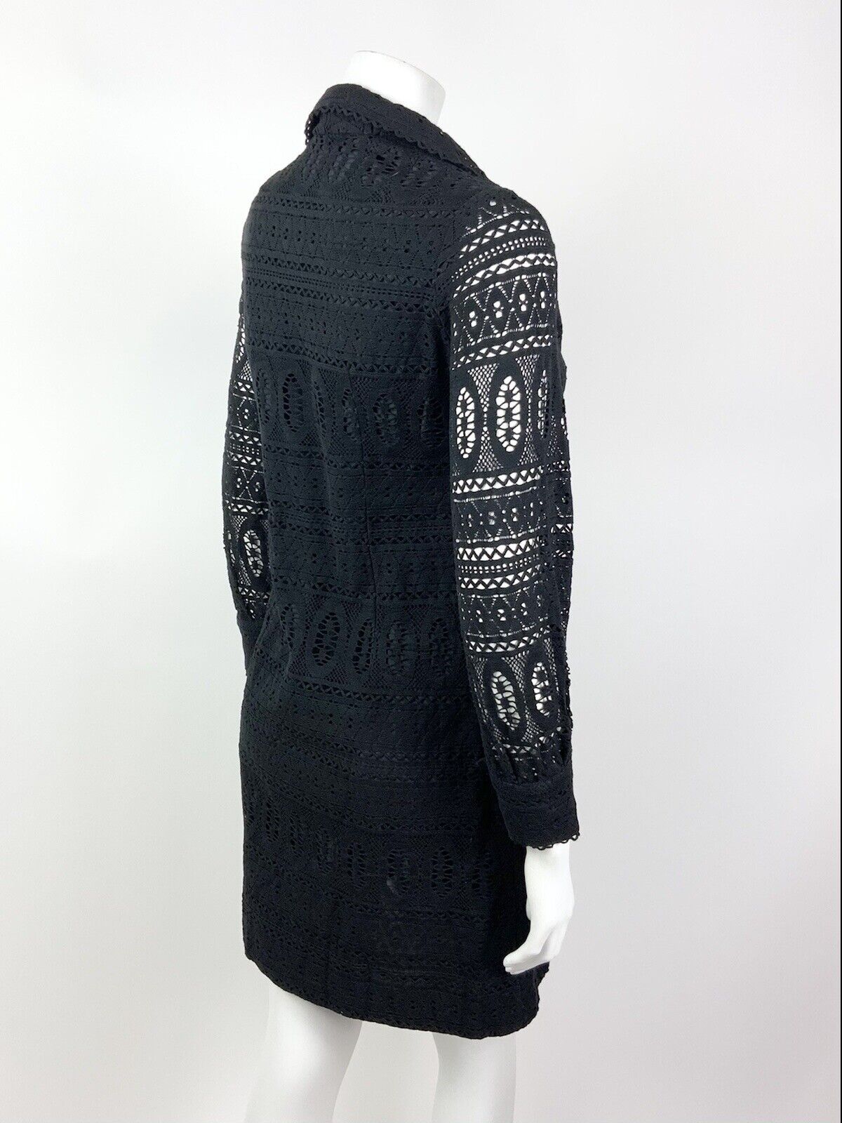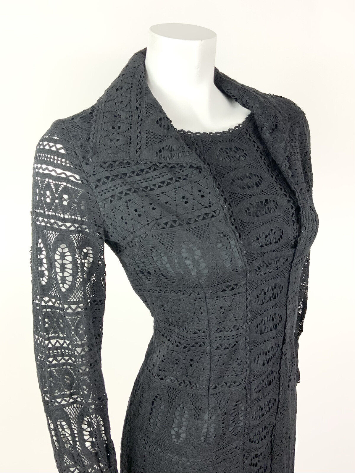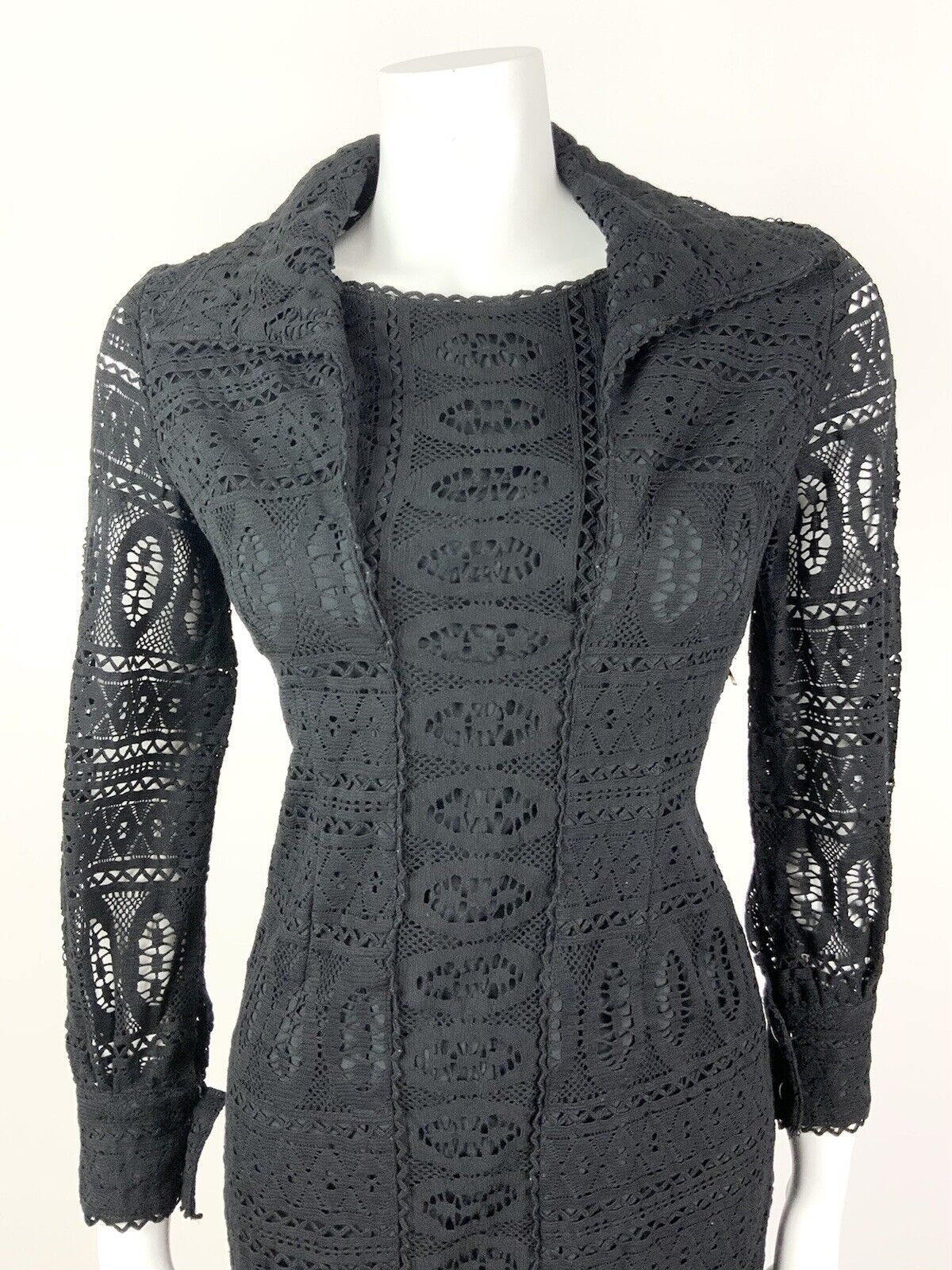VINTAGE 60s 70s BLACK LACE CROCHET MOD COVEN GLAM WING COLLAR DRESS 10 12