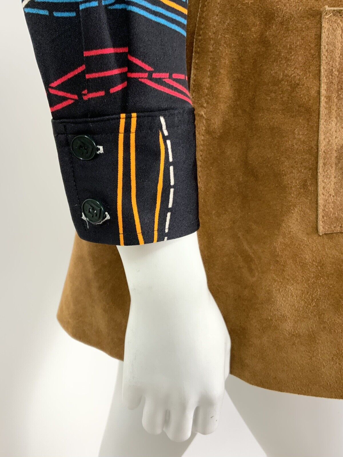 VINTAGE 60s 70s BLACK ORANGE BLUE RED WAVY STRIPED DAGGER COLLAR SHIRT 10 12