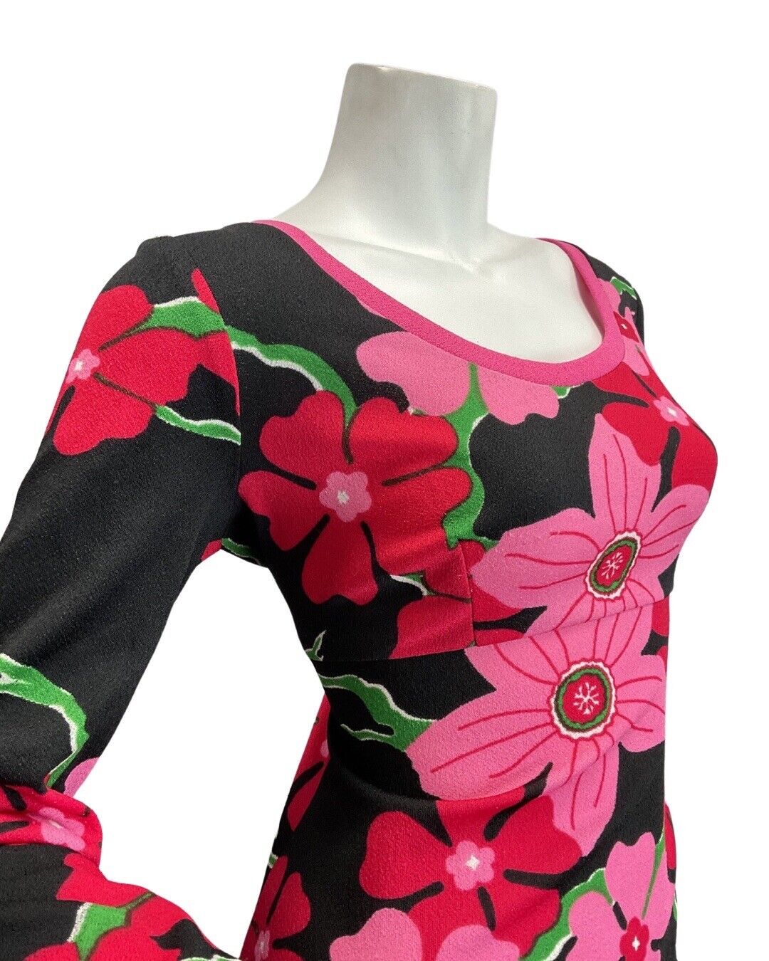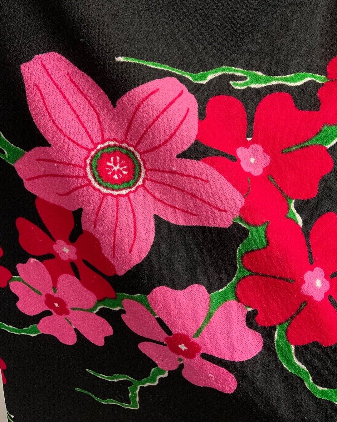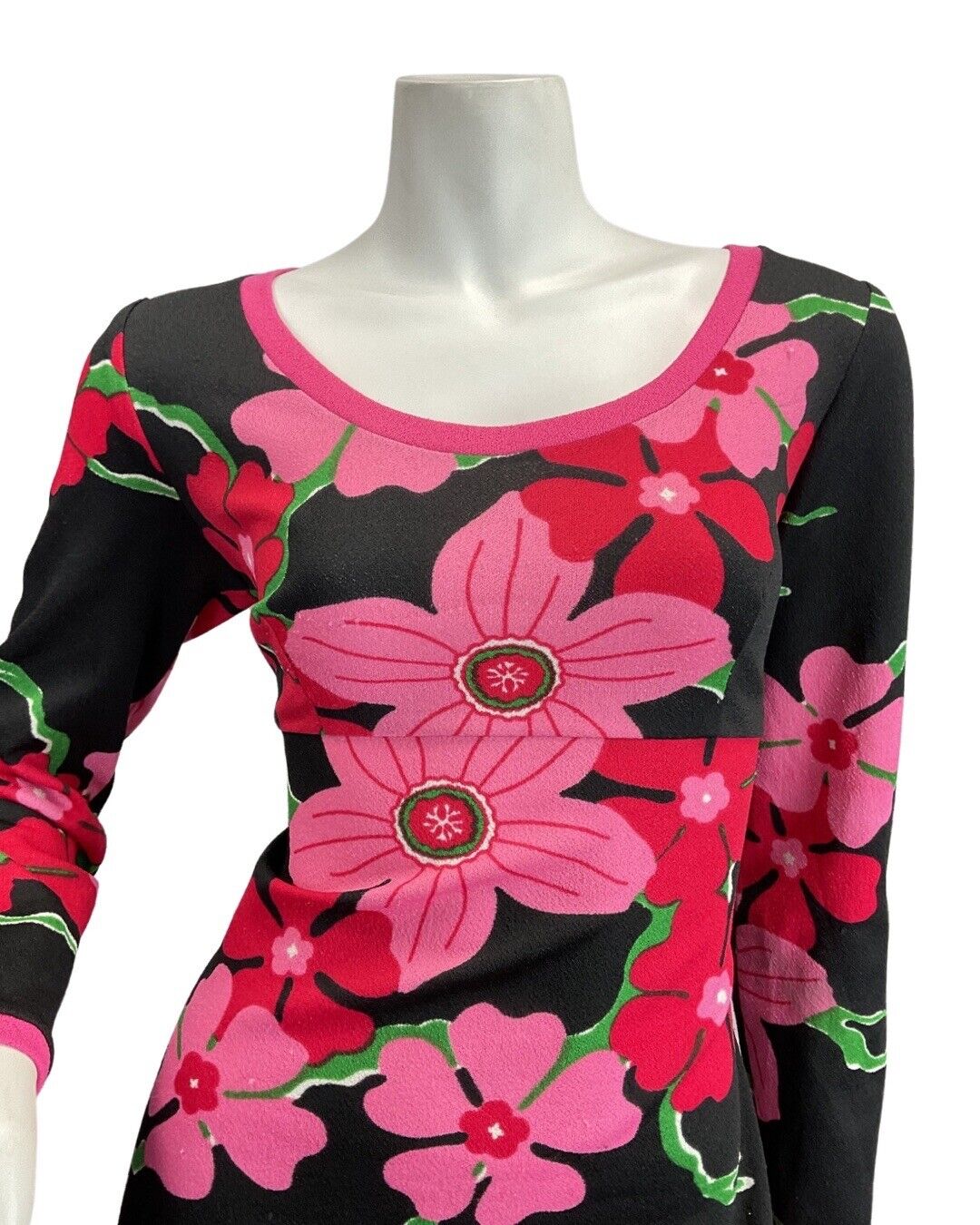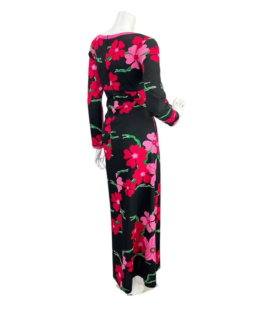 VINTAGE 60s 70s BLACK PINK GREEN FLORAL BLOSSOM MOD ALMEDAHL MAXI DRESS 12