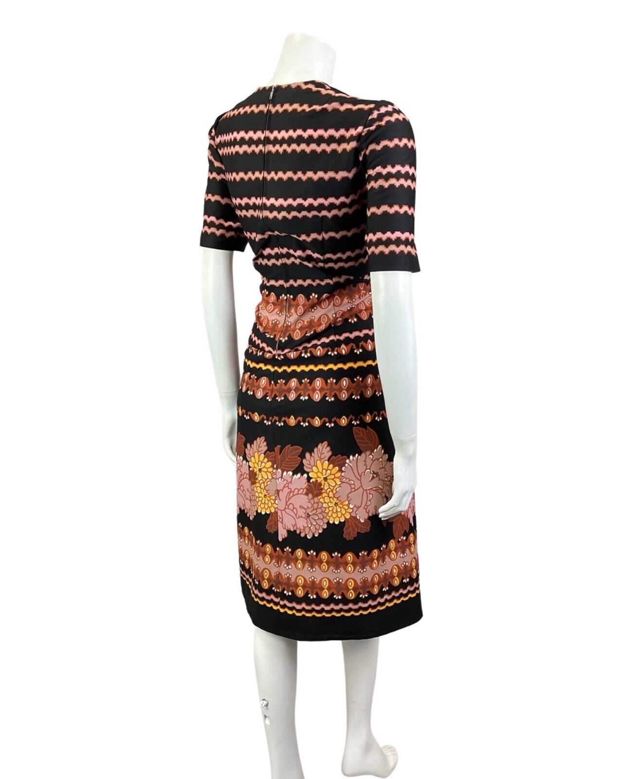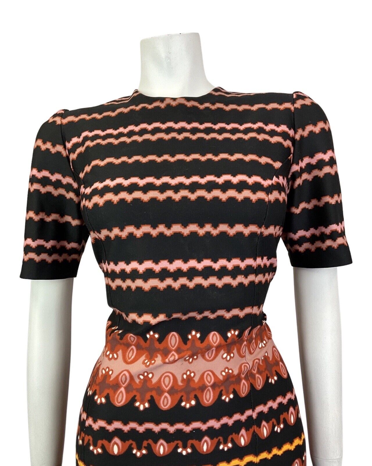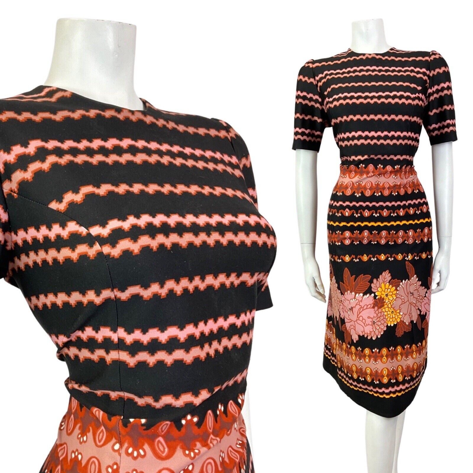 VINTAGE 60s 70s BLACK PINK ORANGE STRIPED FLORAL SUMMER DRESS 12 14