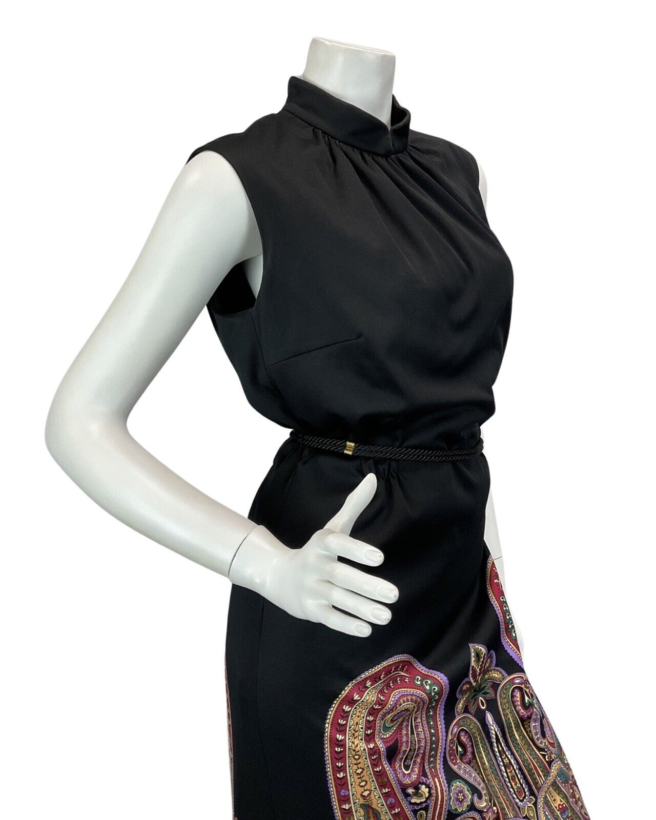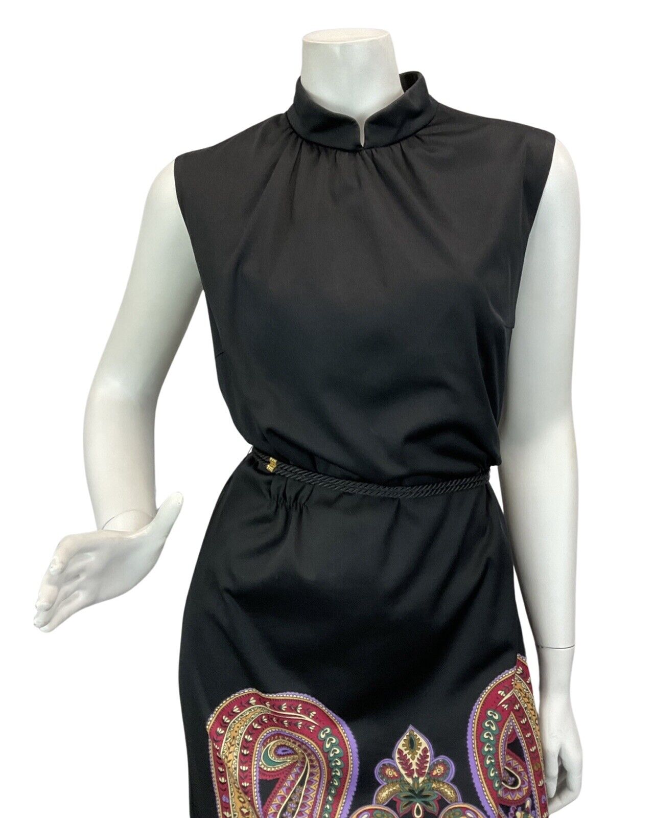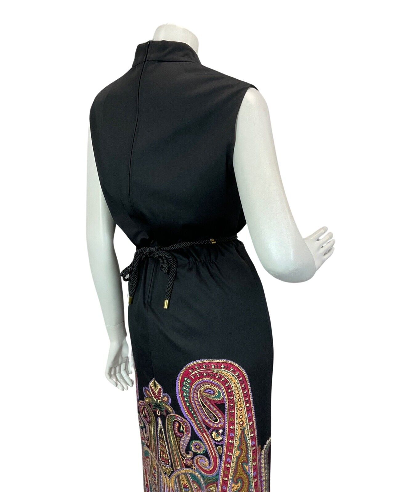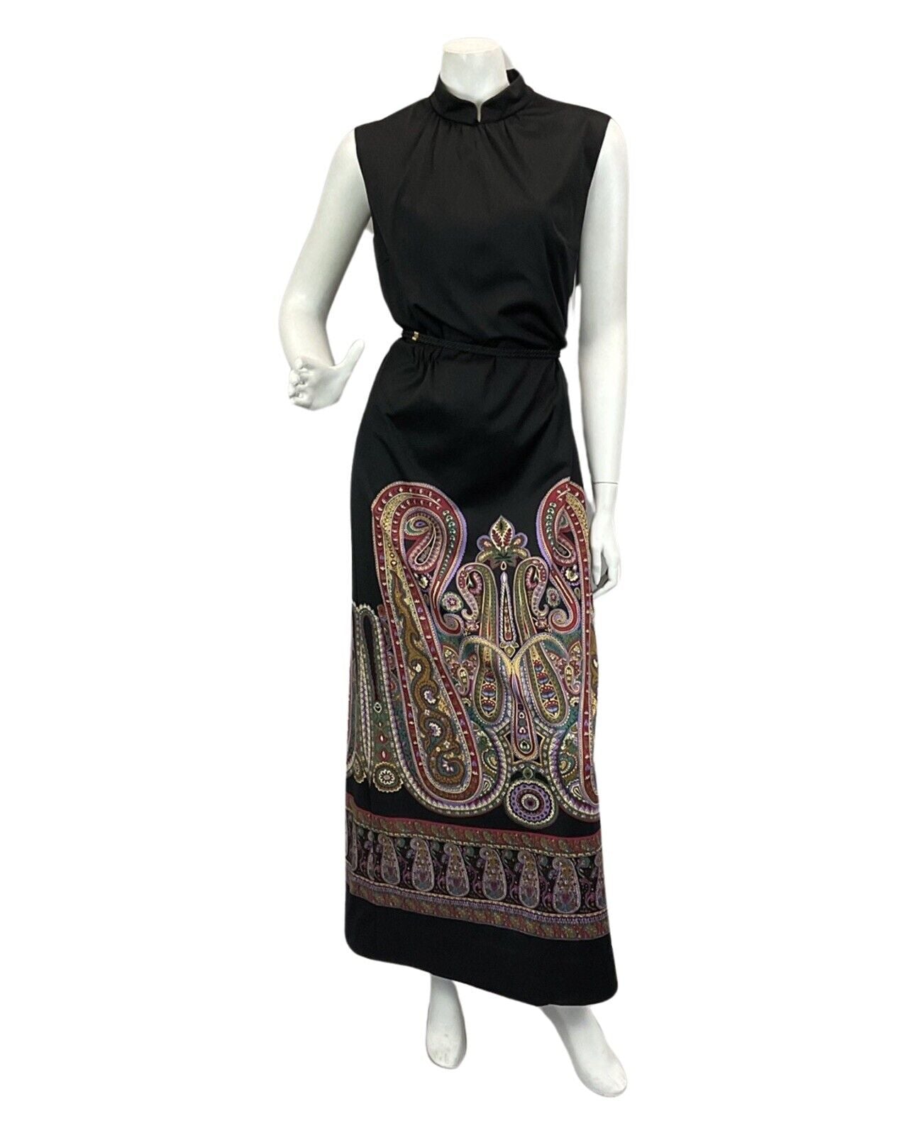 VINTAGE 60s 70s BLACK PURPLE BURGUNDY PAISLEY PRINT BOHO DISCO MAXI DRESS 14 16
