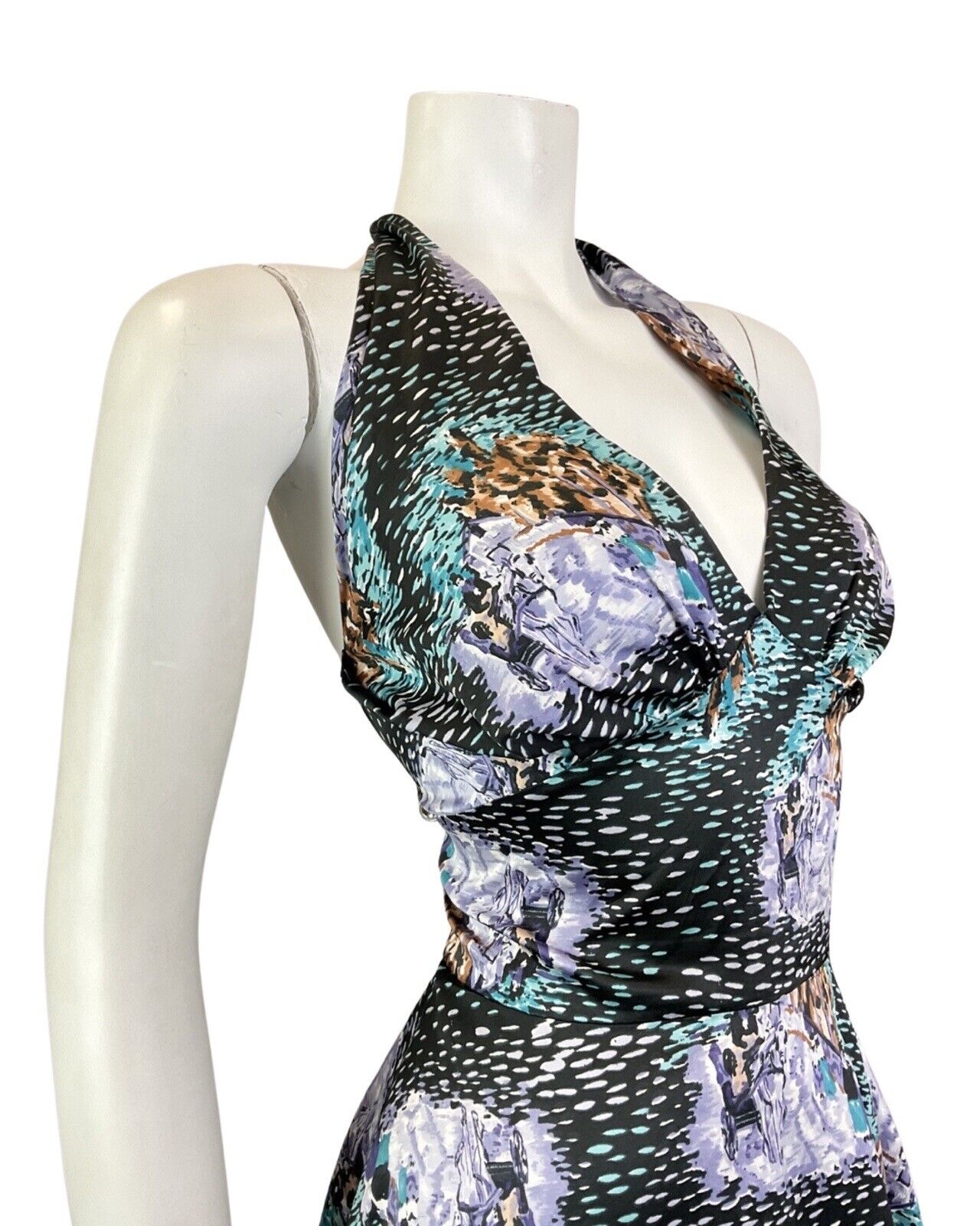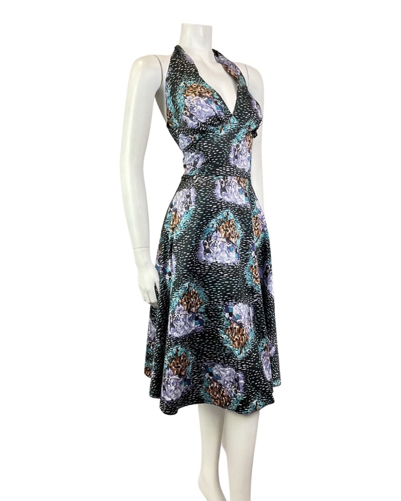 This is a bold vintage halter swing dress made from a light-weight, synthetic fabric with no stretch and a fitted lining from the waist. This dress would best fit: 12 please check your measurements against the ones provided below, Bust: 37" Waist: 30" Hips: 48" Length: 46" PLEASE NOTE: This garment has been measured flat and doubled for bust (armpit to armpit), waist and hip measurements, we measure the length down the back of the dress, measurements may differ slightly due to dress styles and fabrics. We ignore any existing size labels as vintage brands differed so much. Items shown on our mannequin may be clipped to fit. This garment is true vintage so please be aware there may be some signs of wear as expected from a garment of this age. We do not list stains to area likes linings that are hidden or things that can barely be seen without close inspection. These can include pin holes, small marks, light piling. We hand pick our items to make sure they are in great condition and fully wearable and we reject anything of poor condition. The majority of our items are 40-70 years old. If you think we've missed something significant please get in touch, we are only human and we lose transaction fees on returns so we don't skip things on purpose. CHECK OUT OUR OTHER ITEMS, WE LIST EVERY WEEK! |