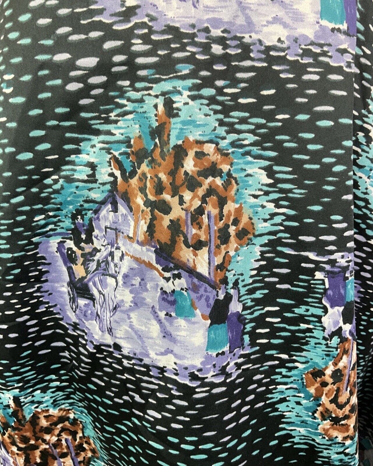 VINTAGE 60s 70s BLACK PURPLE MINT HORSE CART DASH HALTER SWING DRESS 10 12