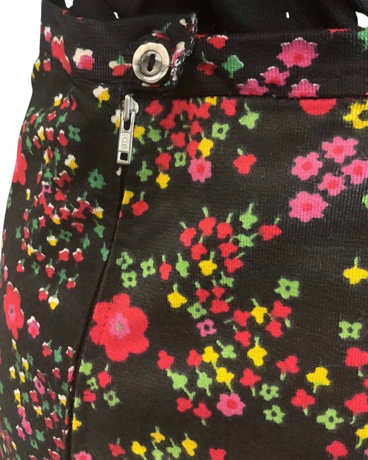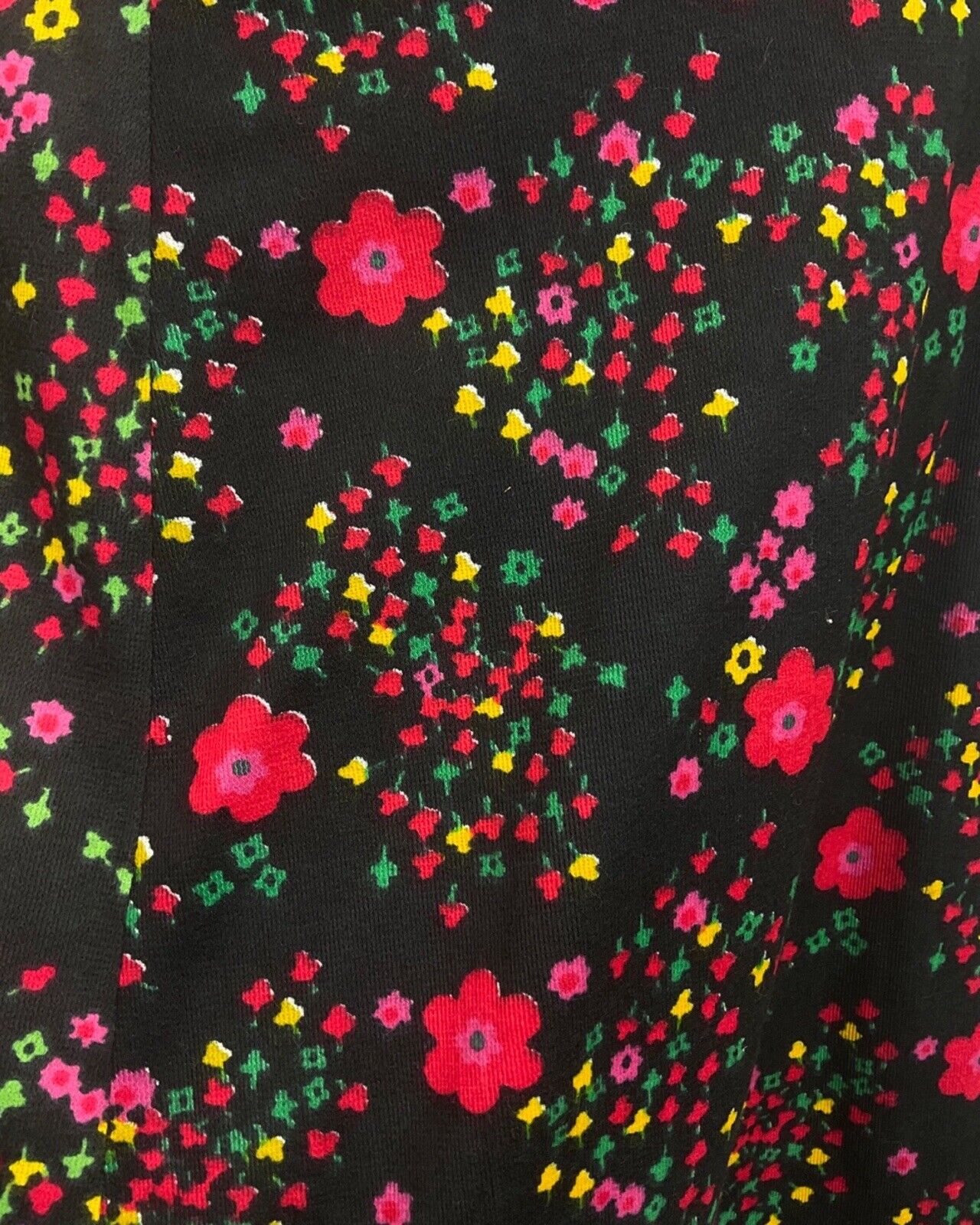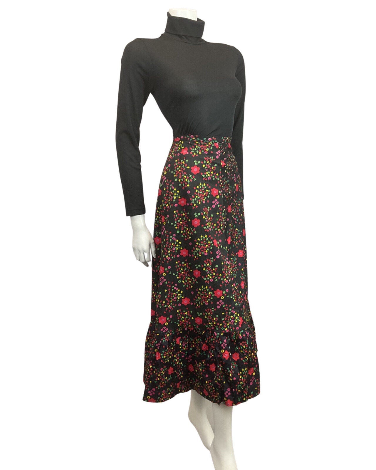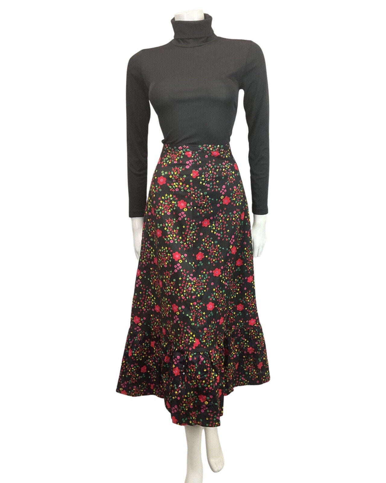 VINTAGE 60s 70s BLACK RED PINK GREEN FLORAL DAISY MOD BOHO MAXI SKIRT 8