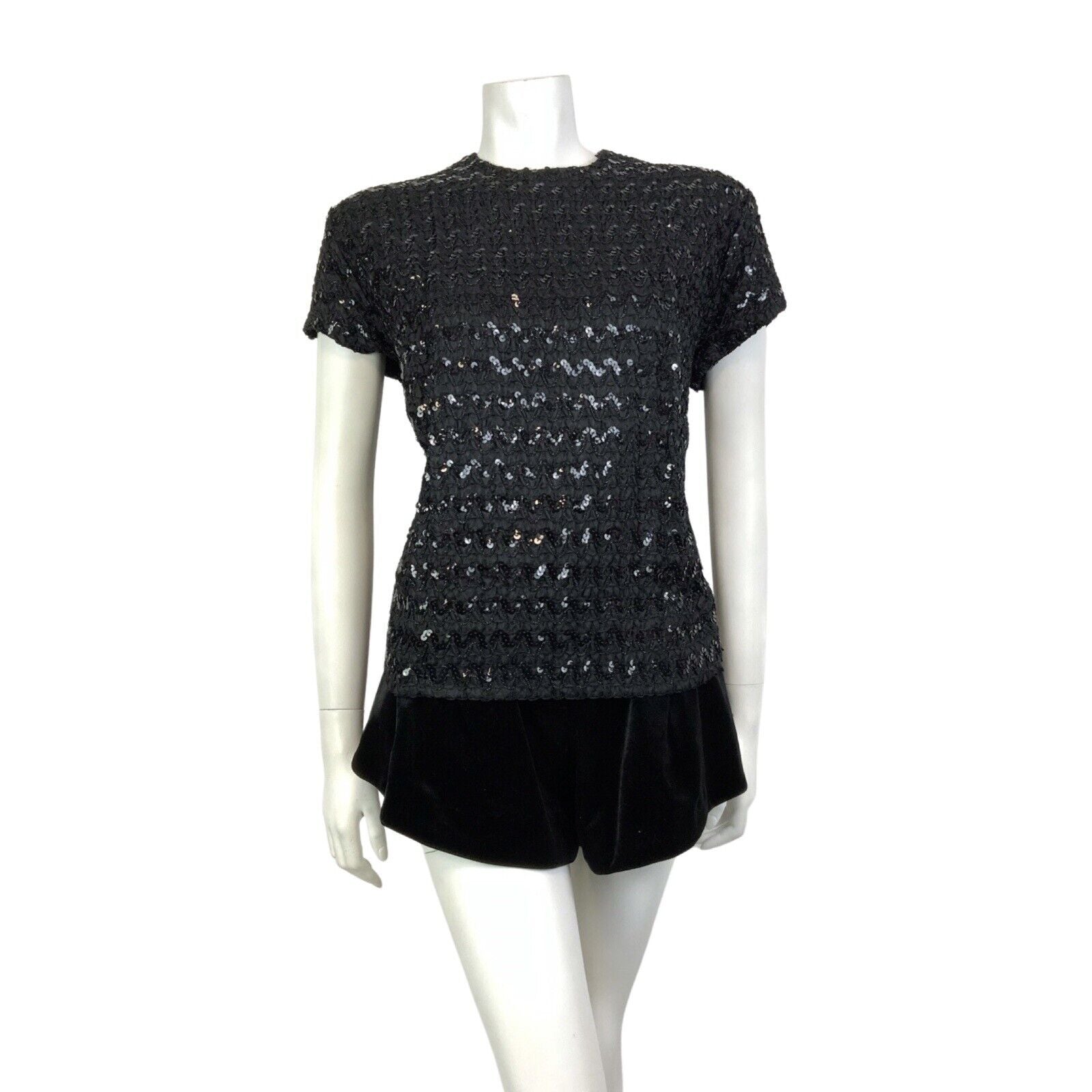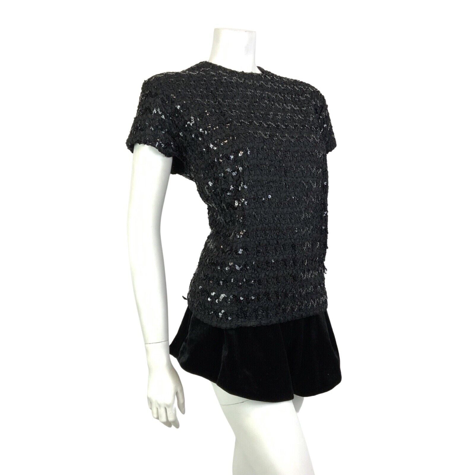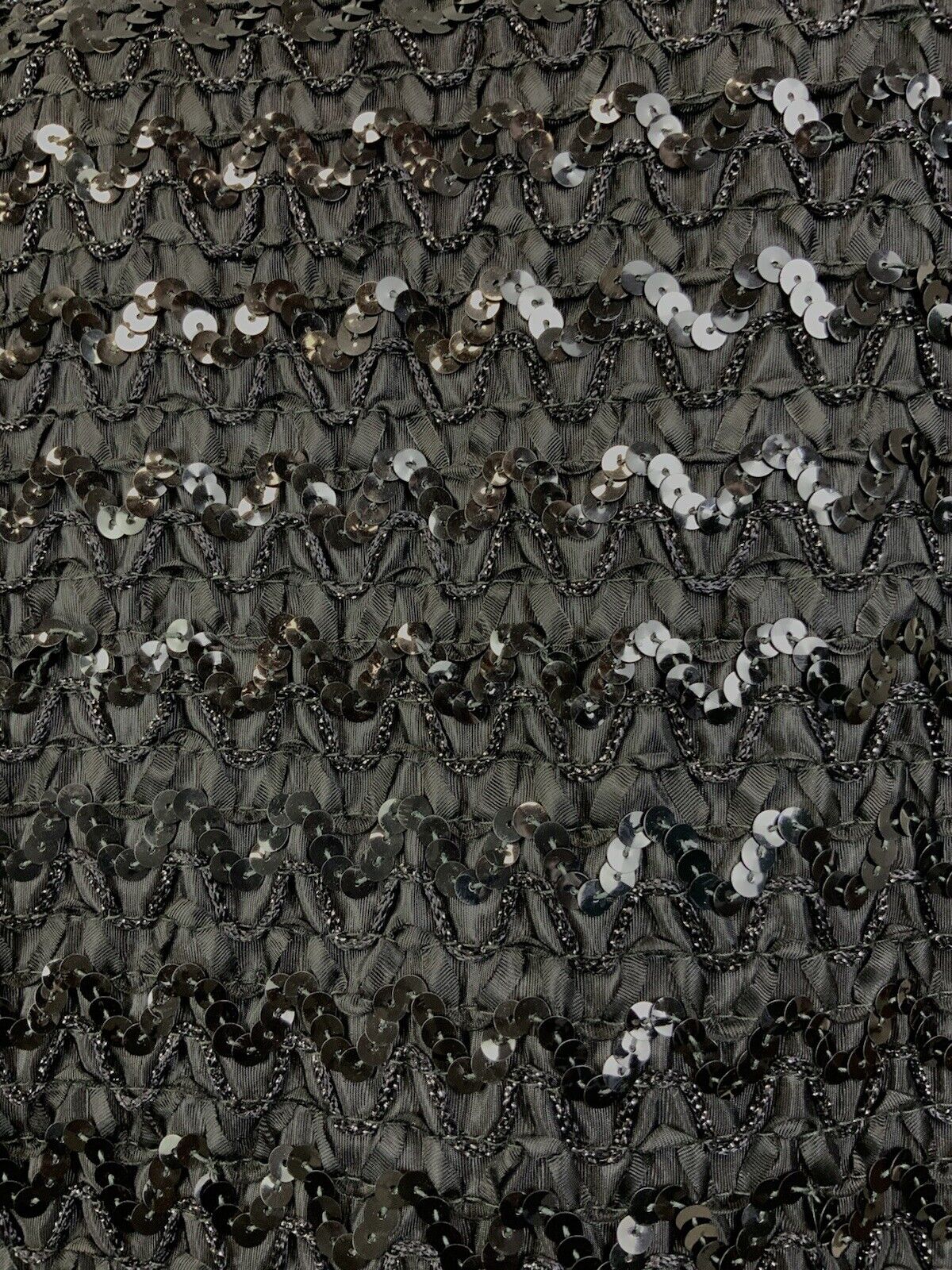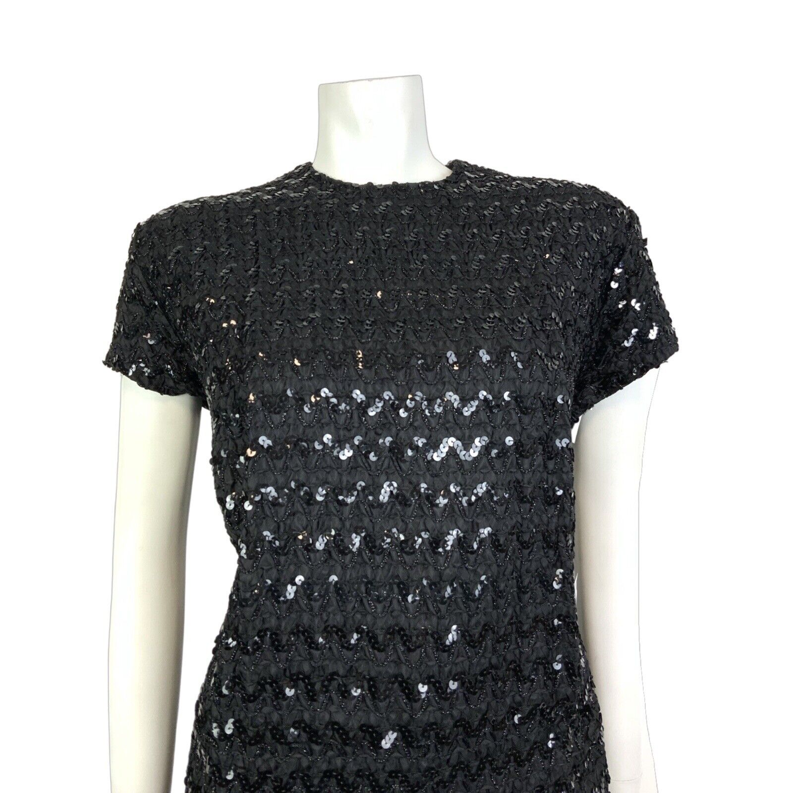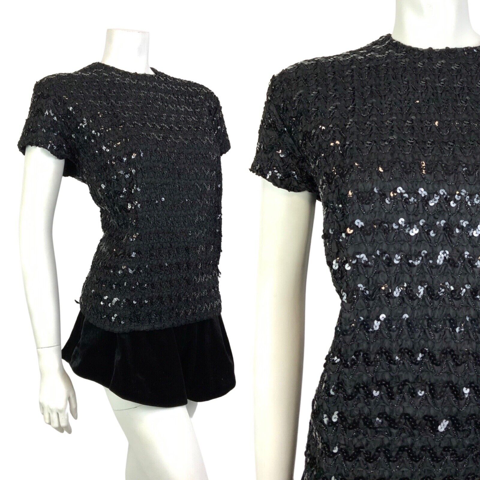 VINTAGE 60s 70s BLACK SEQUIN BRAIDED WAVY ZIG-ZAG DISCO STUDIO 54 TOP 14 16