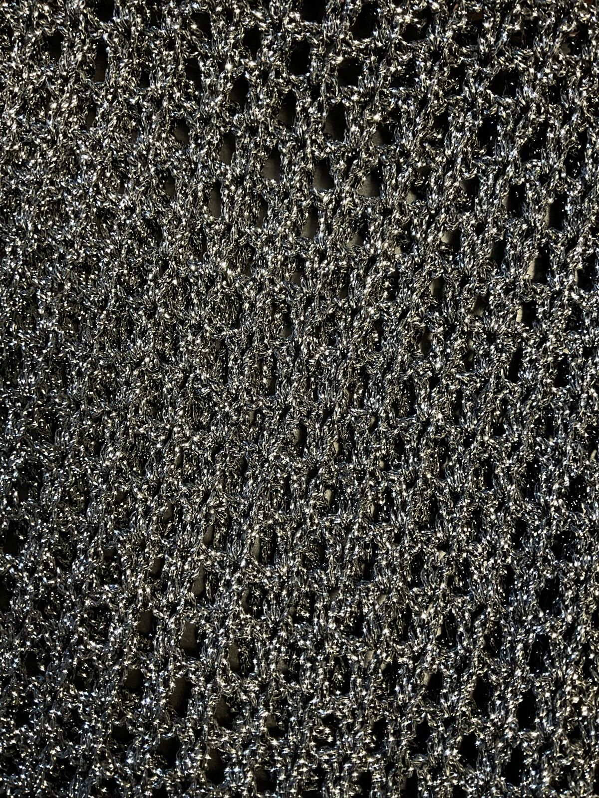 This is a fab vintage vest top made from a black and silver crocheted polyester wool fabric with a good stretch and no additional lining.