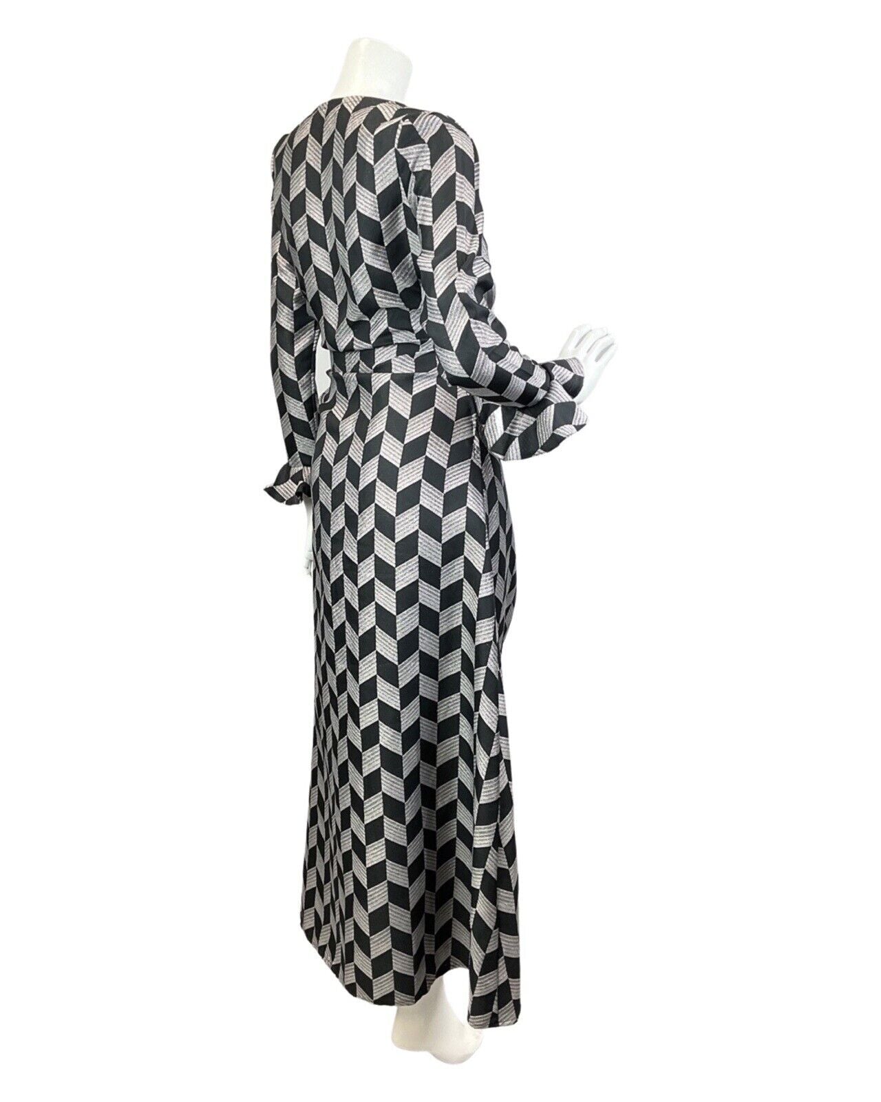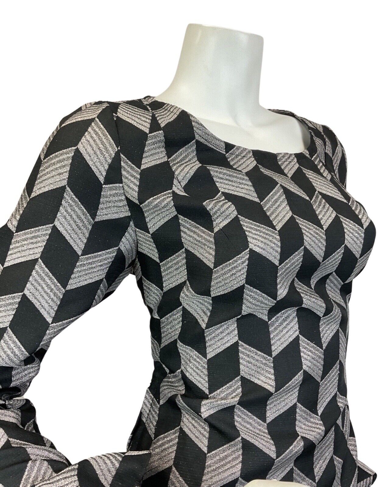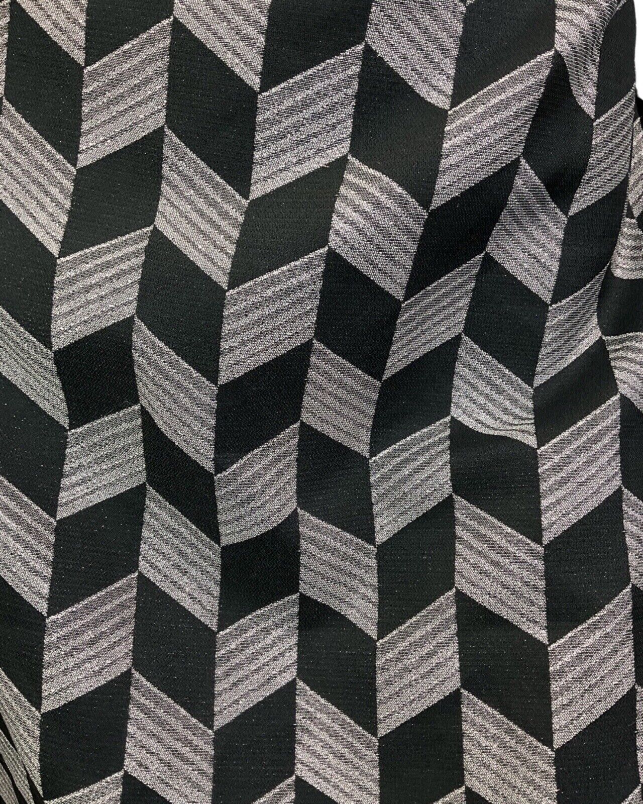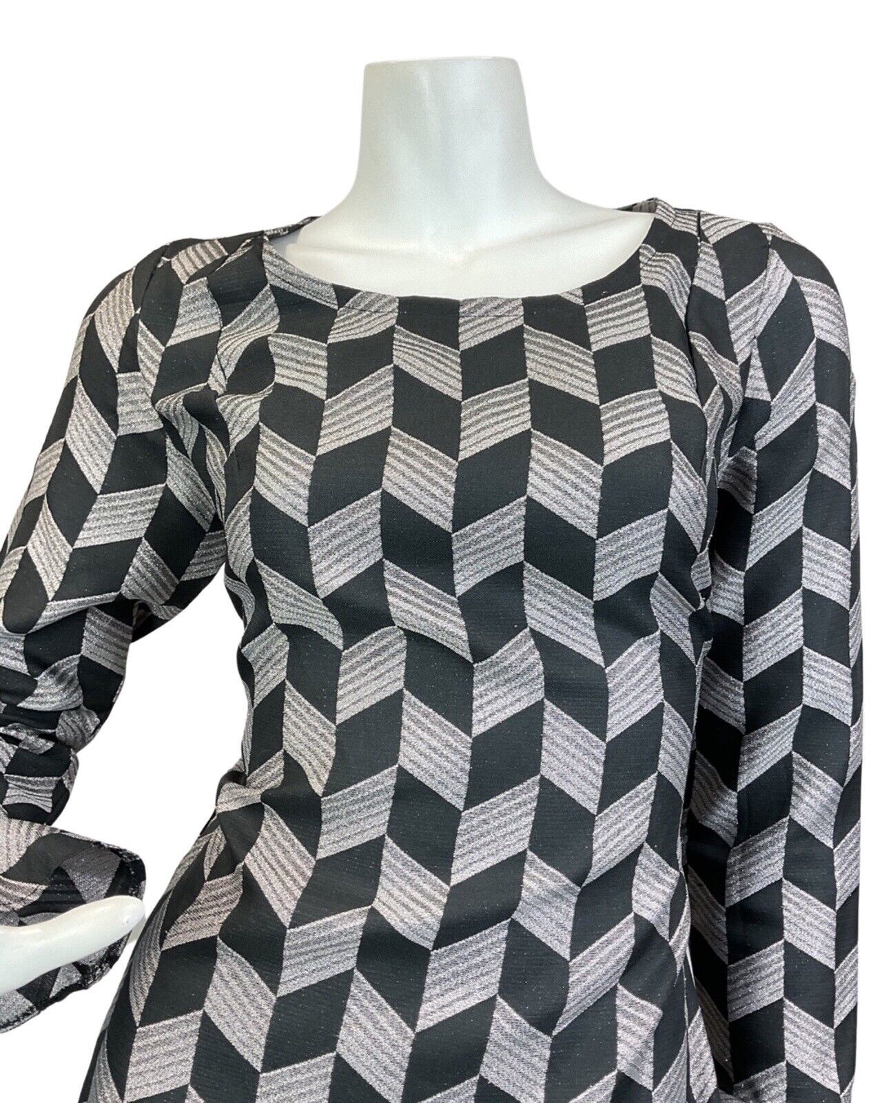 VINTAGE 60s 70s BLACK SILVER LUREX CHEVRON MOD DISCO STUDIO 54 MAXI DRESS 12