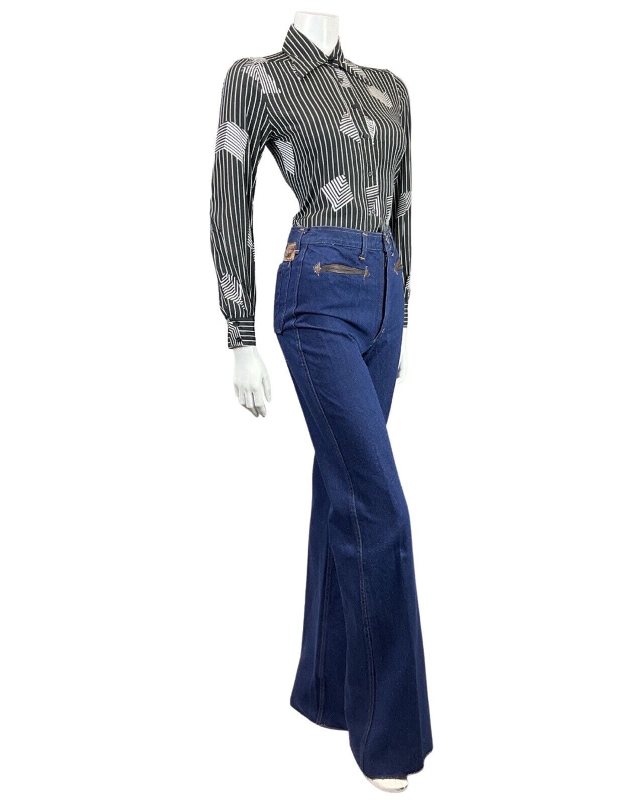 VINTAGE 60s 70s BLACK WHITE PINSTRIPE OP-ART GEOMETRIC MOD DAGGER SHIRT 8