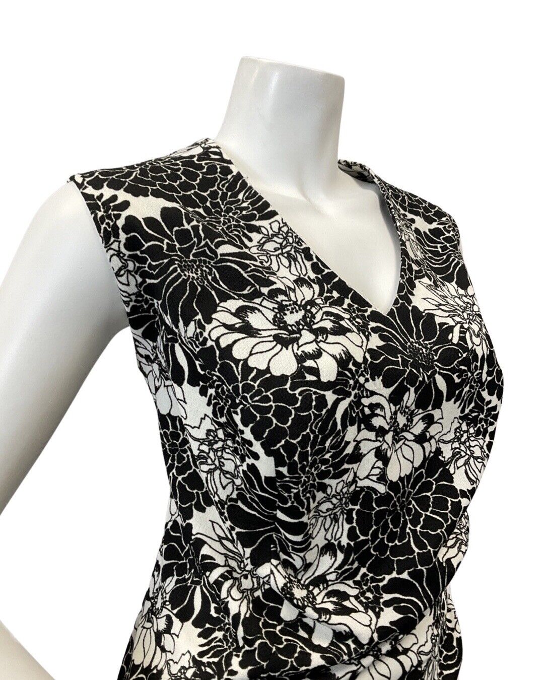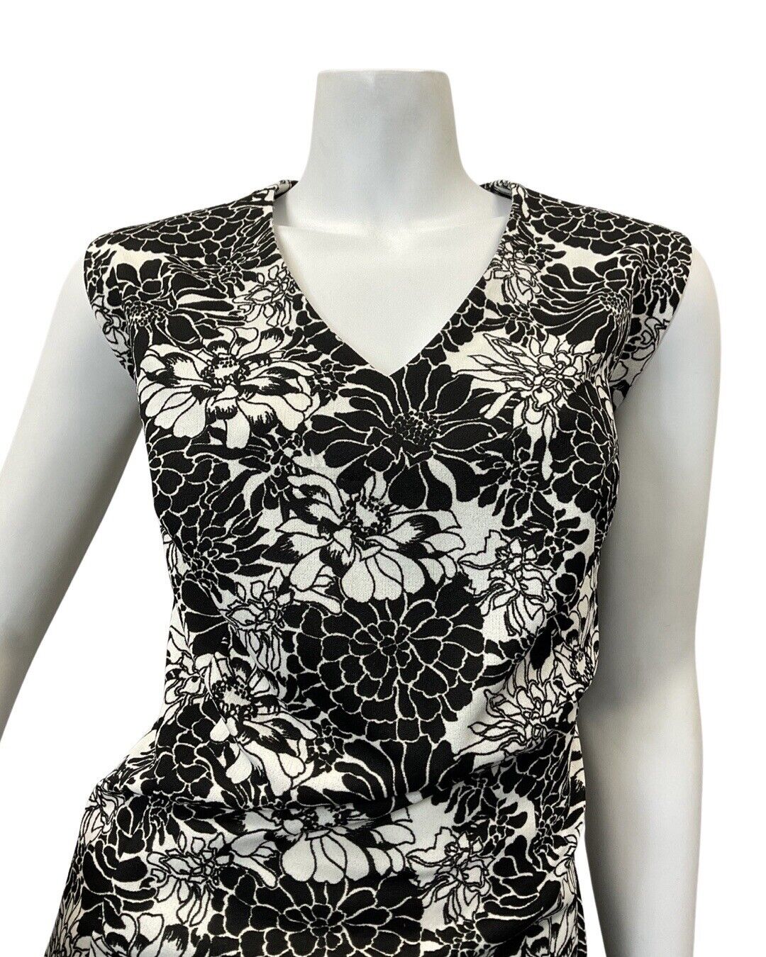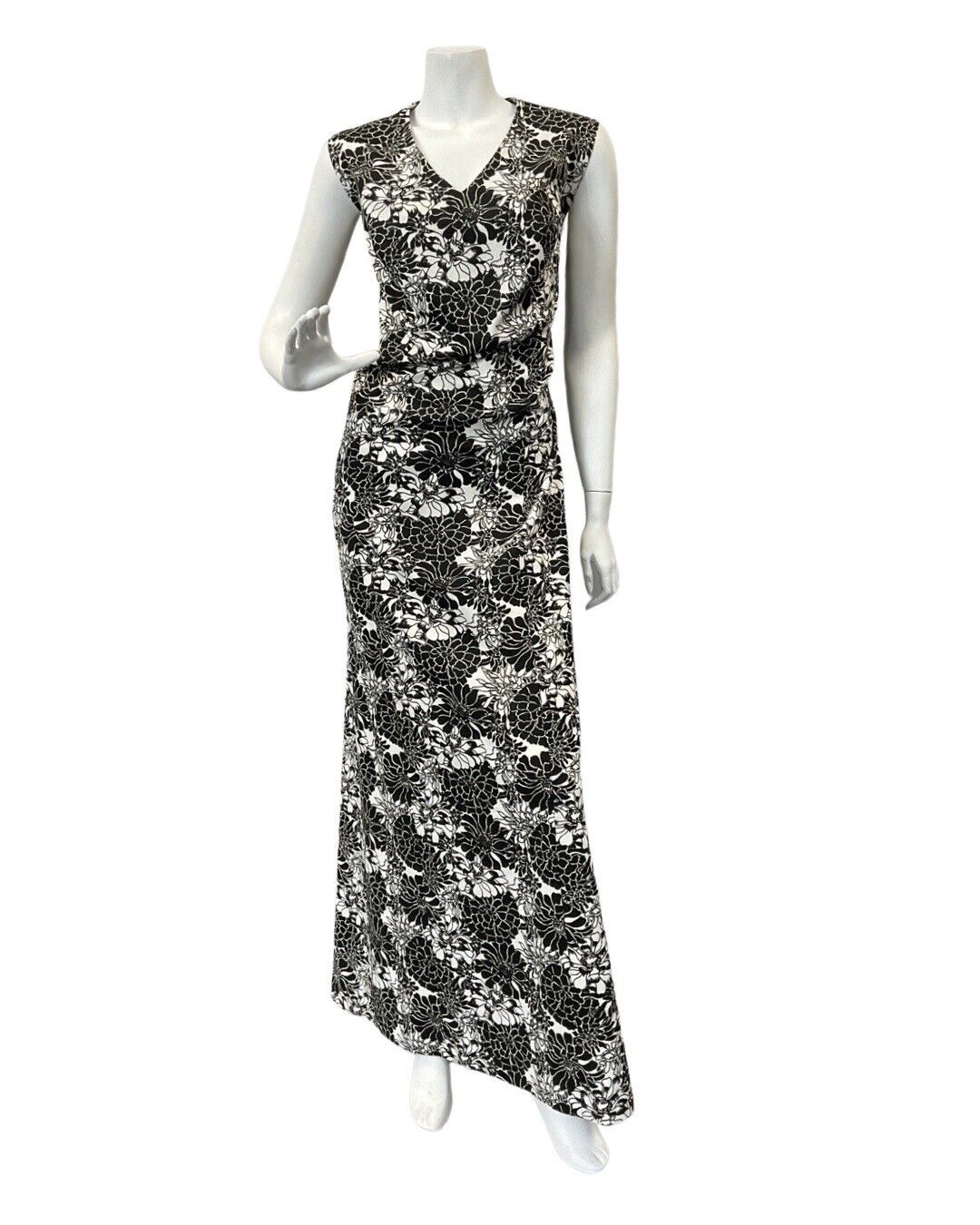 VINTAGE 60s 70s BLACK WHITE PSYCHEDELIC FLORAL SLEEVELESS MAXI DRESS 16 18