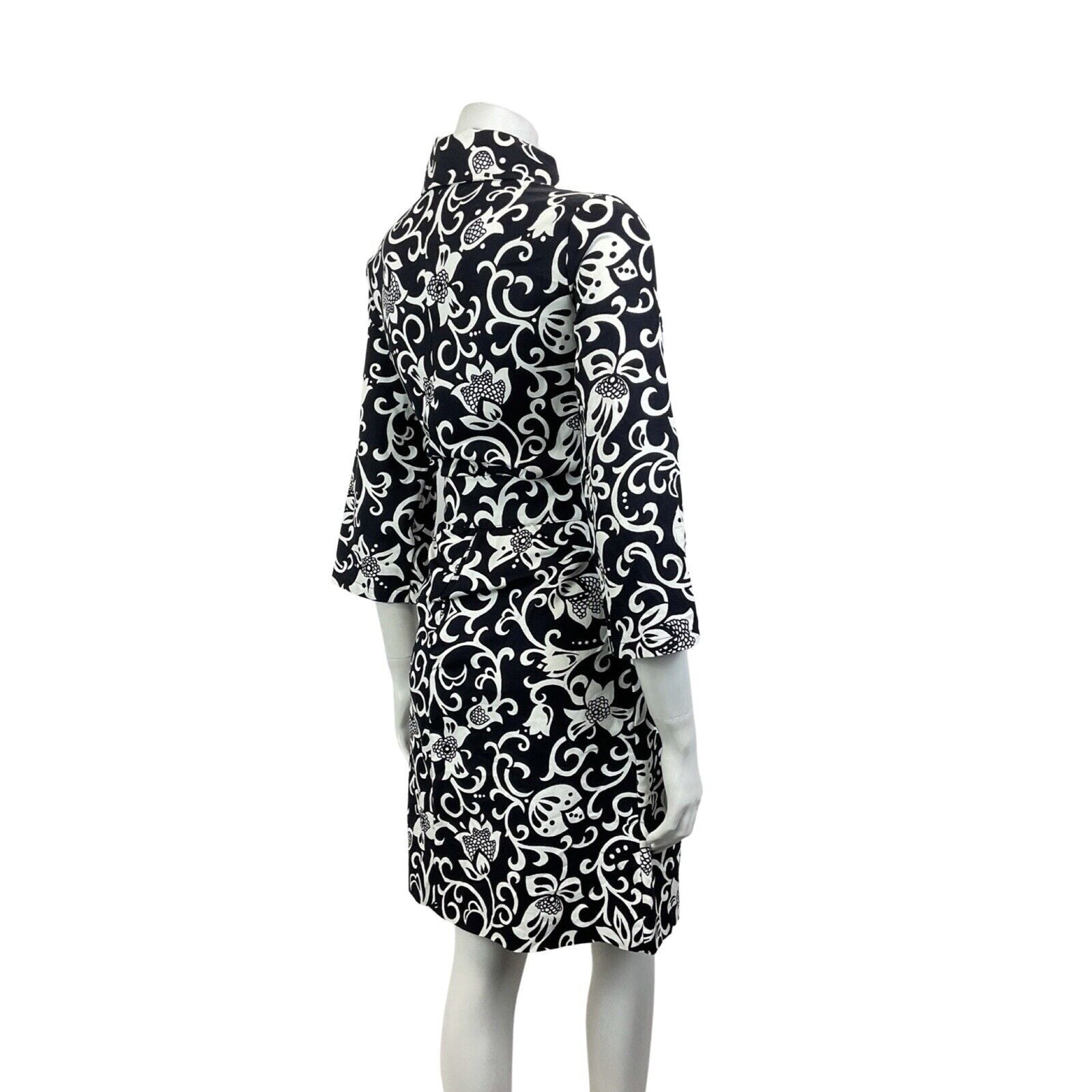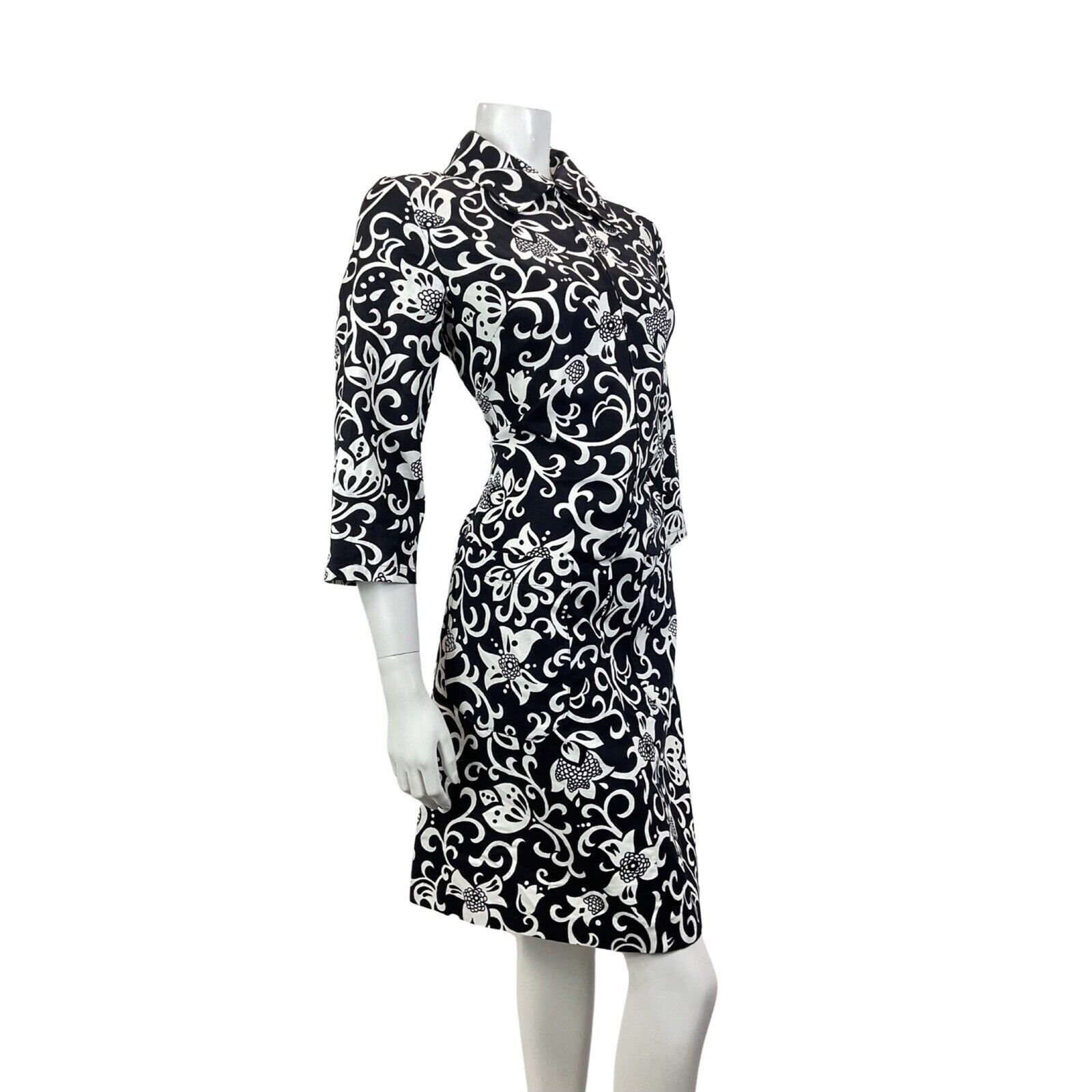 VINTAGE 60s 70s BLACK WHITE PSYCHEDELIC FLORAL SWIRL VINE MOD SHIRT DRESS 12 14