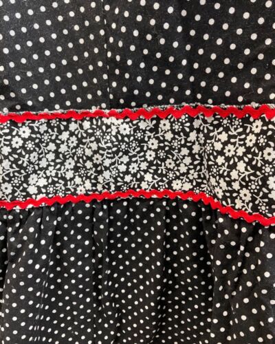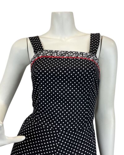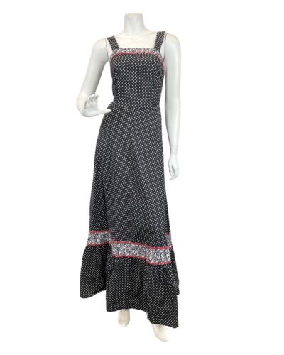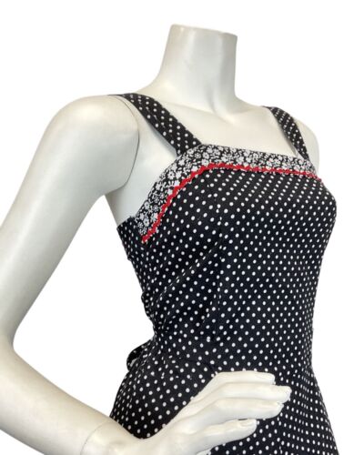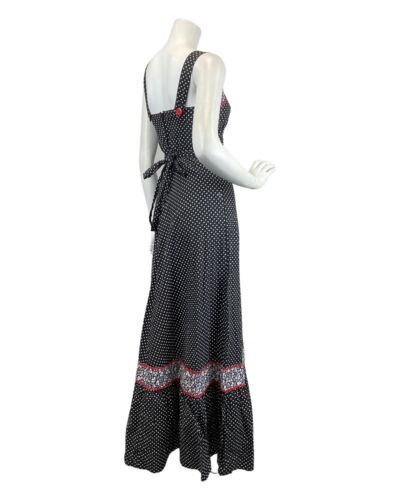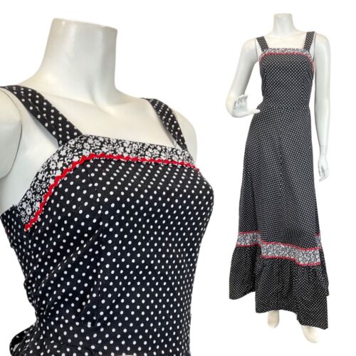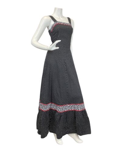 VINTAGE 60s 70s BLACK WHITE RED POLKA-DOT RIC-RAC MOD SLEEVELESS MAXI DRESS 4
