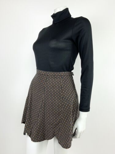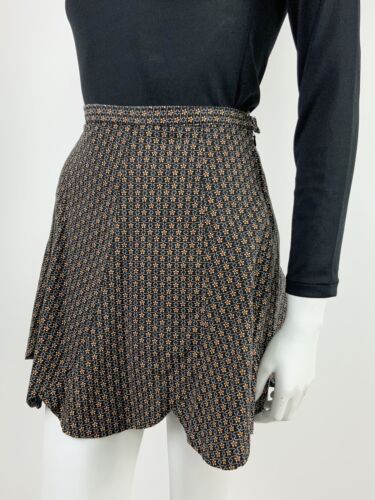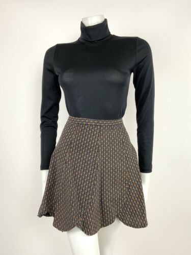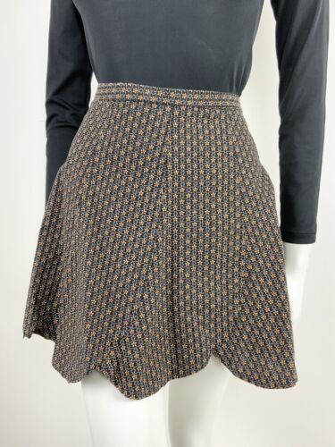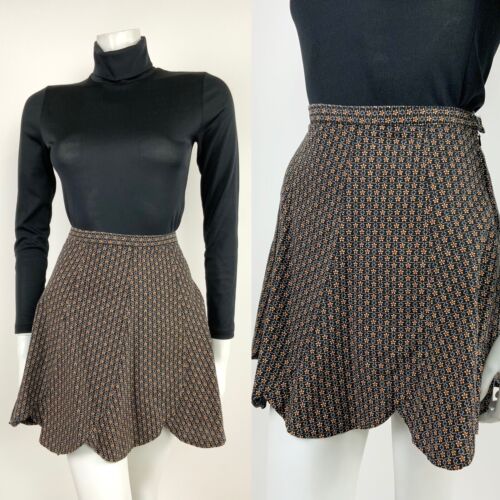 VINTAGE 60s 70s BLACK WHITE RED YELLOW FLORAL DITSY DOTTY SCALLOPED SKIRT 6