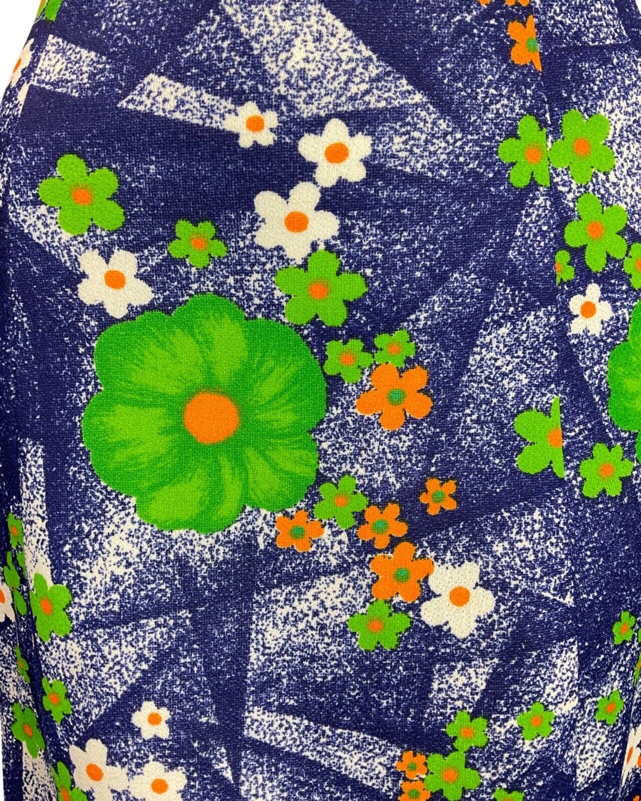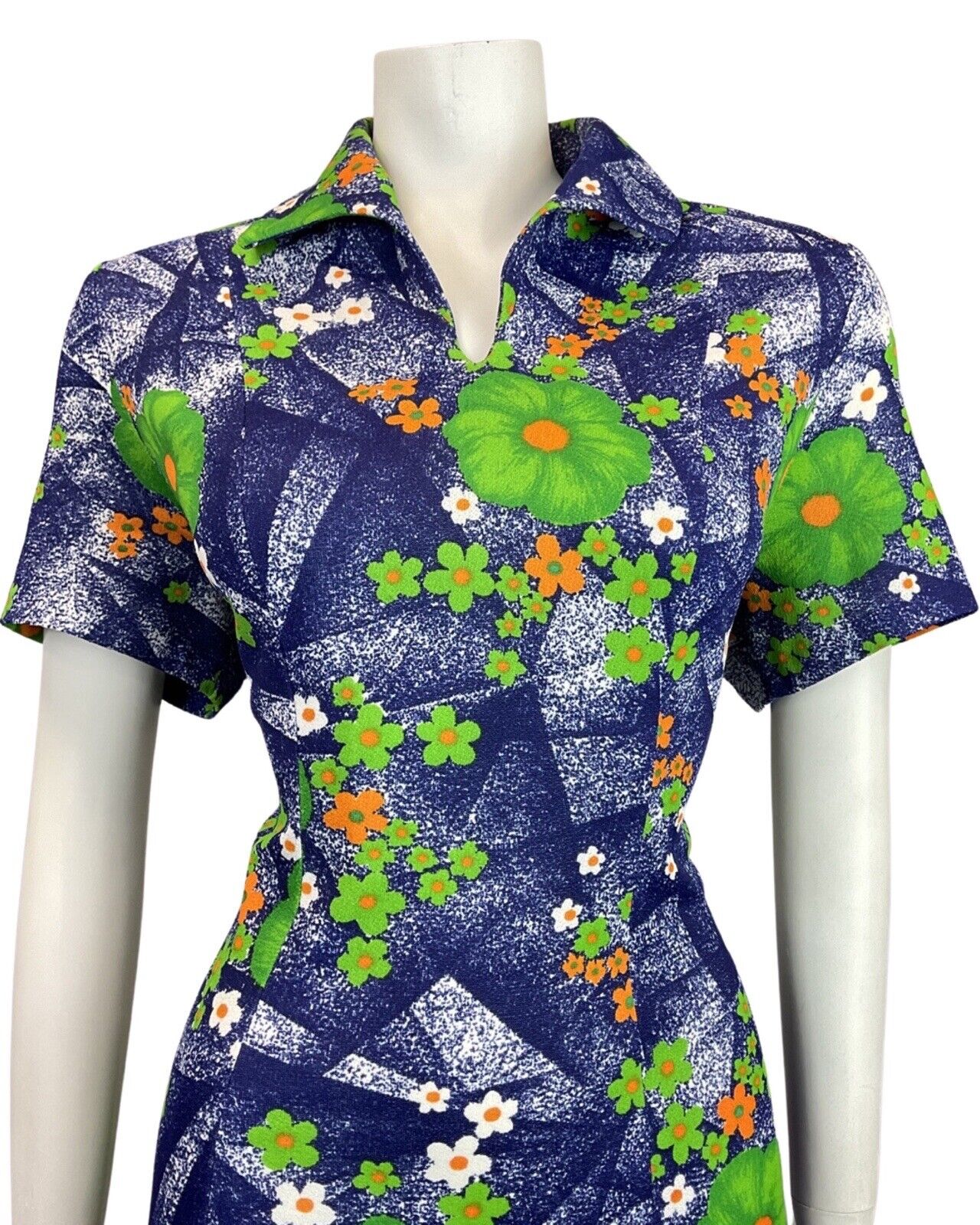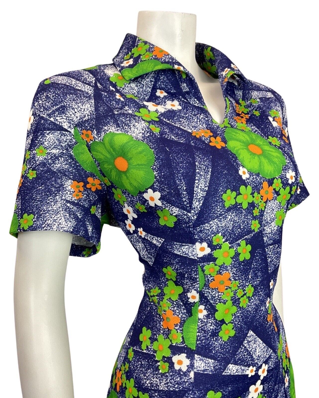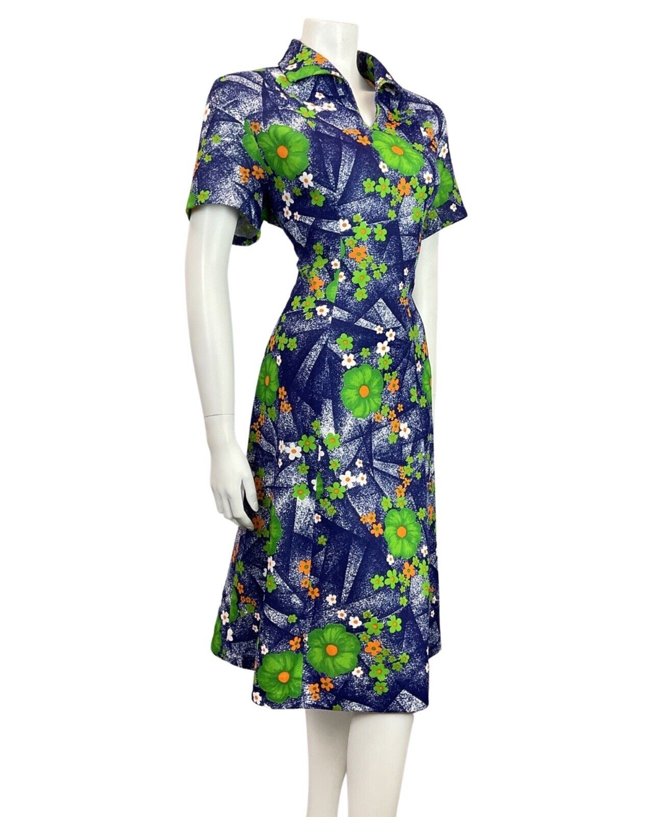 VINTAGE 60s 70s BLUE GREEN ORANGE FLORAL DAISY WING COLLAR MOD SHIRT DRESS 16