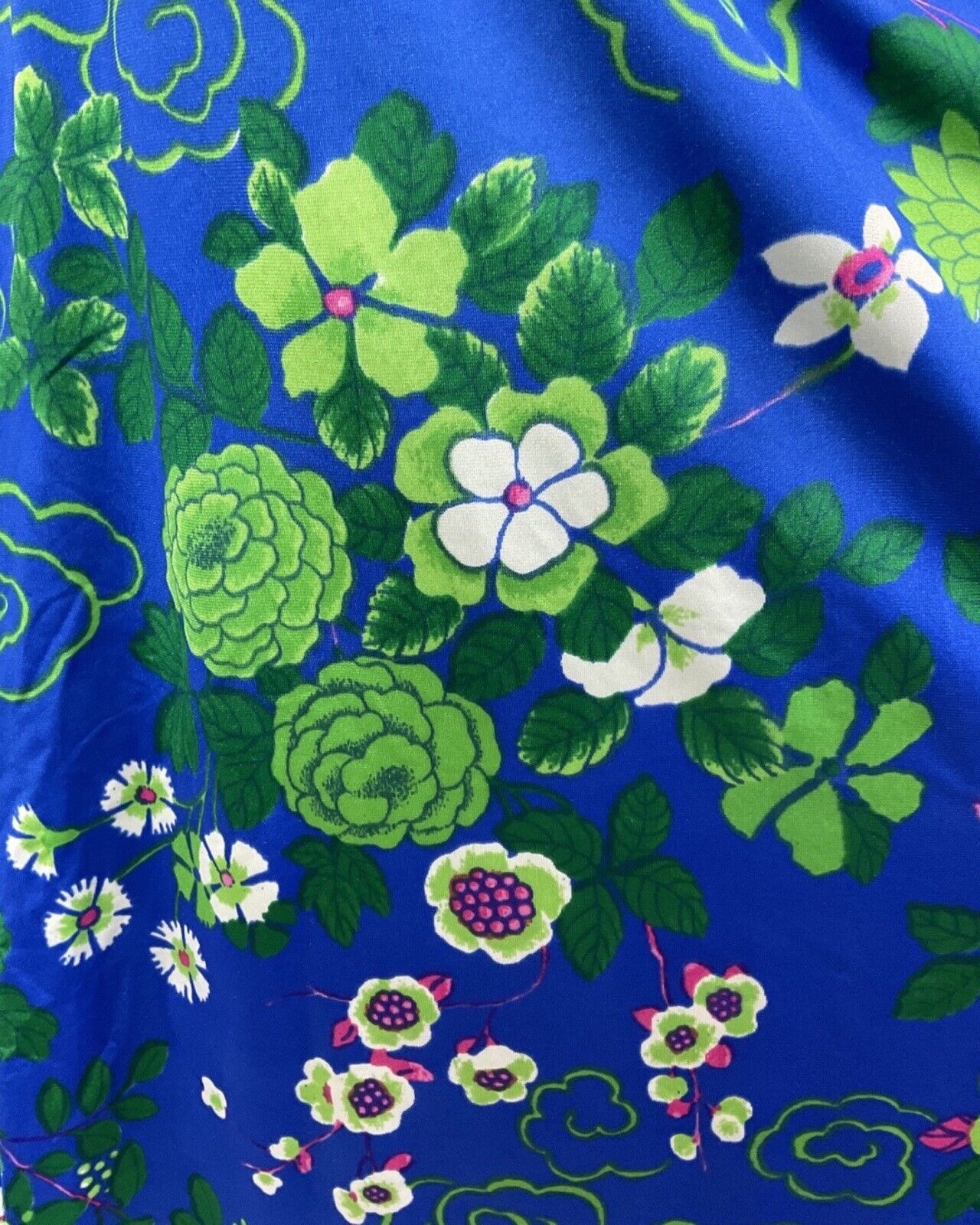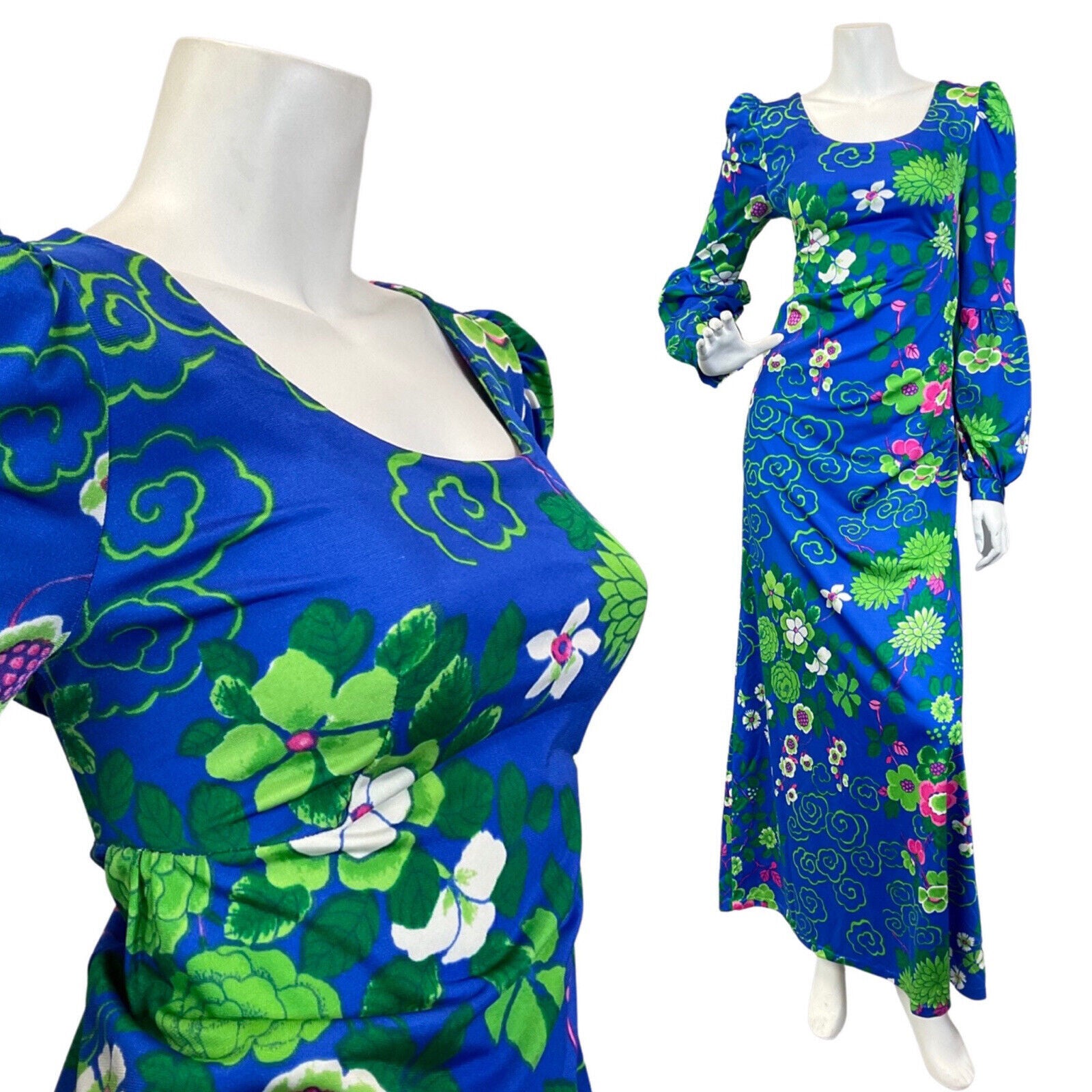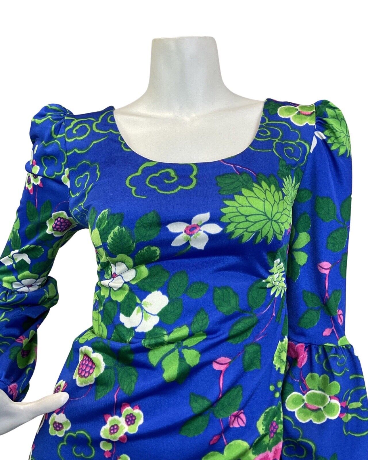VINTAGE 60s 70s BLUE GREEN PINK PSYCHEDELIC FLORAL JULIET SLEEVE MAXI DRESS 8 10