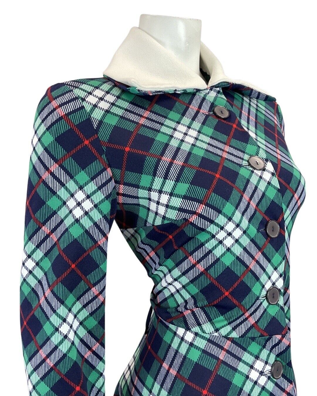 VINTAGE 60s 70s BLUE GREEN WHITE TARTAN CHECKED MOD WING COLLAR SHIRT DRESS 12