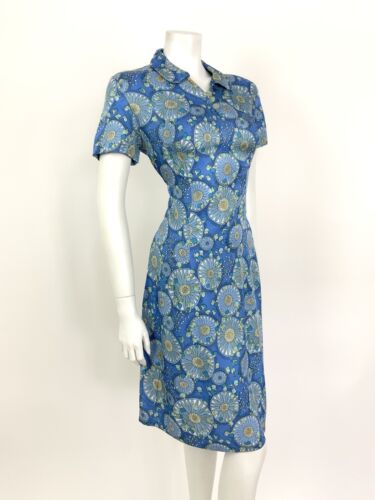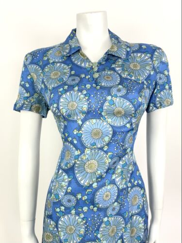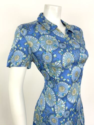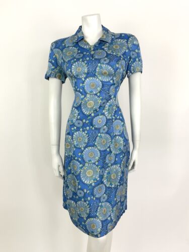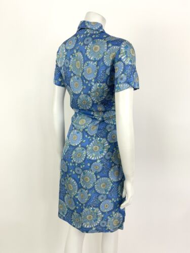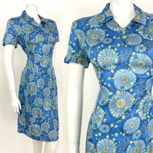 VINTAGE 60s 70s BLUE GREEN YELLOW FLORAL BERRY MANDALA MOD SHIRT DRESS 14 16