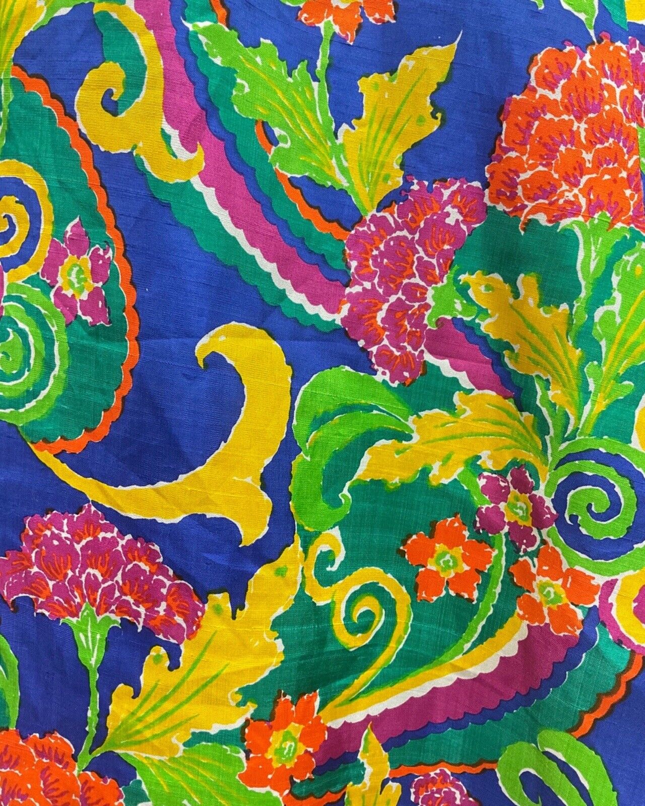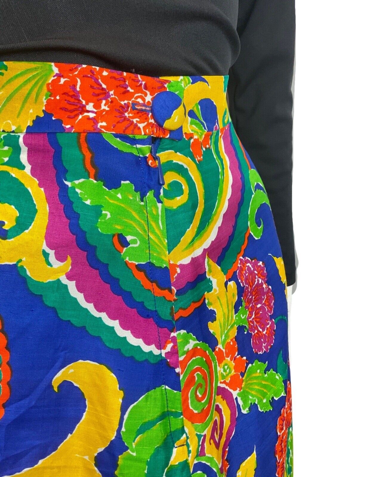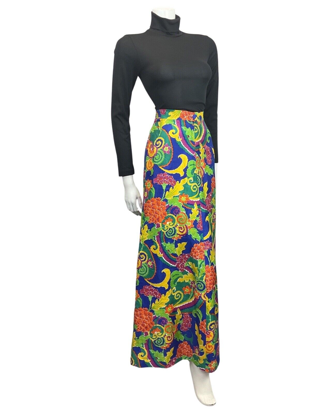 VINTAGE 60s 70s BLUE GREEN YELLOW PSYCHEDELIC FLORAL SWIRL MOD MAXI SKIRT 10