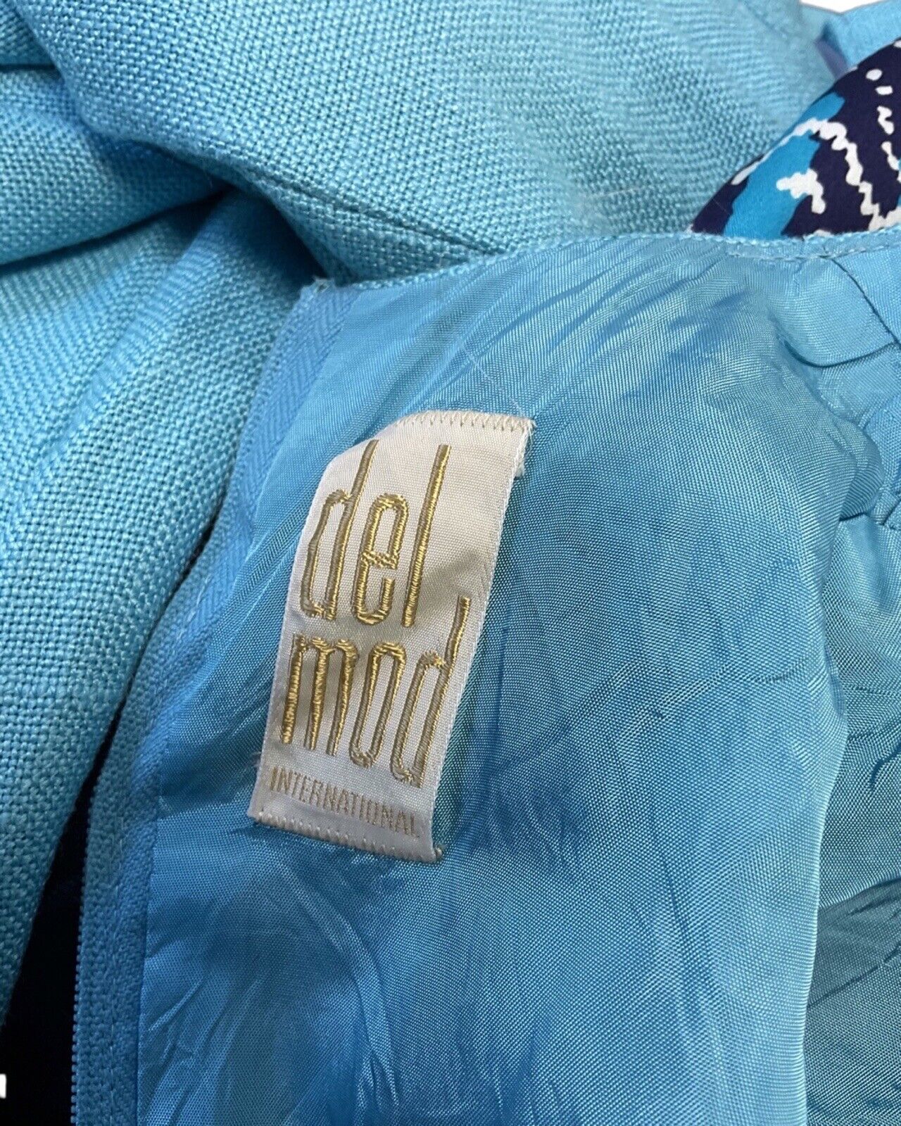 This is a gorgeous vintage sleeveless mod dress made from a polyester and cotton blend fabric with no stretch and a fitted blue lining throughout.Featuring a short rounded neckline, curved darting in the body for shape, flared skirt with pleats for a softly flared shape, zip fastening at the back, and a detachable matching belt to cinch in the shape for a flattering silhouette.Detailing the top is a unique pattern of striped and zig zags in blue, navy, and white. This fab dress is designed to be worn a little more fitted to the body which will be reflected in the recommended size.This dress would best fit: 12please check your measurements against the ones provided below,Bust: 37"Waist: 32"Hips: 40"Length: 40"PLEASE NOTE: This garment has been measured flat and doubled for bust (armpit to armpit), waist and hip measurements, we measure the length down the back of the dress, measurements may differ slightly due to dress styles and fabrics. We ignore any existing size labels as vintage brands differed so much. Items shown on our mannequin may be clipped to fit.This garment is true vintage so please be aware there may be some signs of wear as expected from a garment of this age. We do not list stains to area likes linings that are hidden or things that can barely be seen without close inspection. These can include pin holes, small marks, light piling. We hand pick our items to make sure they are in great condition and fully wearable and we reject anything of poor condition. The majority of our items are 40-70 years old. If you think we've missed something significant please get in touch, we are only human and we lose transaction fees on returns so we don't skip things on purpose.CHECK OUT OUR OTHER ITEMS, WE LIST EVERY WEEK!|