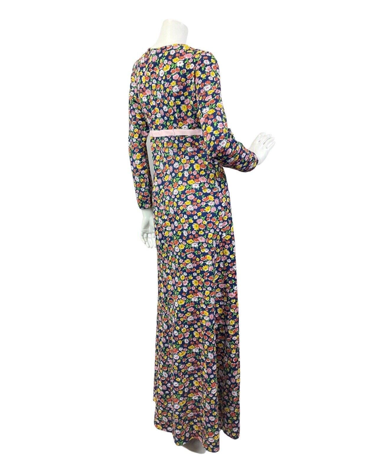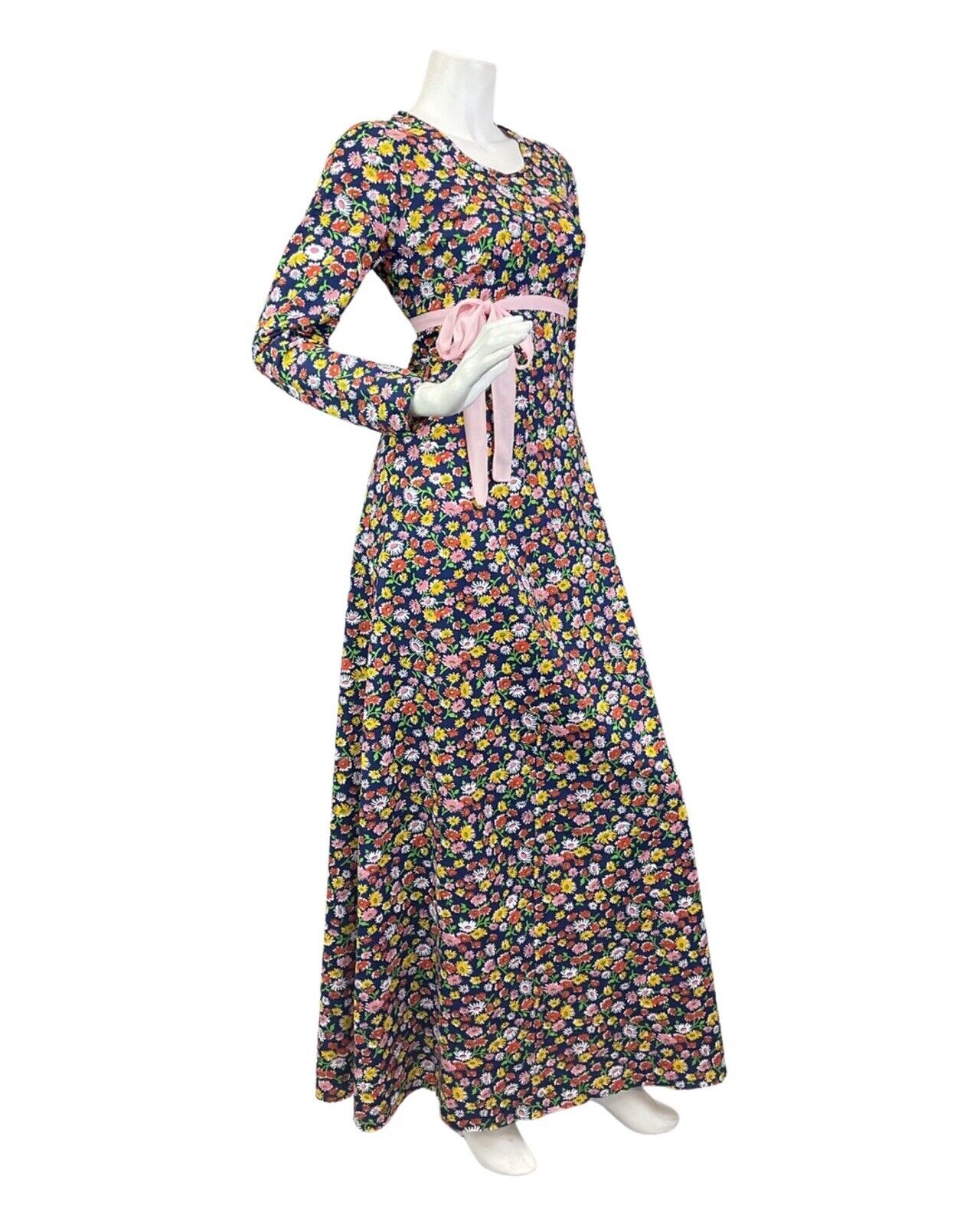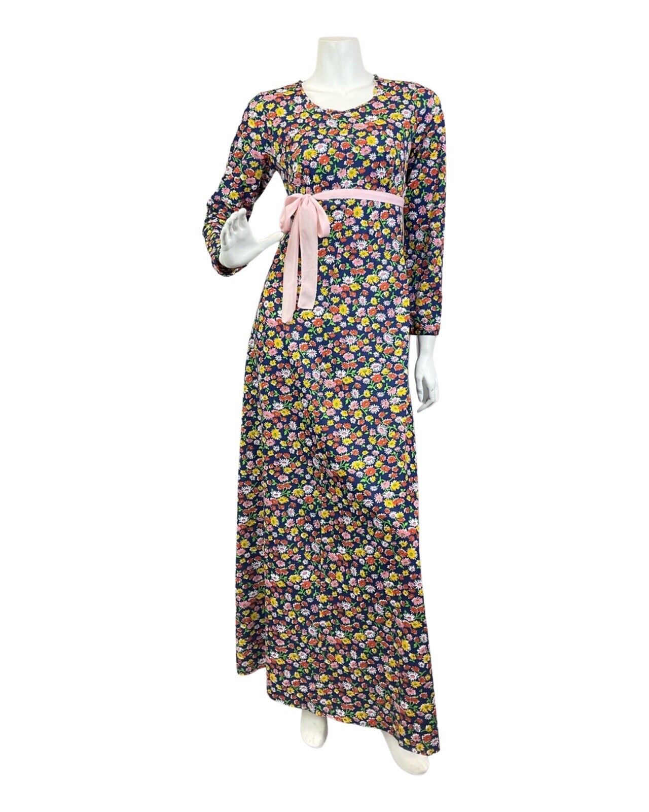 VINTAGE 60s 70s BLUE PINK YELLOW DAISY FLOWER EMPIRE MOD MAXI DRESS 8 10