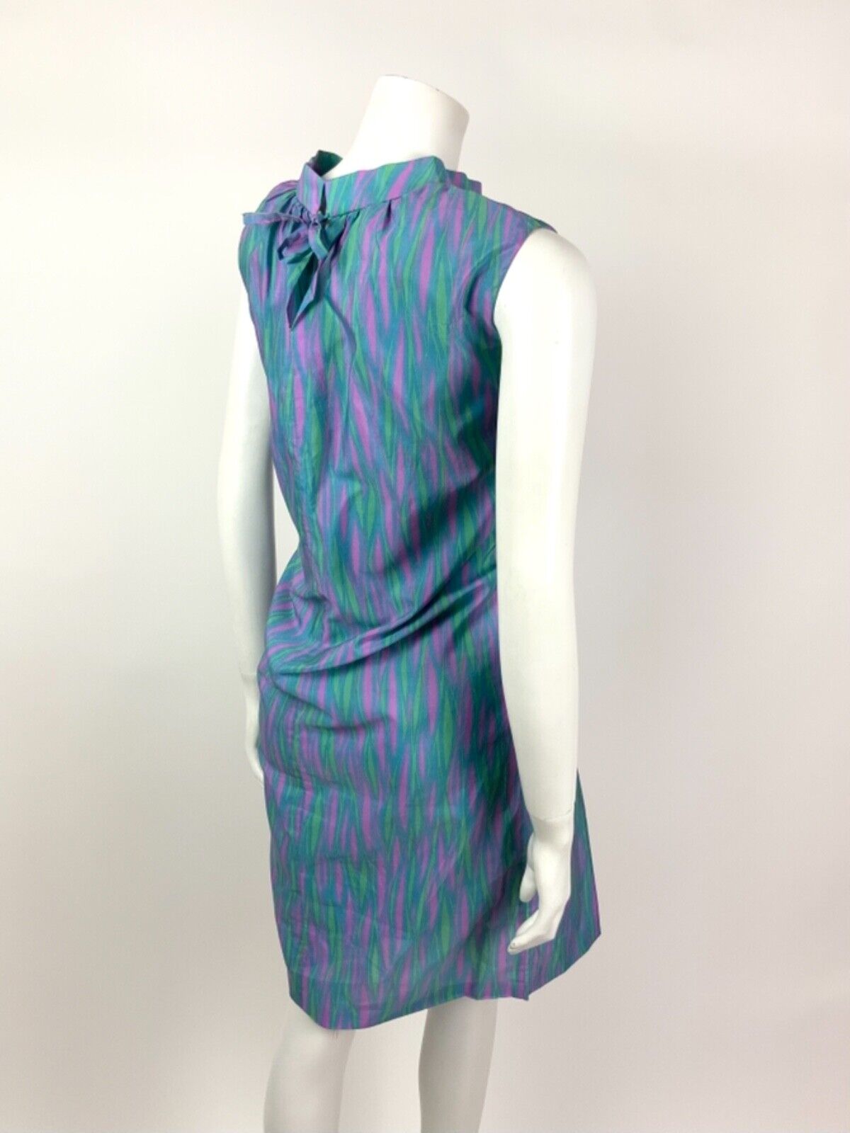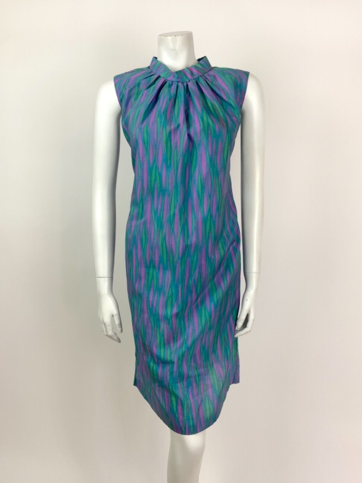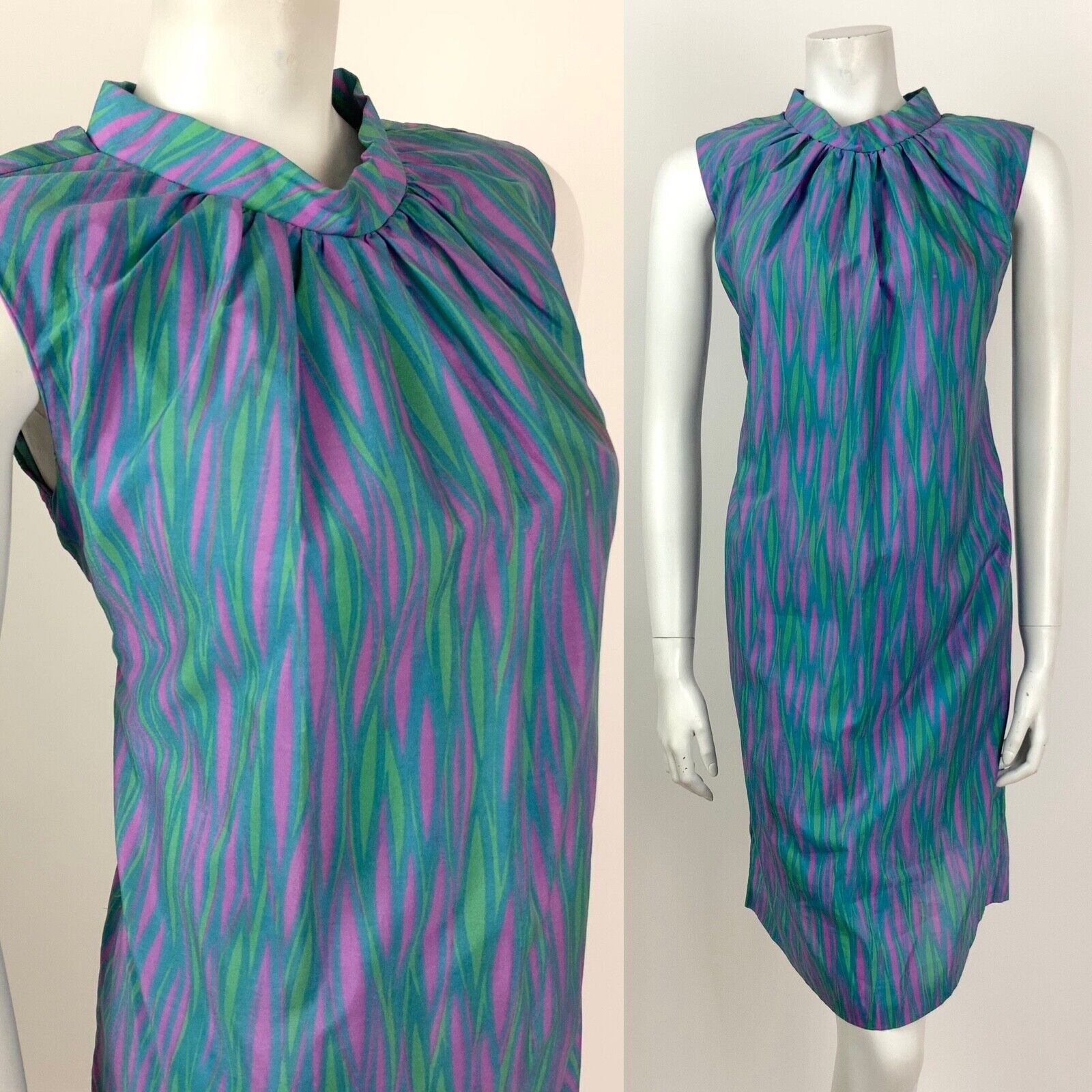 VINTAGE 60s 70s BLUE PURPLE GREEN PSYCHEDELIC WAVY MOD A-LINE DRESS 12 14