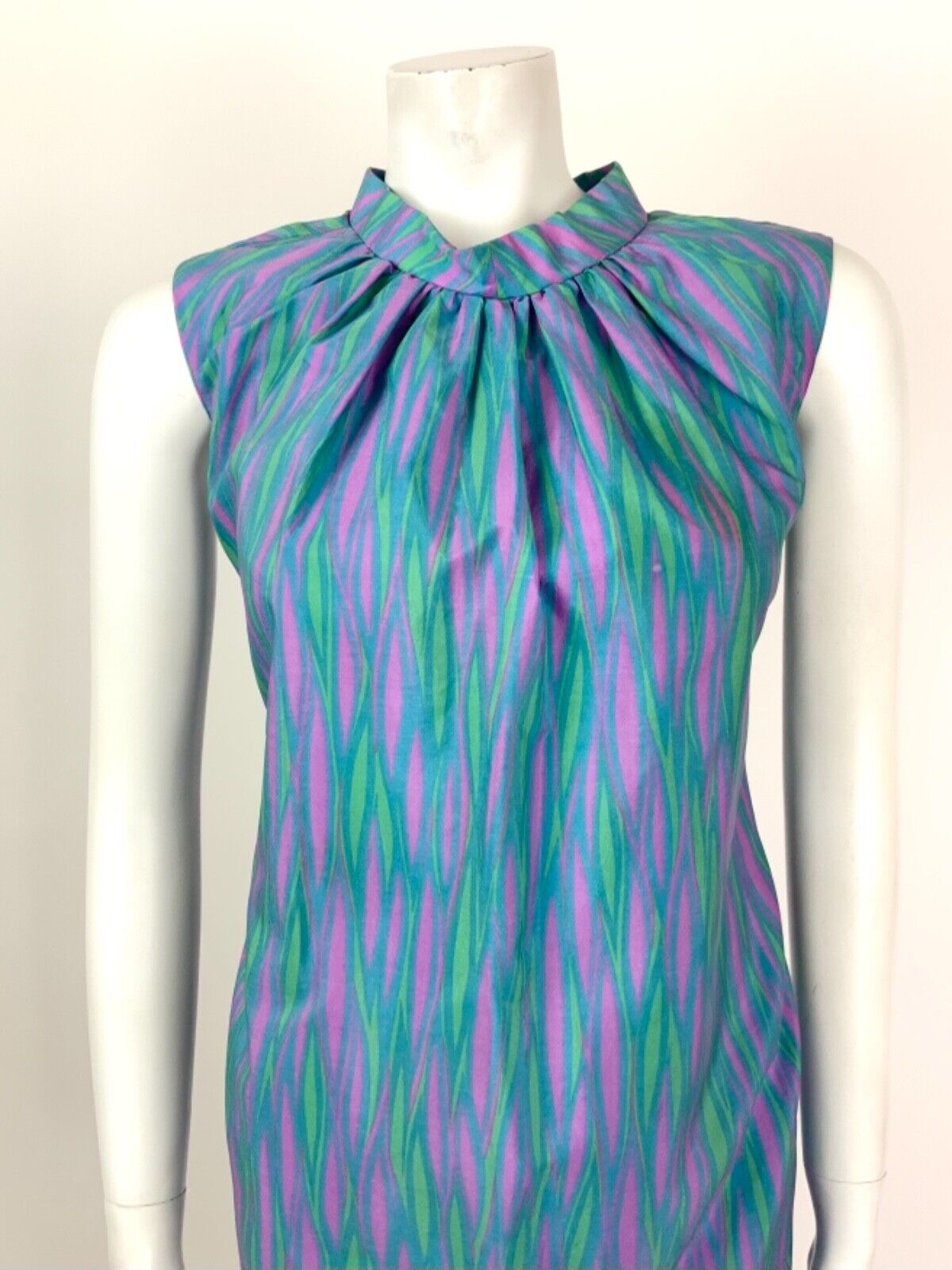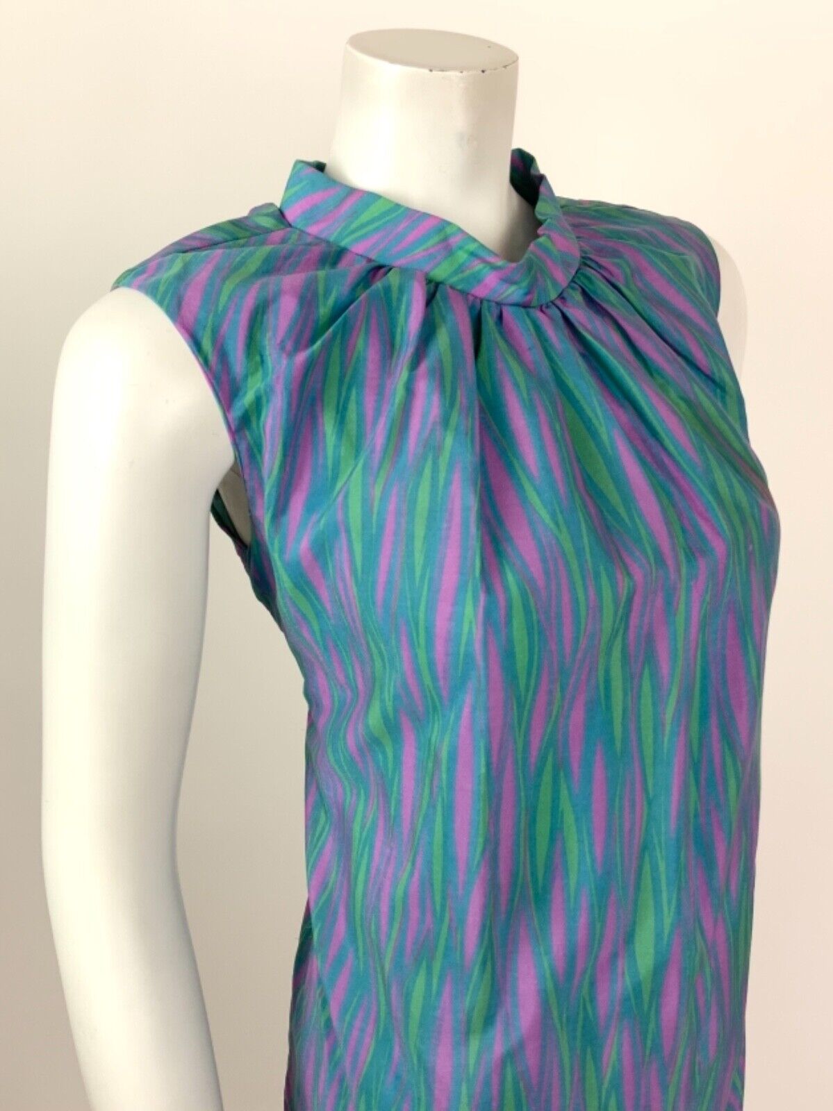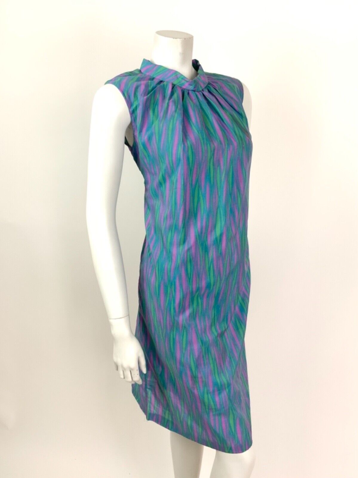 VINTAGE 60s 70s BLUE PURPLE GREEN PSYCHEDELIC WAVY MOD A-LINE DRESS 12 14