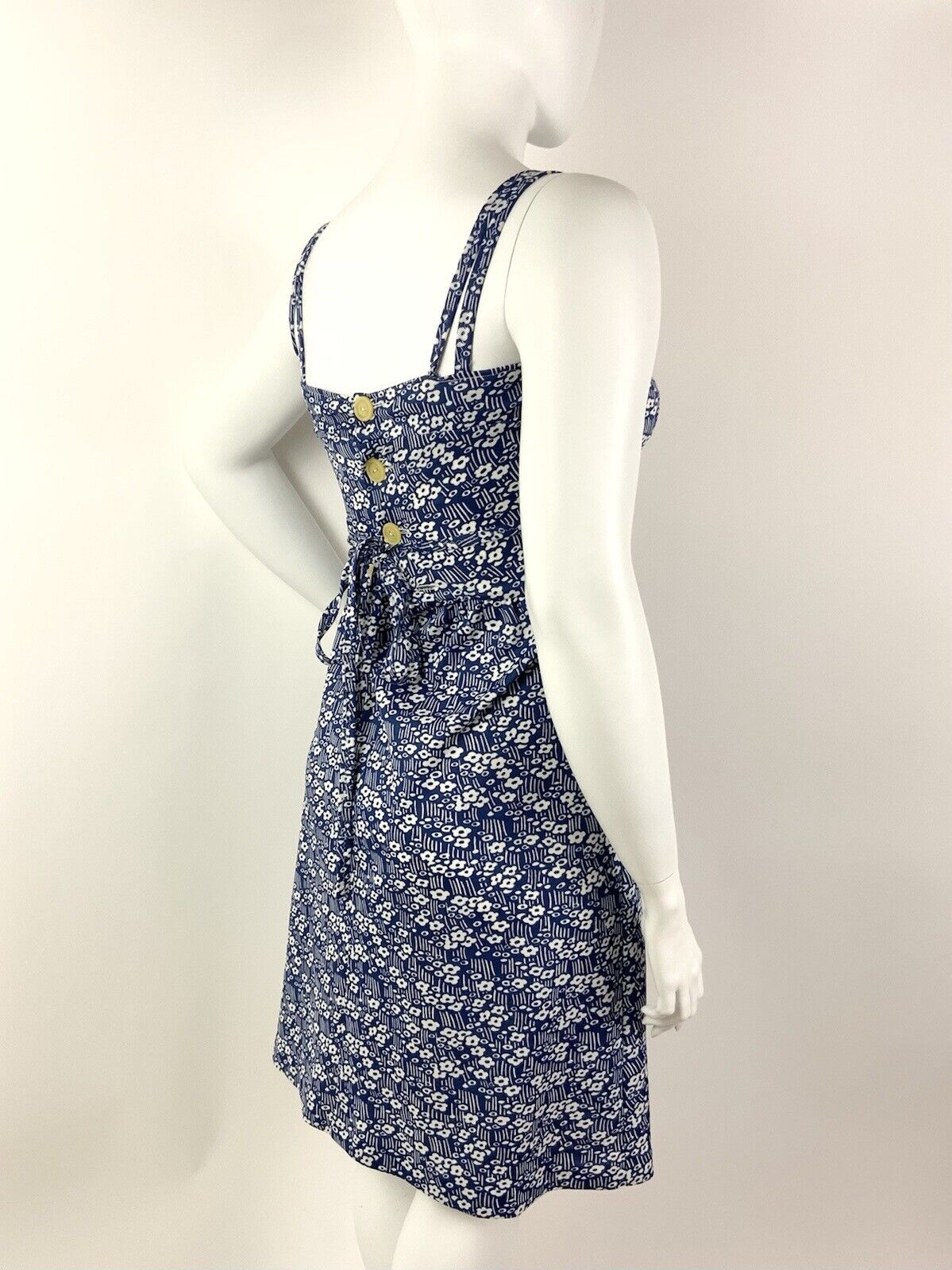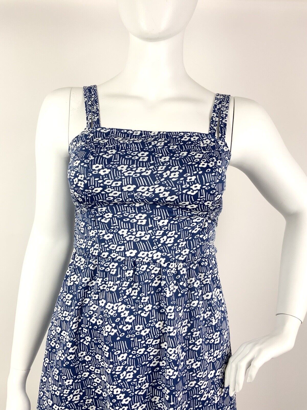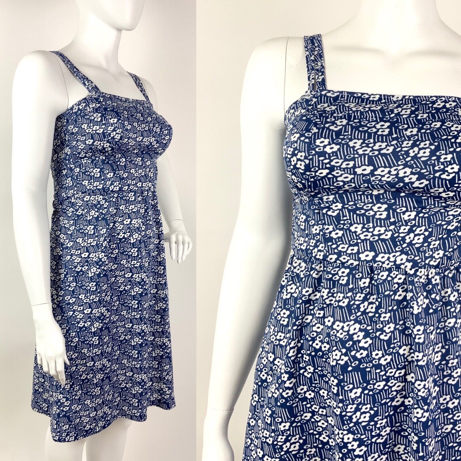 VINTAGE 60s 70s BLUE WHITE FLORAL DITSY DAISY STRIPED STRAPPY MOD SUN DRESS 14