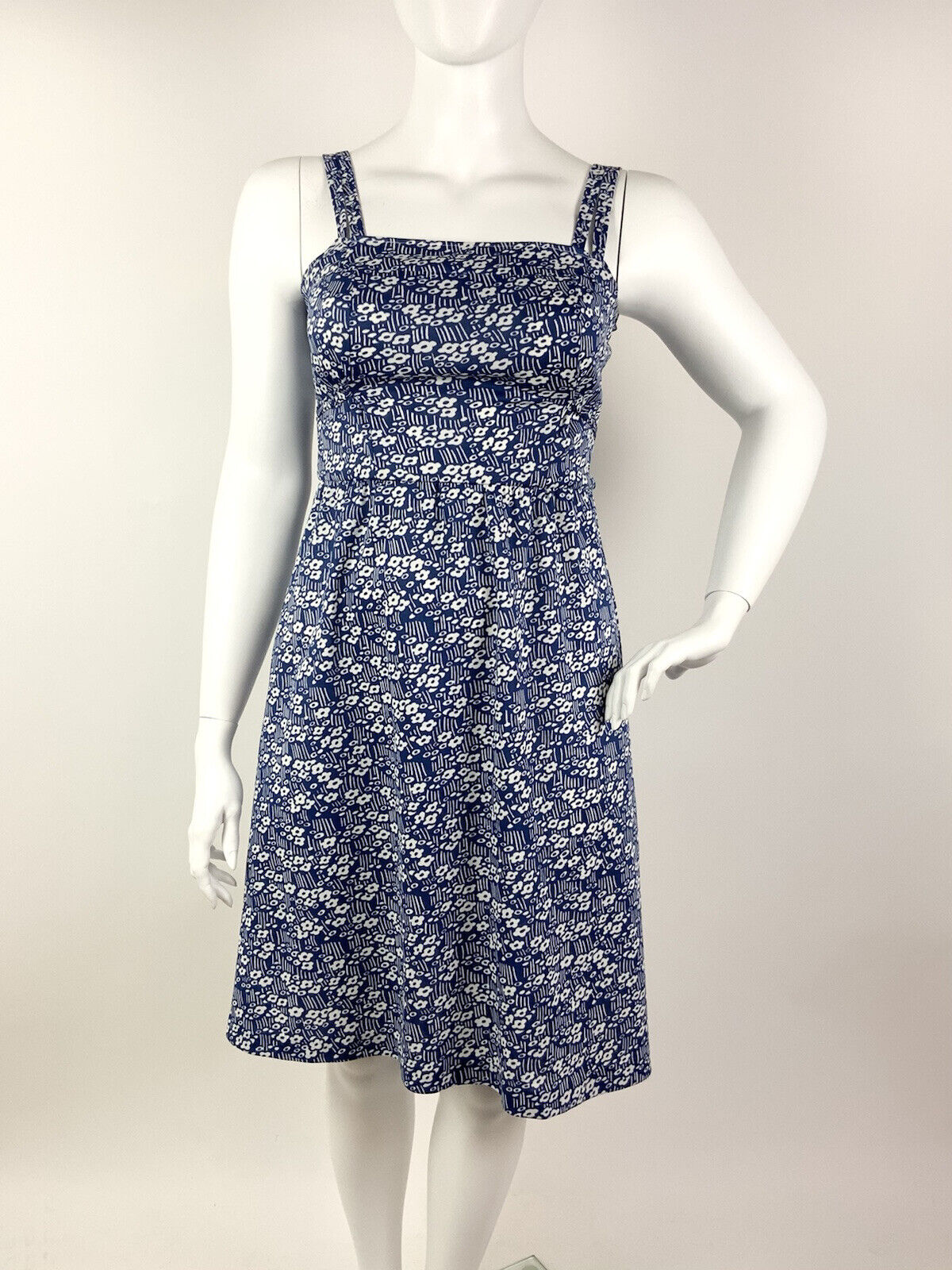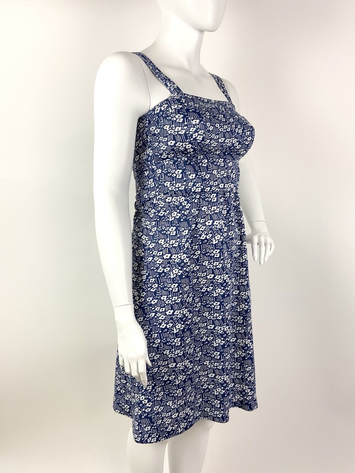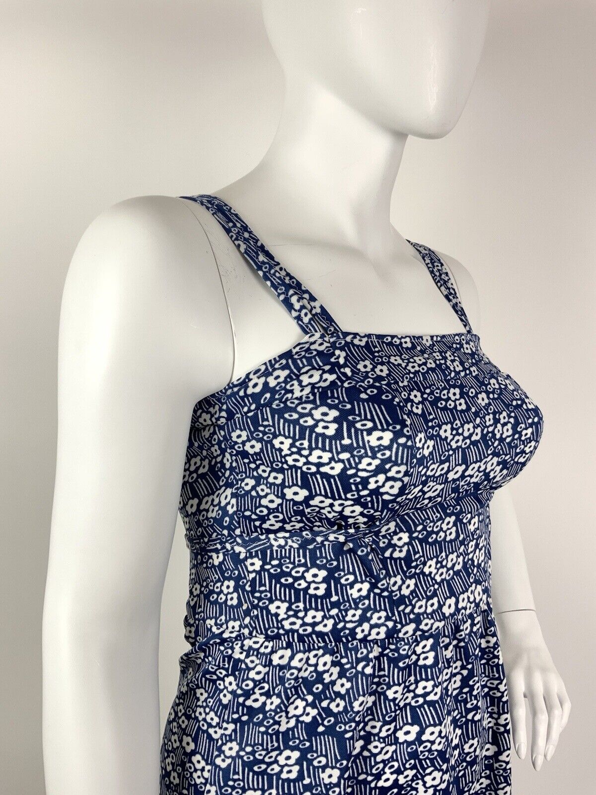 VINTAGE 60s 70s BLUE WHITE FLORAL DITSY DAISY STRIPED STRAPPY MOD SUN DRESS 14