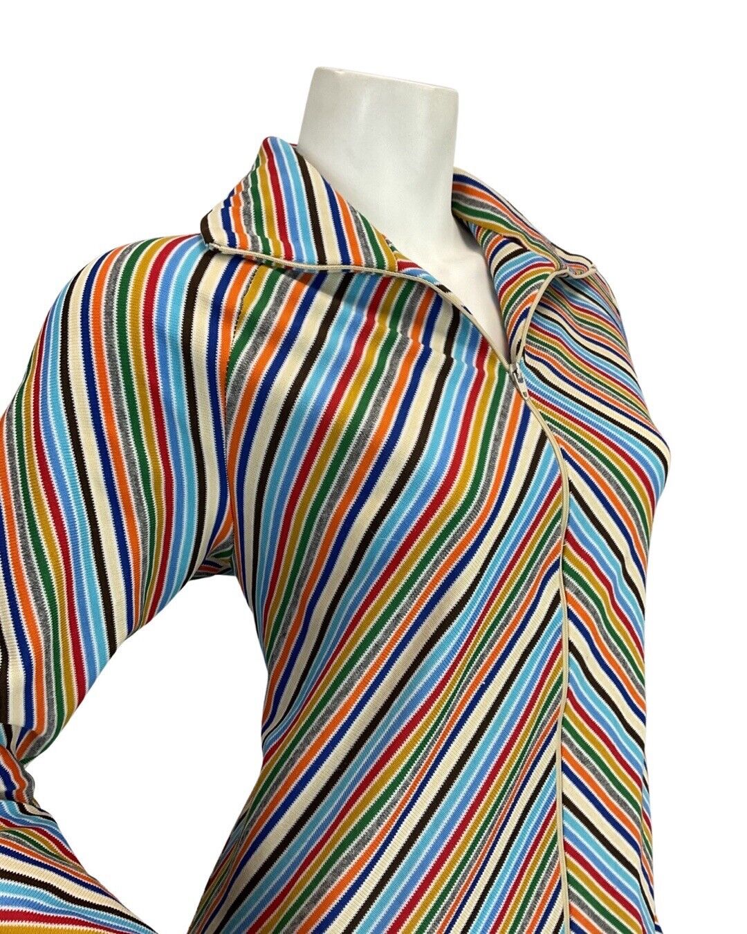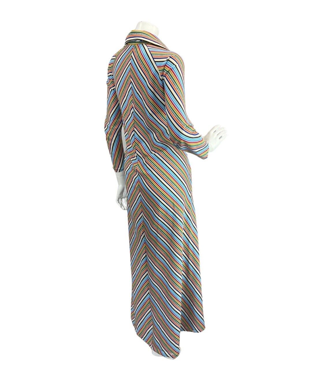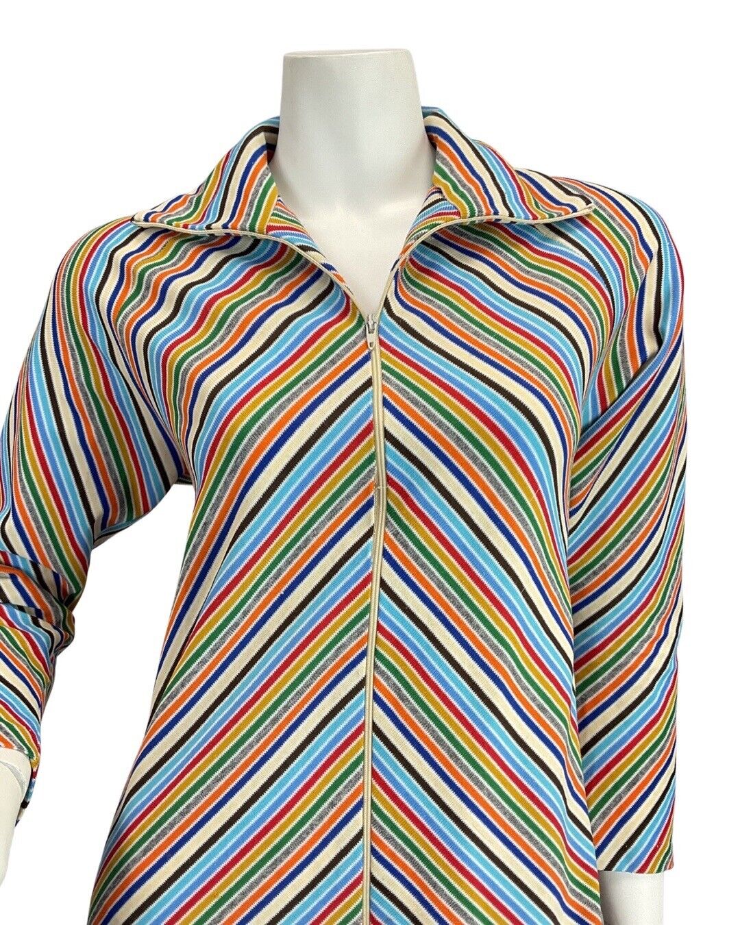 VINTAGE 70s BLUE WHITE RED GREEN STRIPED MOD ZIP-UP SHIRT MAXI DRESS 12 14