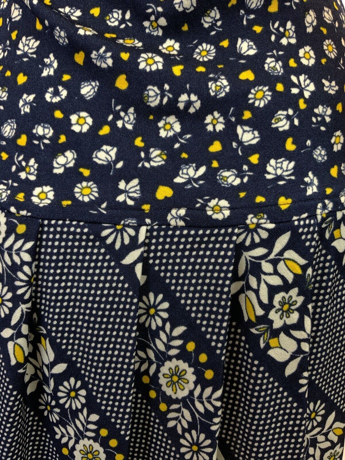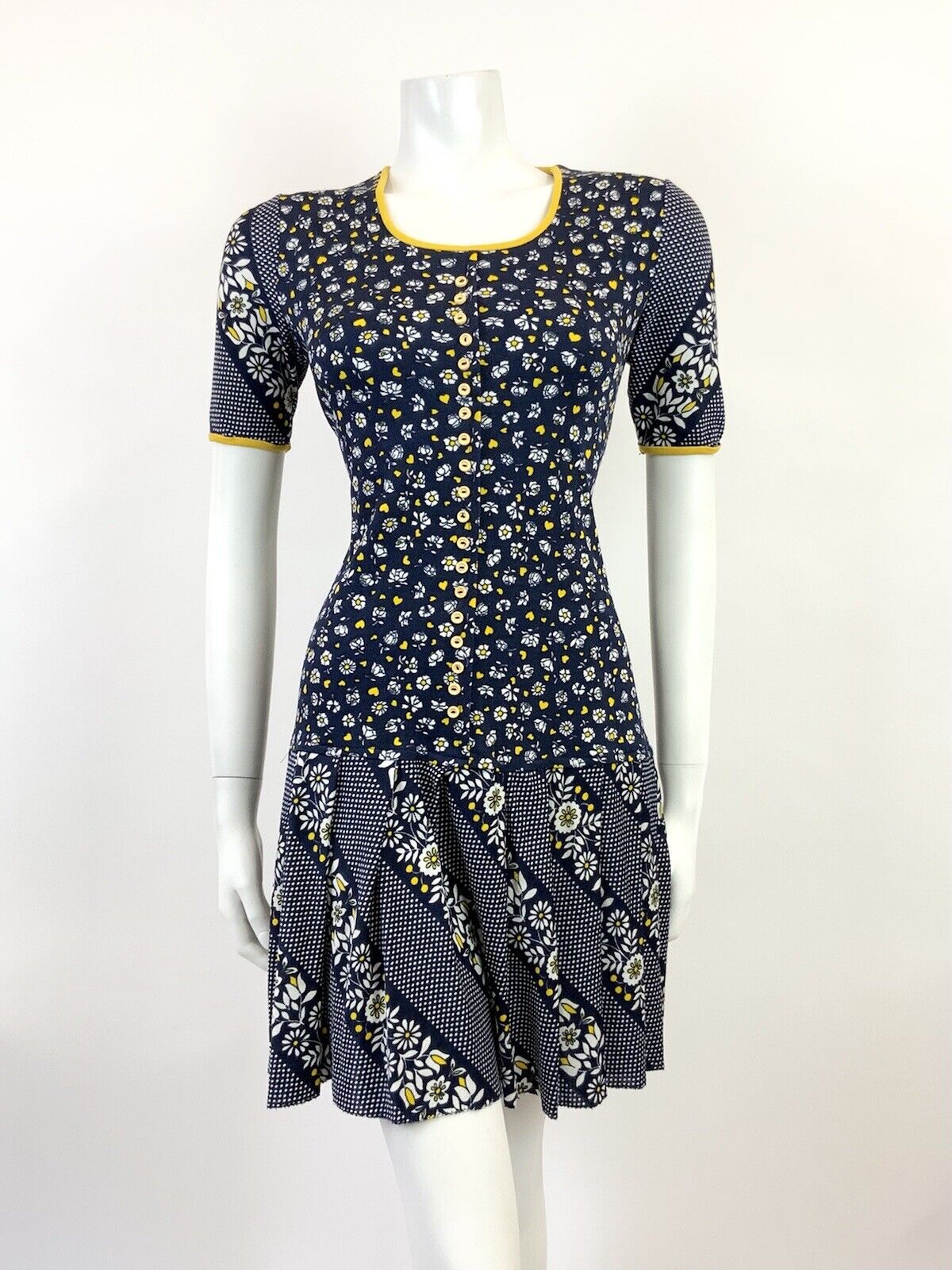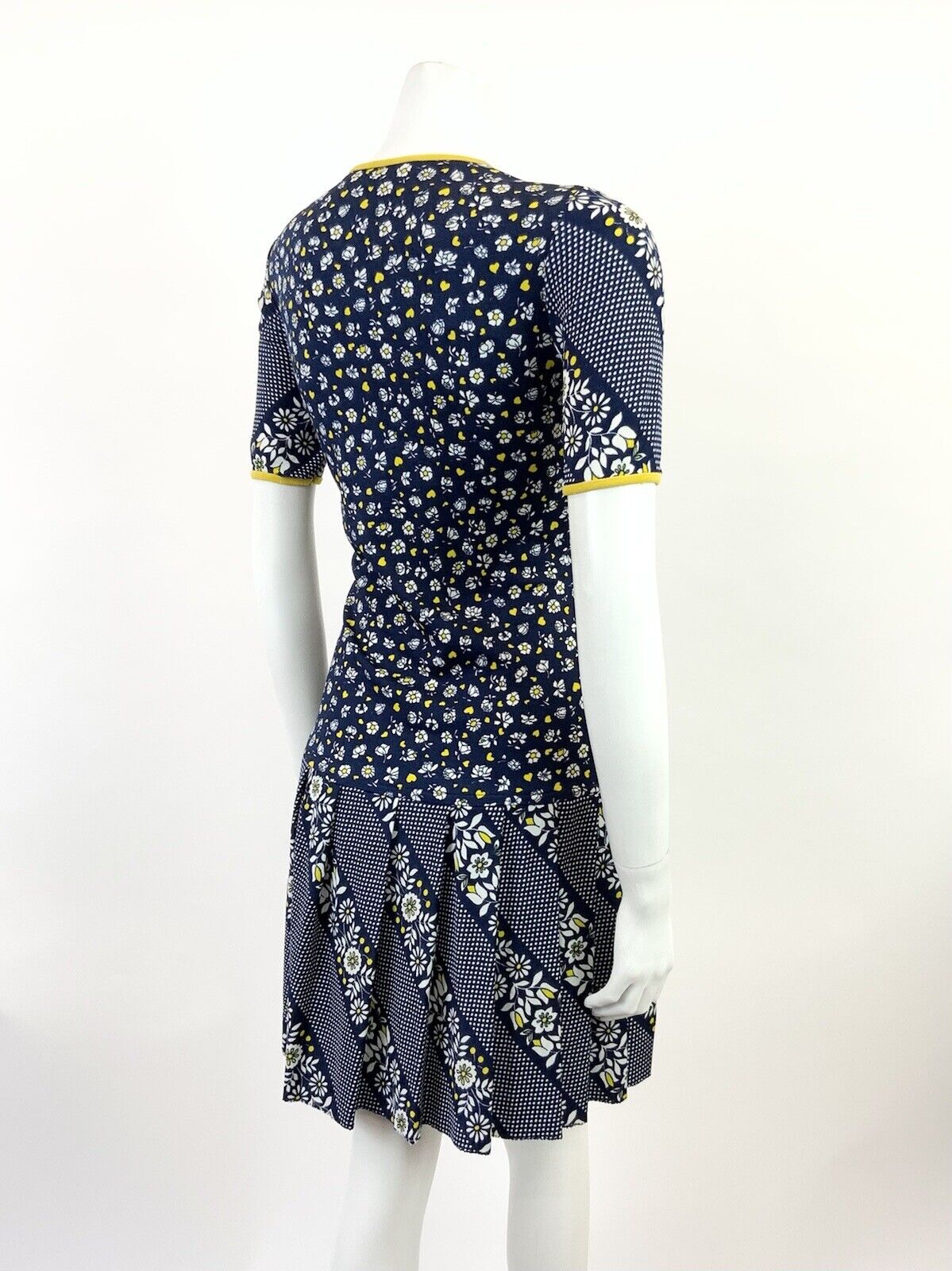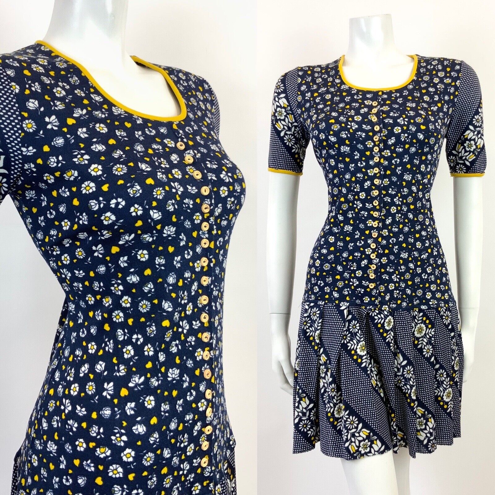 VINTAGE 60s 70s BLUE WHITE YELLOW FLORAL POLKA DOT LOVE HEART MOD DRESS 12