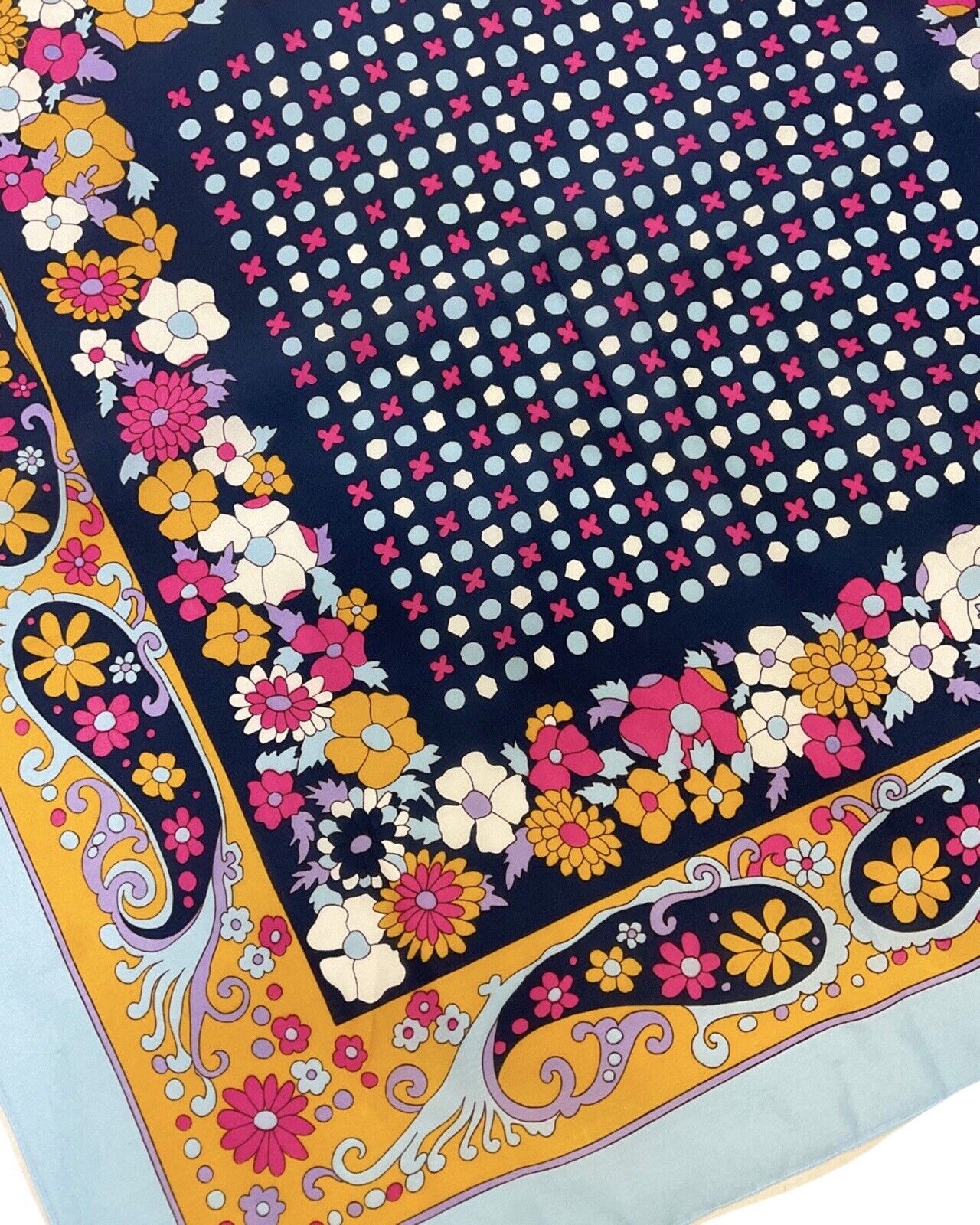 VINTAGE 60s 70s BLUE YELLOW PINK PSYCHEDELIC FLORAL PAISLEY MOD SQUARE SCARF