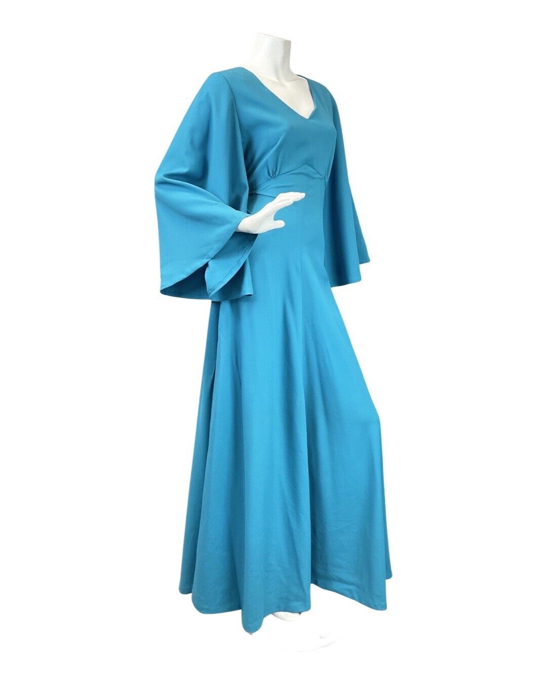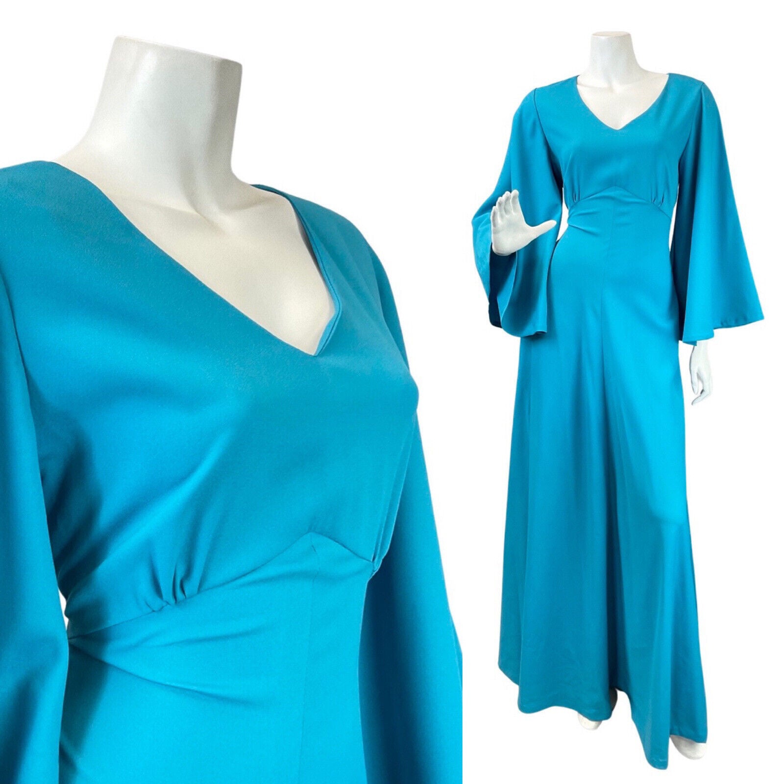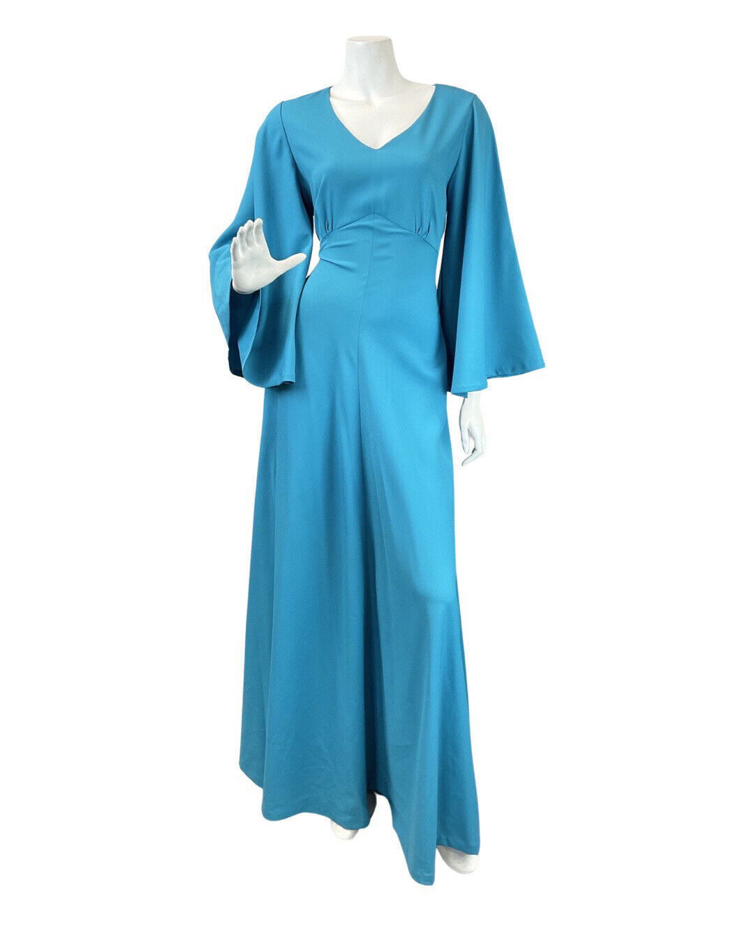 VINTAGE 60s 70s BRIGHT BLUE FLARED SLEEVE ELEGANT GOWN MAXI DRESS 8 10